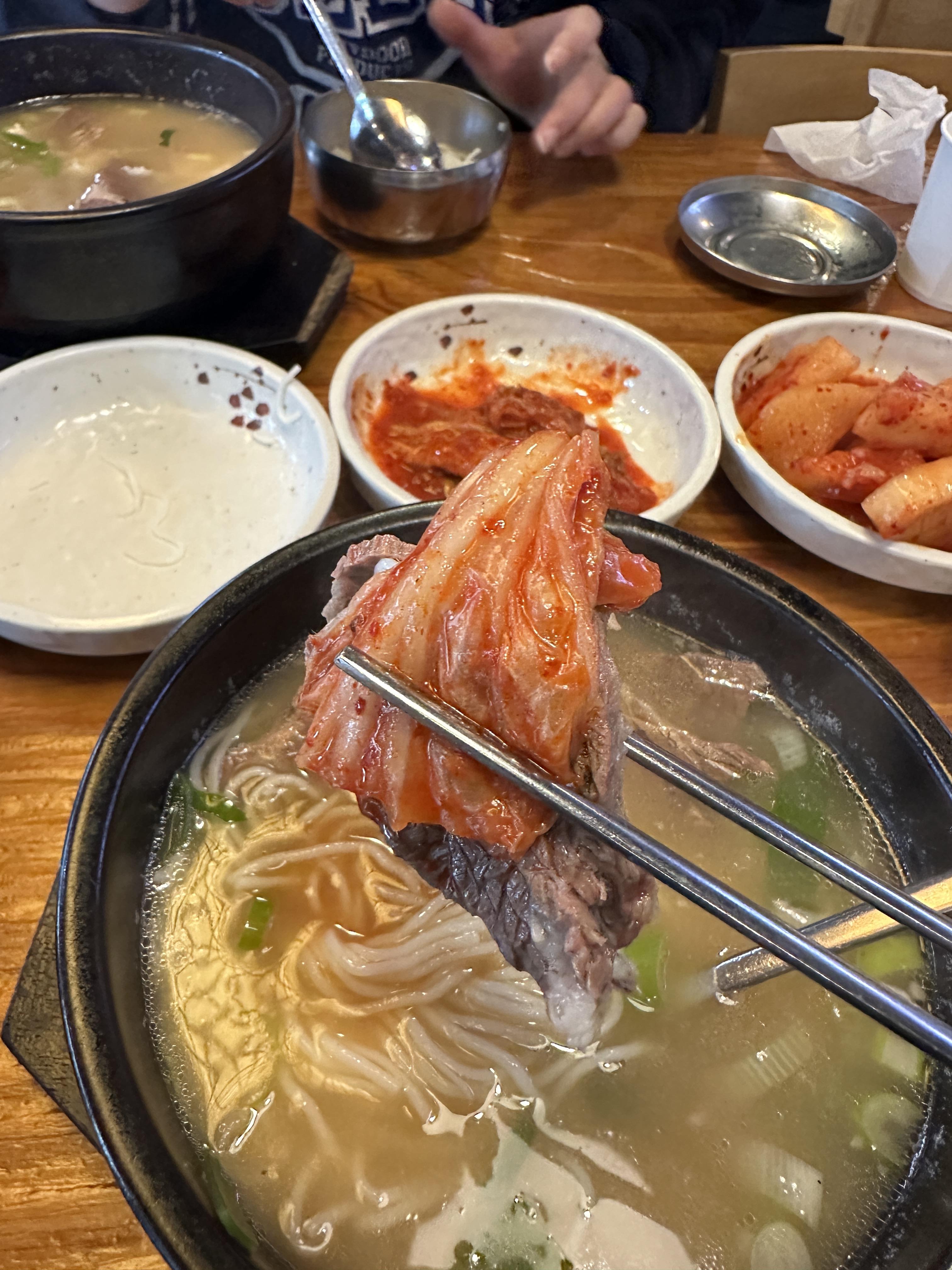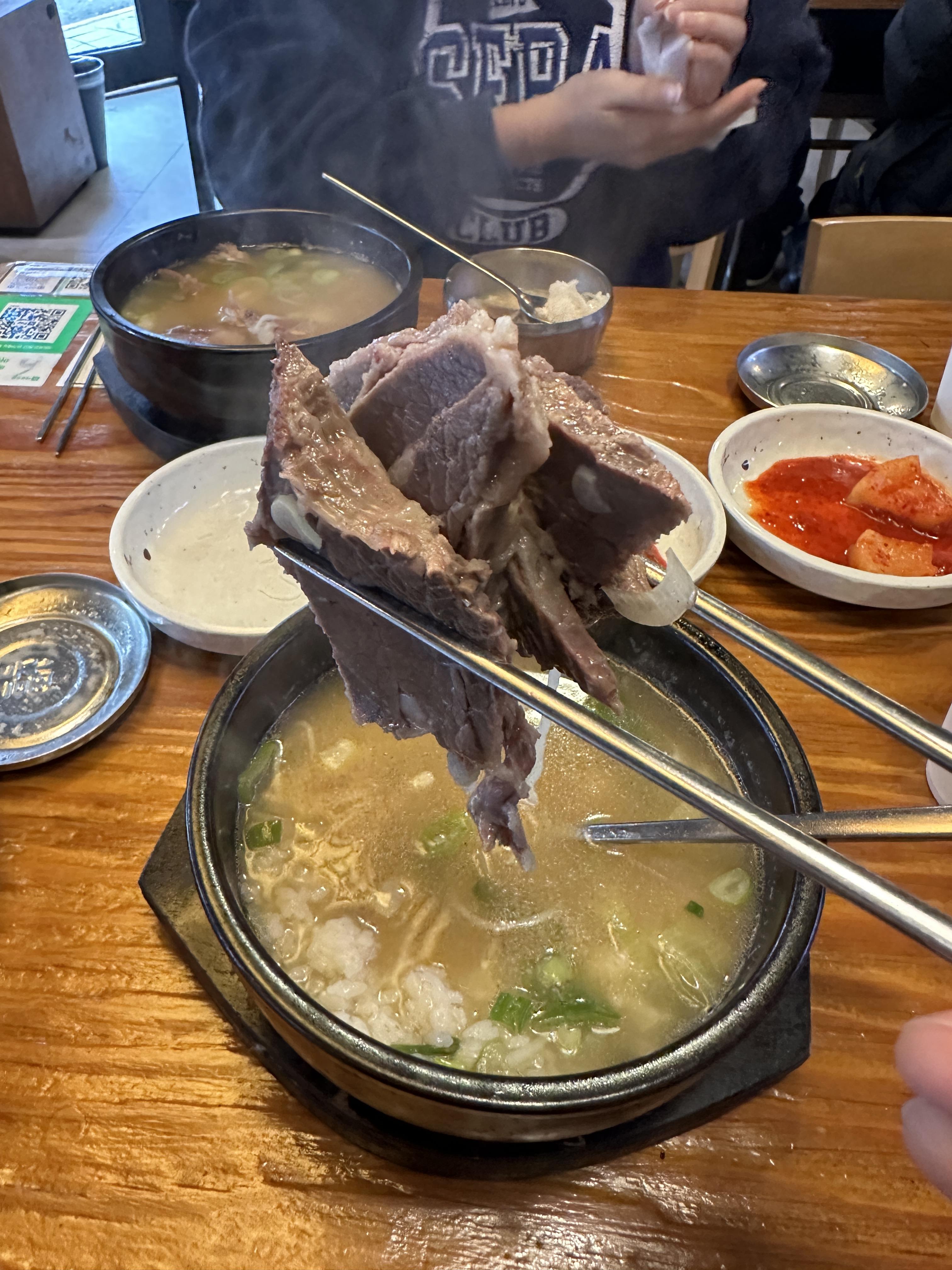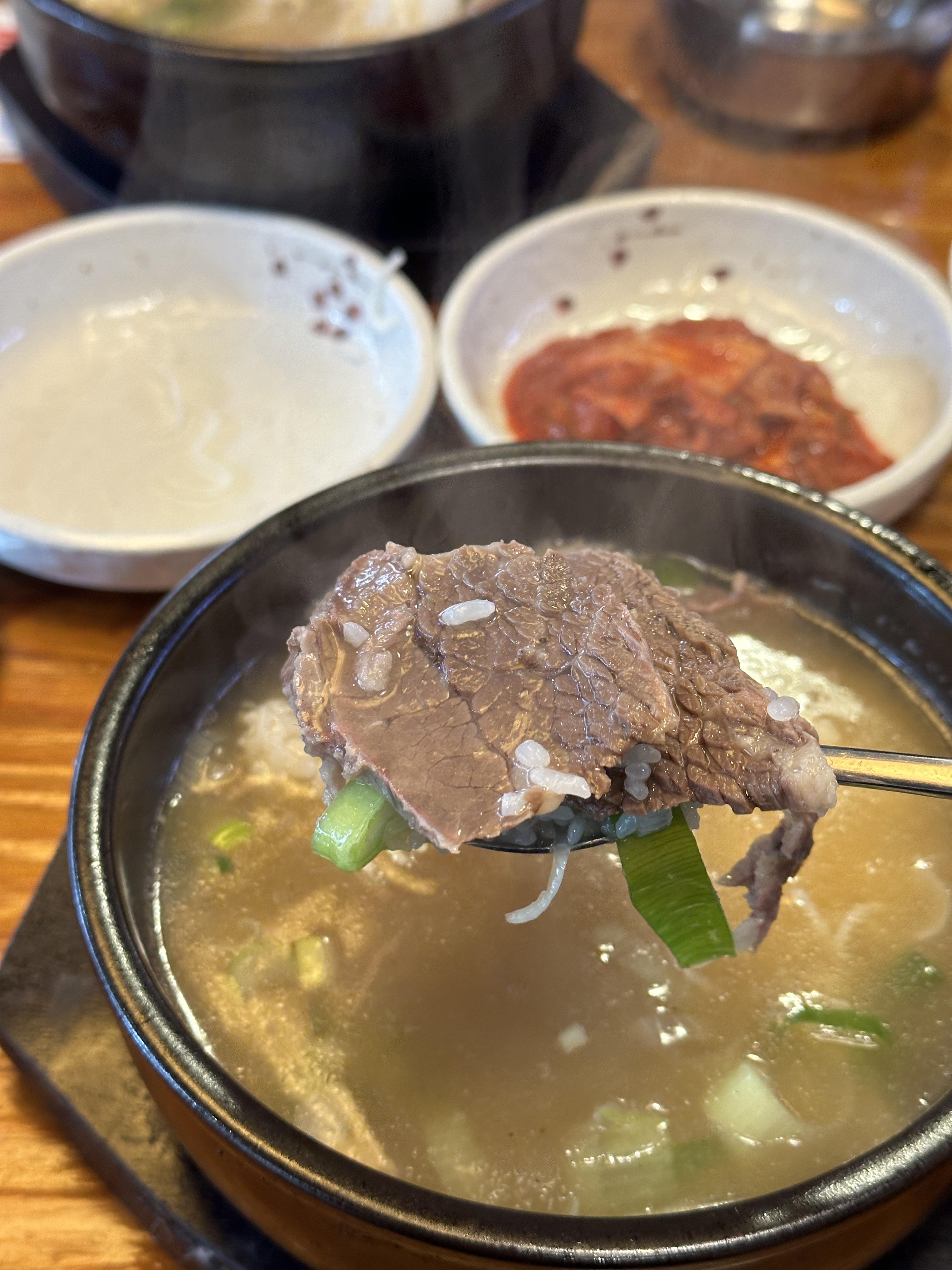 하이라이트입니다. 밥을 넣고 보니, 이렇게 엄청난 사이즈의 한우가 나옵니다. 요새 한우곰탕이라고 하고 살코기를 이렇게 넣어주는 곳이 있었나요? 이게 정직한 식당이지... 라는 생각이 절로 듭니다. 감동받았어요.