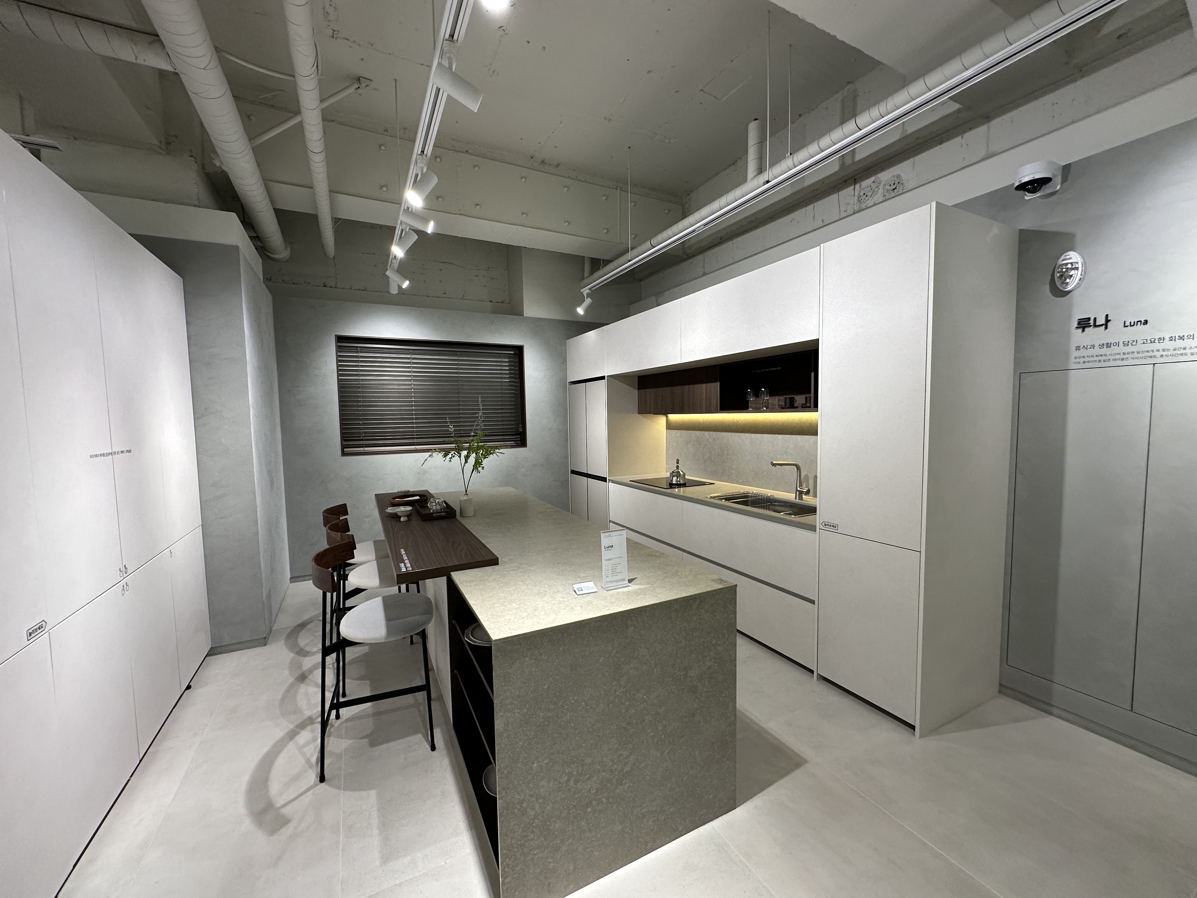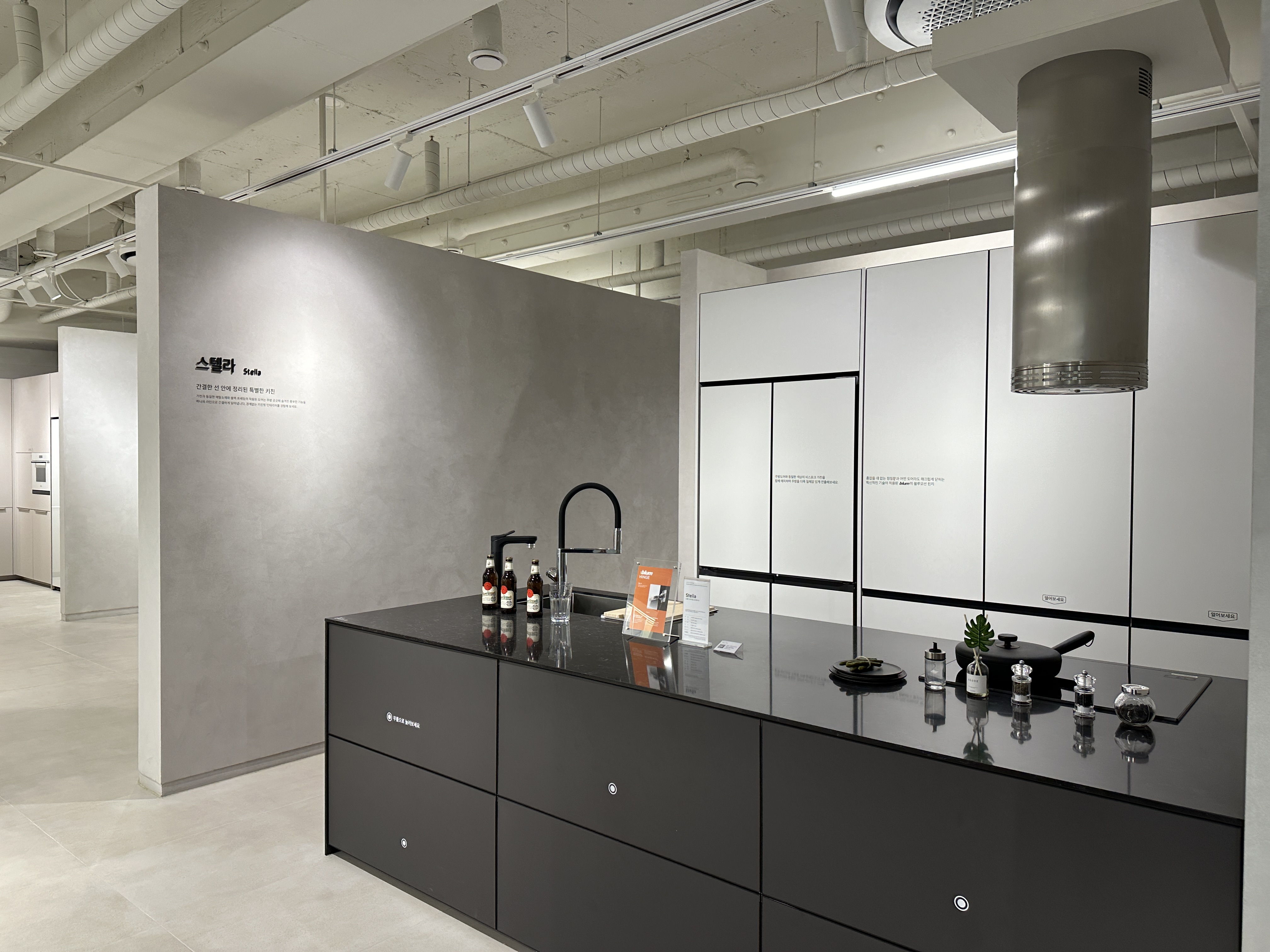 강남역 영림 홈앤리빙 강남점 쇼룸 6층의 각각 공간에는 이름이 붙어있는데요, 이 공간은 스텔라 라는 공간입니다. 대부분의 주방을 밝은 색으로 구성하는 경우가 많은데, 이 공간은 짙은 색감으로 아일랜드를 구성하여 멋지게 보입니다.