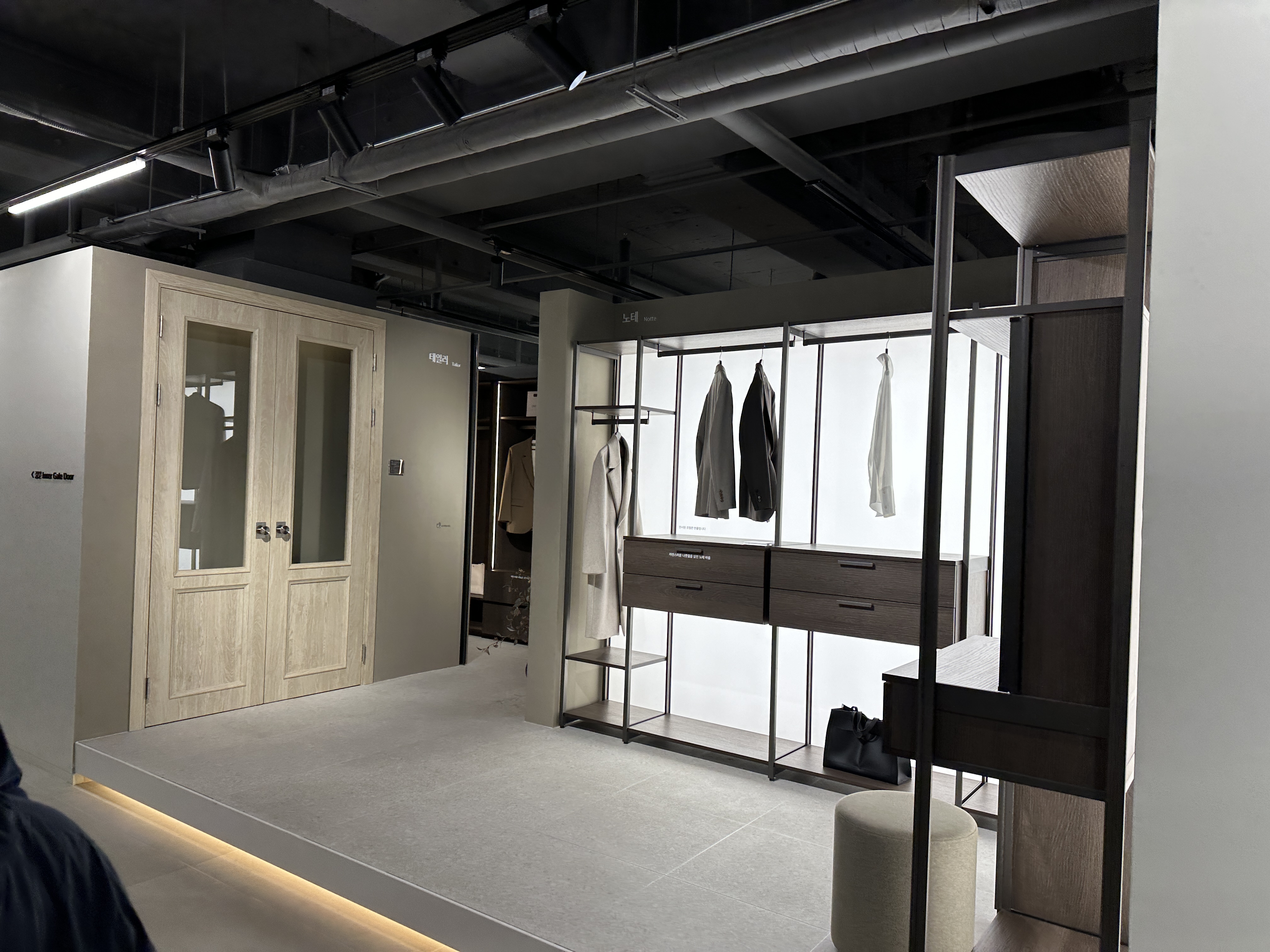 강남역 영림 홈앤리빙 강남점 쇼룸 5층으로 내려가 봅니다. 중문과 붙박이장이 있어요. 물론, 처음에 이 쇼룸을 갔을 때만 해도 중문을 꼭 시공하고 싶었는데, 집의 사이즈나 상태 상 굳이 필요가 없을 듯 해서 관심도가 매우 급감했어요.ㅋㅋㅋ 하지만, 이 공간은 중문이나 붙박이장을 고민하시는 분들께 너무 좋은 공간입니다.