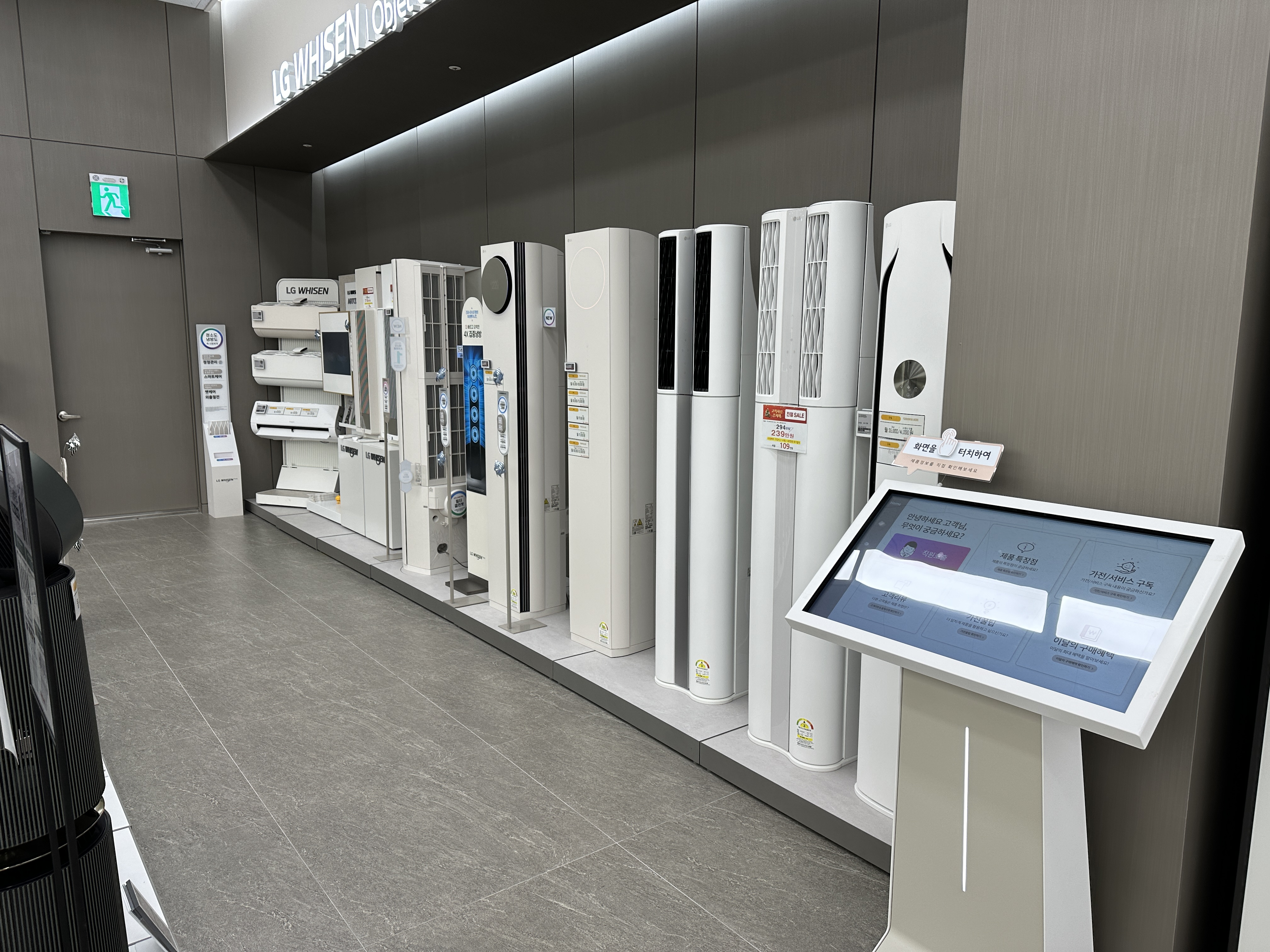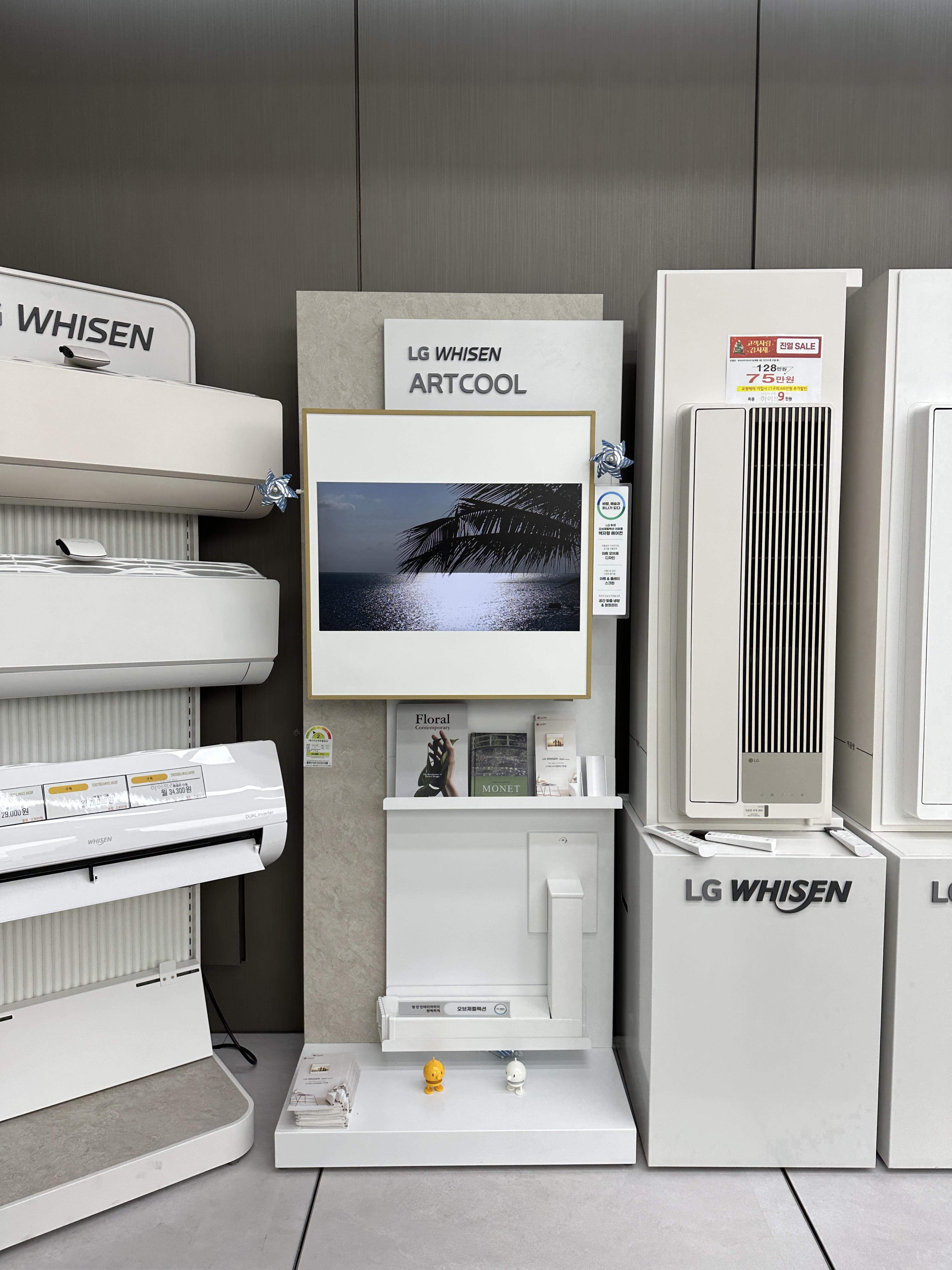에어컨도 이렇게 타워1, 2 등 쭉 모든 제품을 진열해 두었습니다. 구경하는 맛이 쏠쏠합니다. 비싼녀석은 비싼 이유가 있더라구요. 개인적으로는 저 아트쿨이라는 방 에어컨의 외관이 정말 멋진 것 같았습니다. 물론 최고 프리미엄 라인이긴 해요 ㅋㅋㅋㅋㅋㅋㅋ 예뻤어요 여튼!!!
