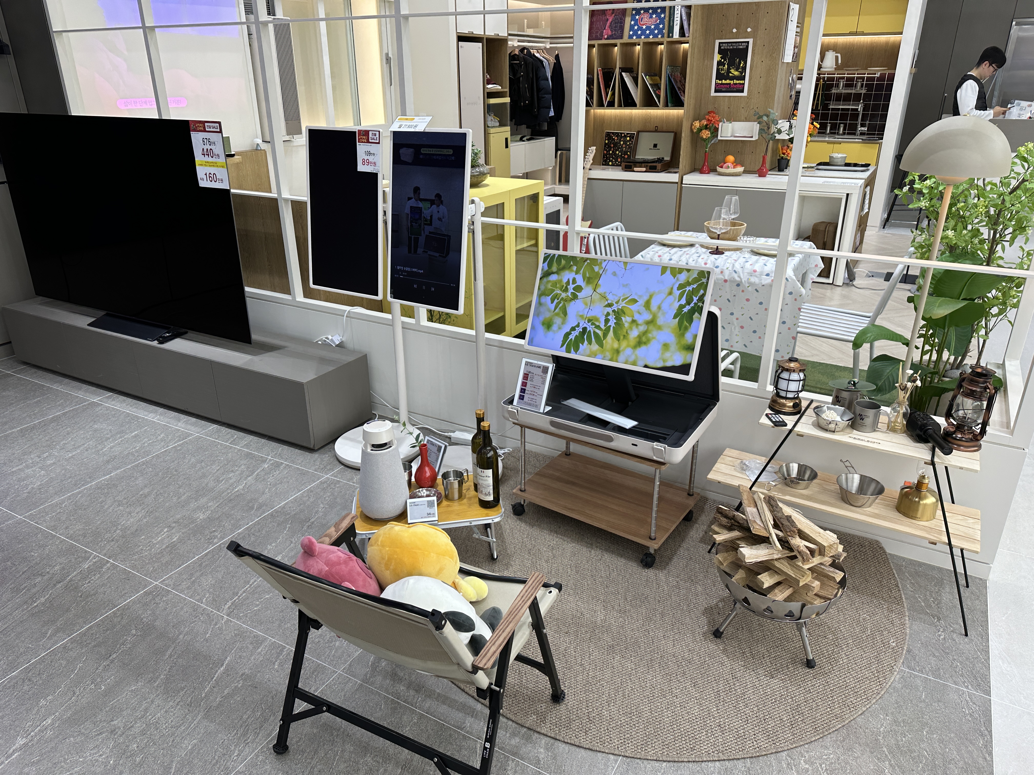 역시 가전은 LG이고, TV 역시 LG입니다. 얇아진 베젤과 선명한 화질이 눈에 확 들어옵니다. 근데 저희는 이번에 티비 안사고 스탠바이미 살꺼라서.... 빠르게 패스했어요... 머쓱.