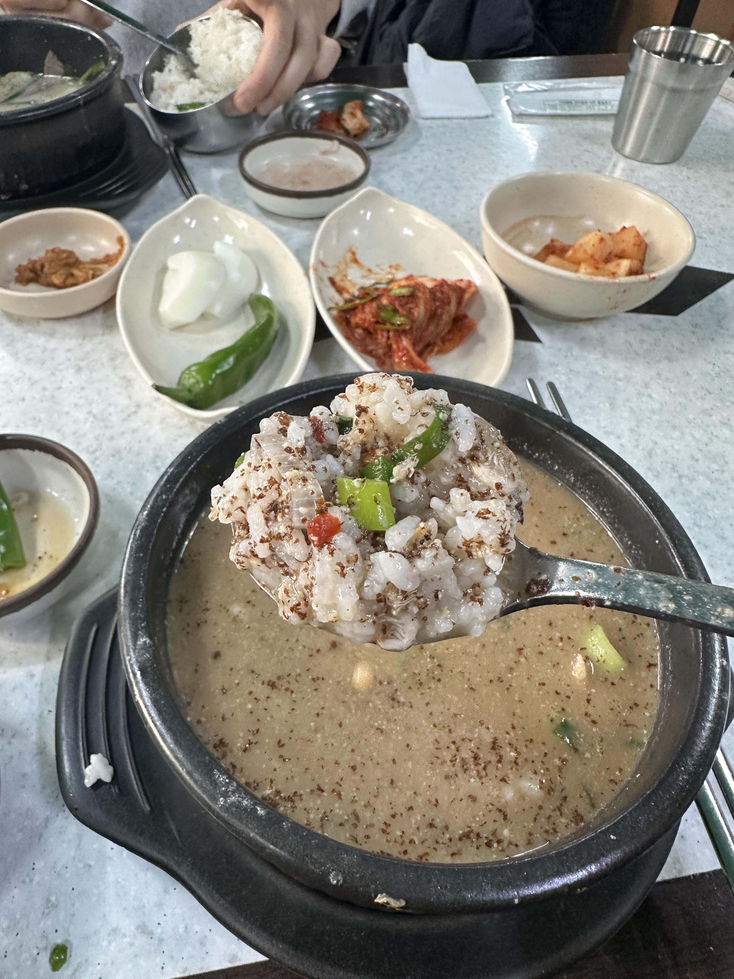 모자람없는 내용물들과 시원한 국물, 그리고 제 취향에 맞게 들깨가루 가득 넣어 먹으니 한끼 식사로 이보다 좋을 수는 없어요.