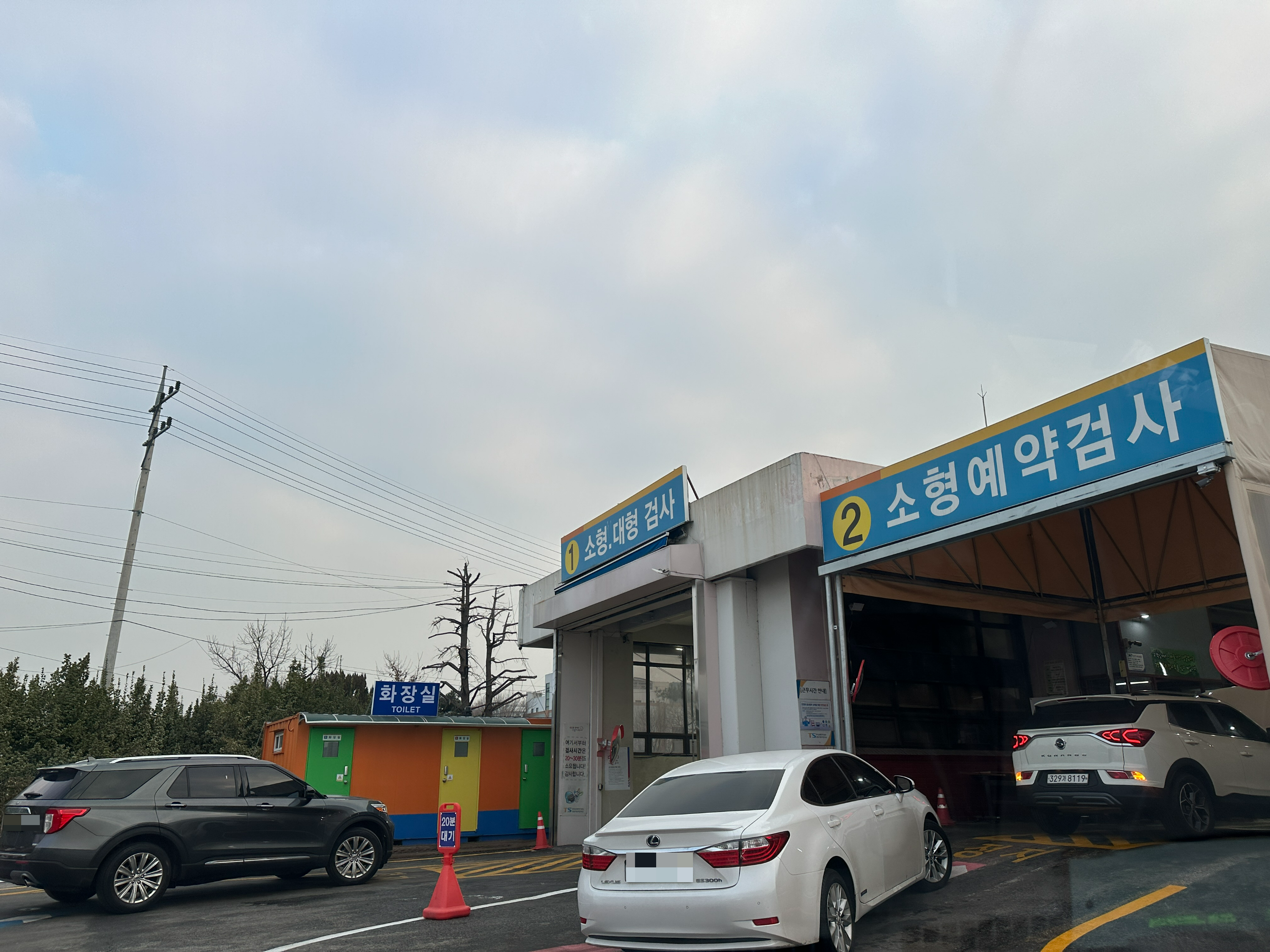 성동 자동차검사소에서 이렇게 2줄을 서 봅니다. 예약검사를 했으니 2번에 줄을 섭니다. 잠시 기다리다가 눈앞 화장실을 다녀왔답니다. ㅋㅋㅋ 나오는 데 차량이 한대도 없더라구요 ㅋㅋㅋㅋ 후딱 들어갑니다.