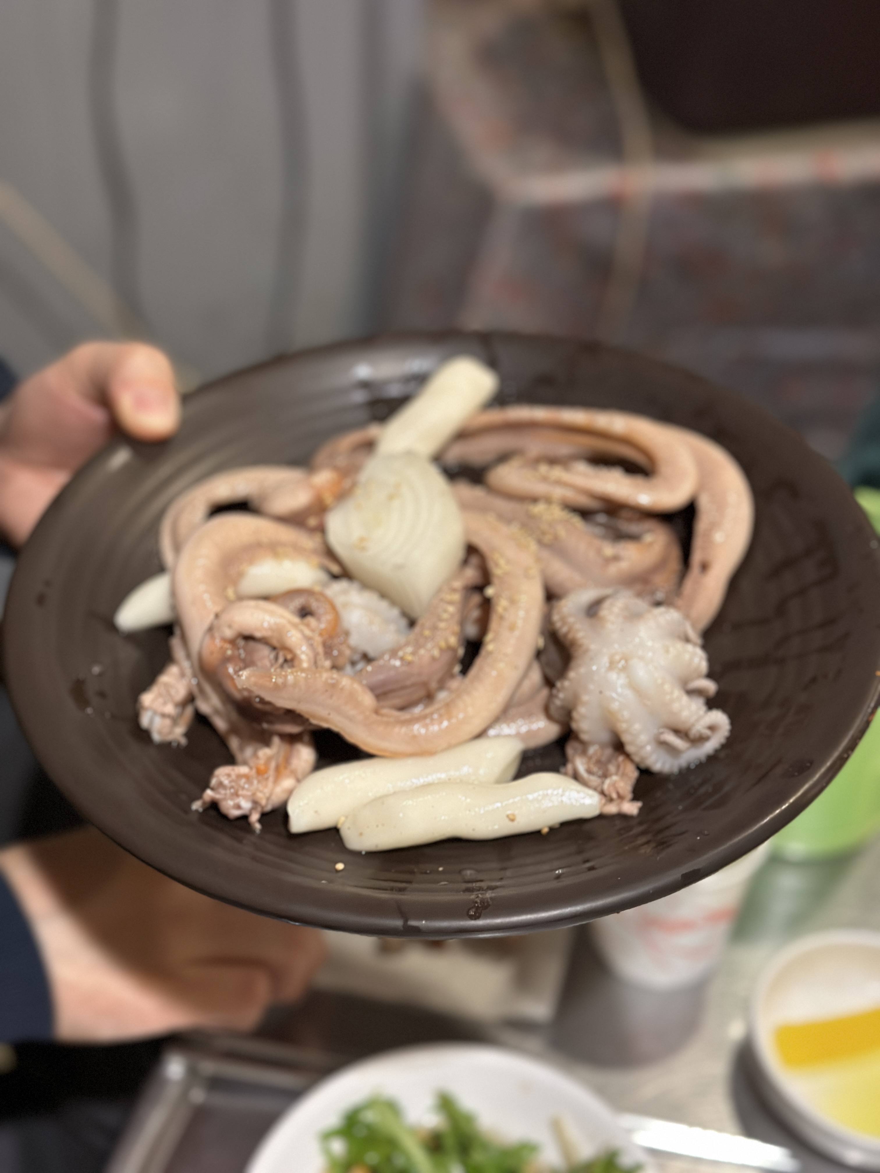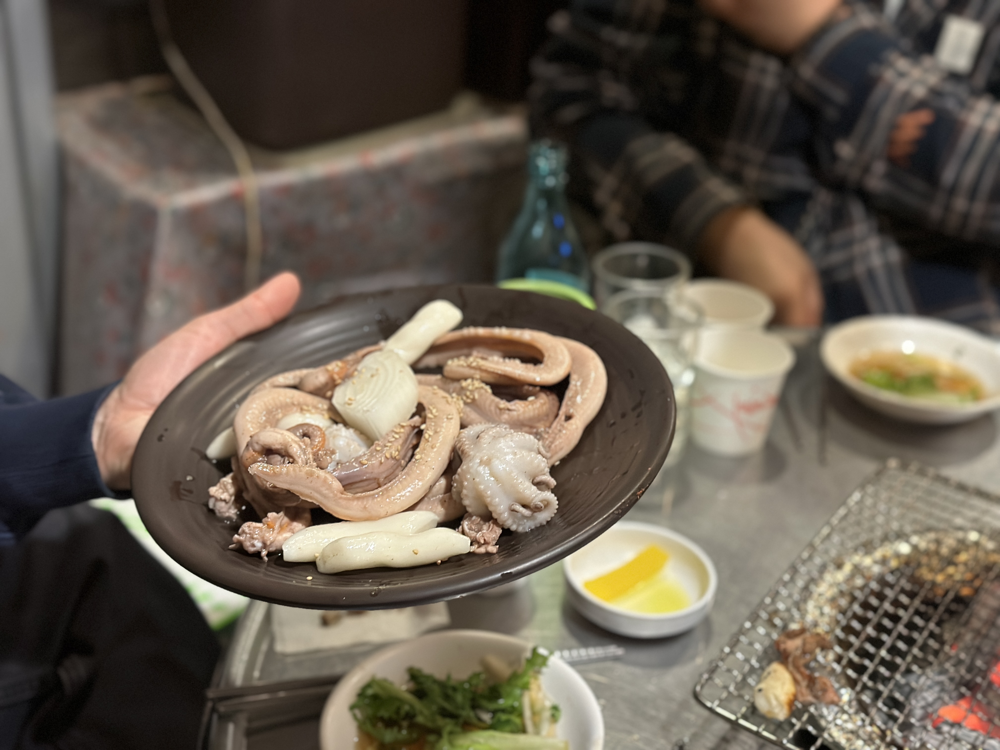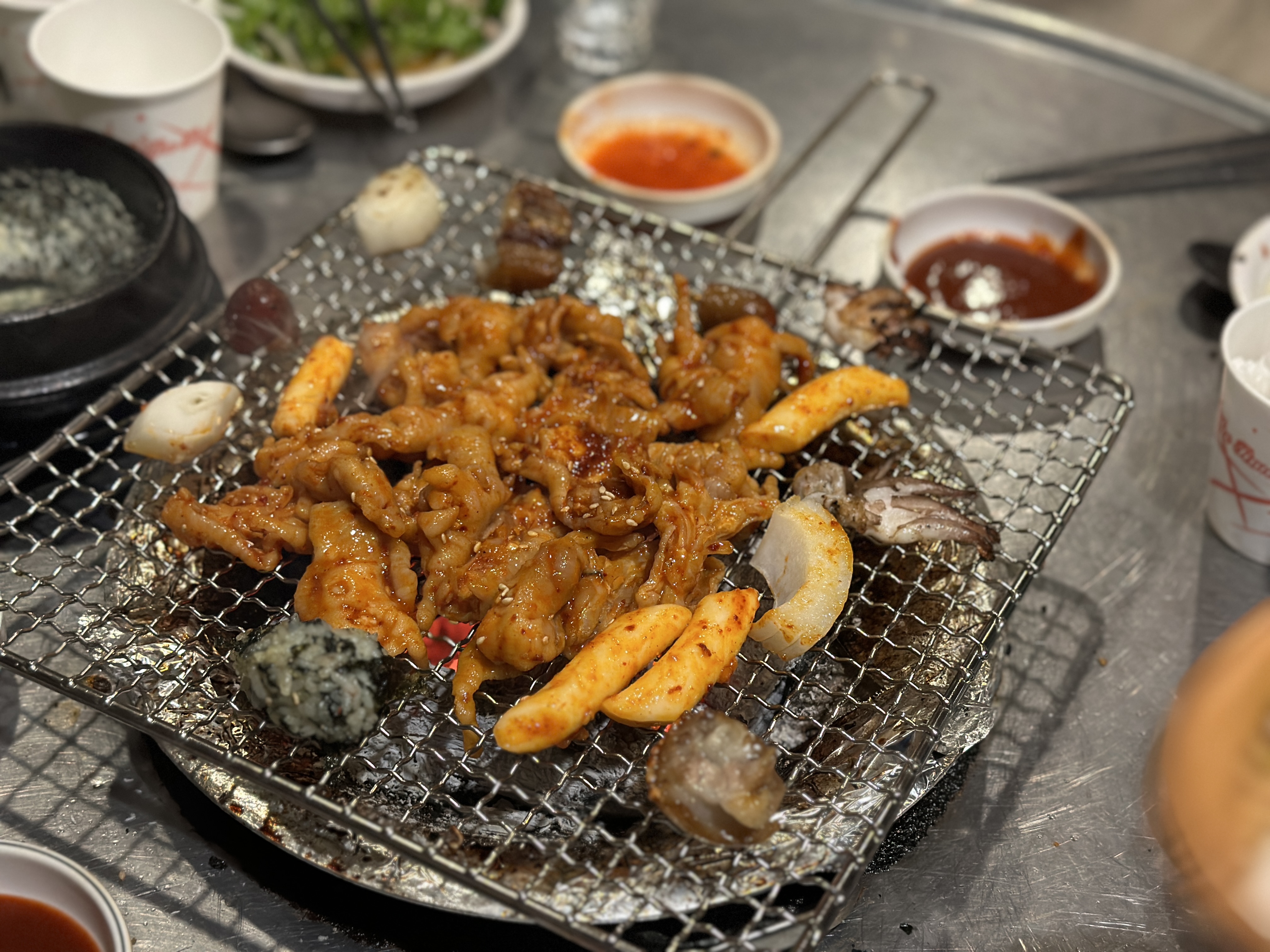 한남동 돼지꼬리 맛집 털보네꼼장어닭발의 간판에 써있는 꼼장어를 드디어 주문해봅니다. 웬 쭈꾸미가 같이 나와서 당황했어요 ㅋㅋㅋㅋ