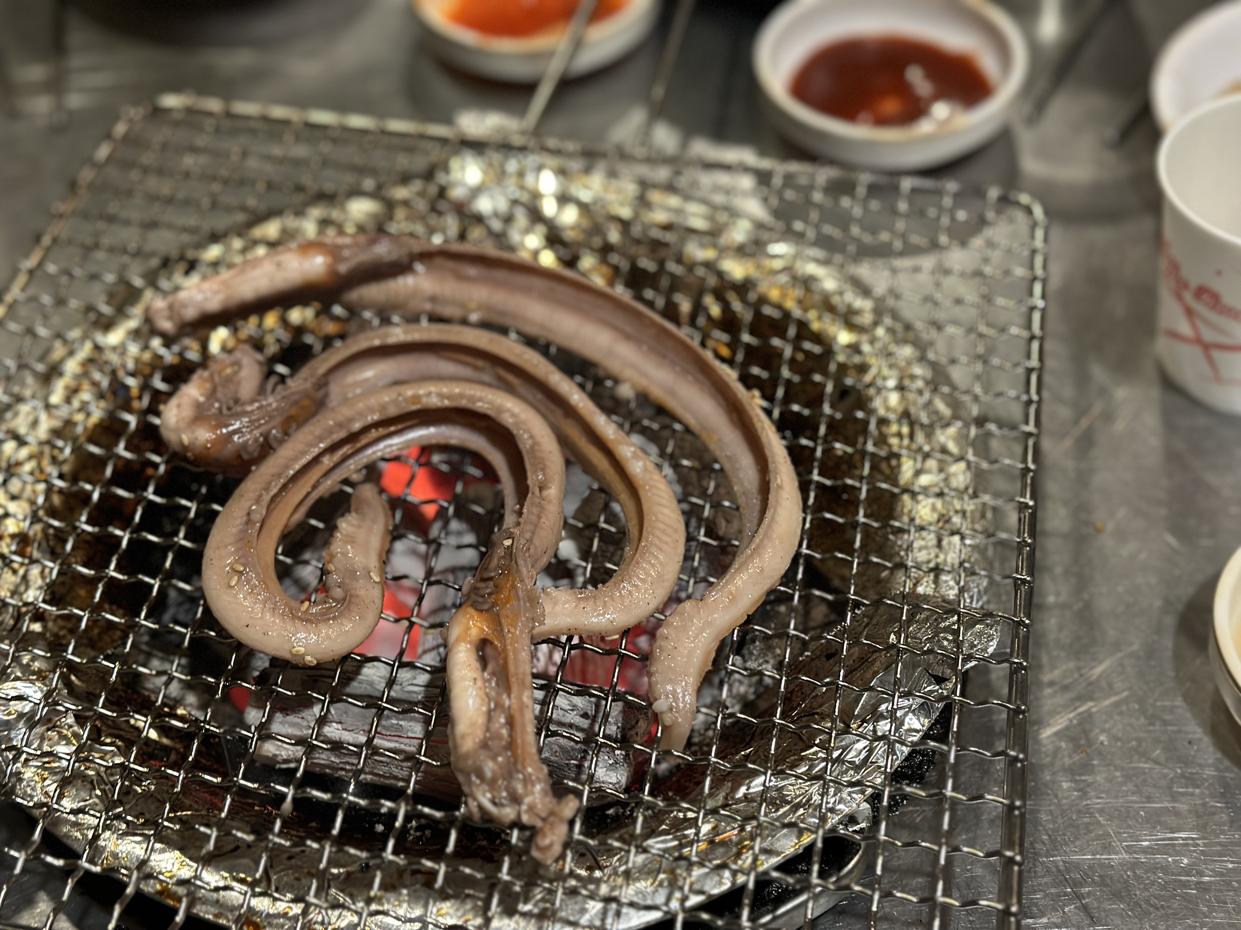 꼼장어는 역시 쫄깃한 식감이 참 매력적이죠. 사진찍을 시간도 없다구요. 빠르게 구워봅시다.