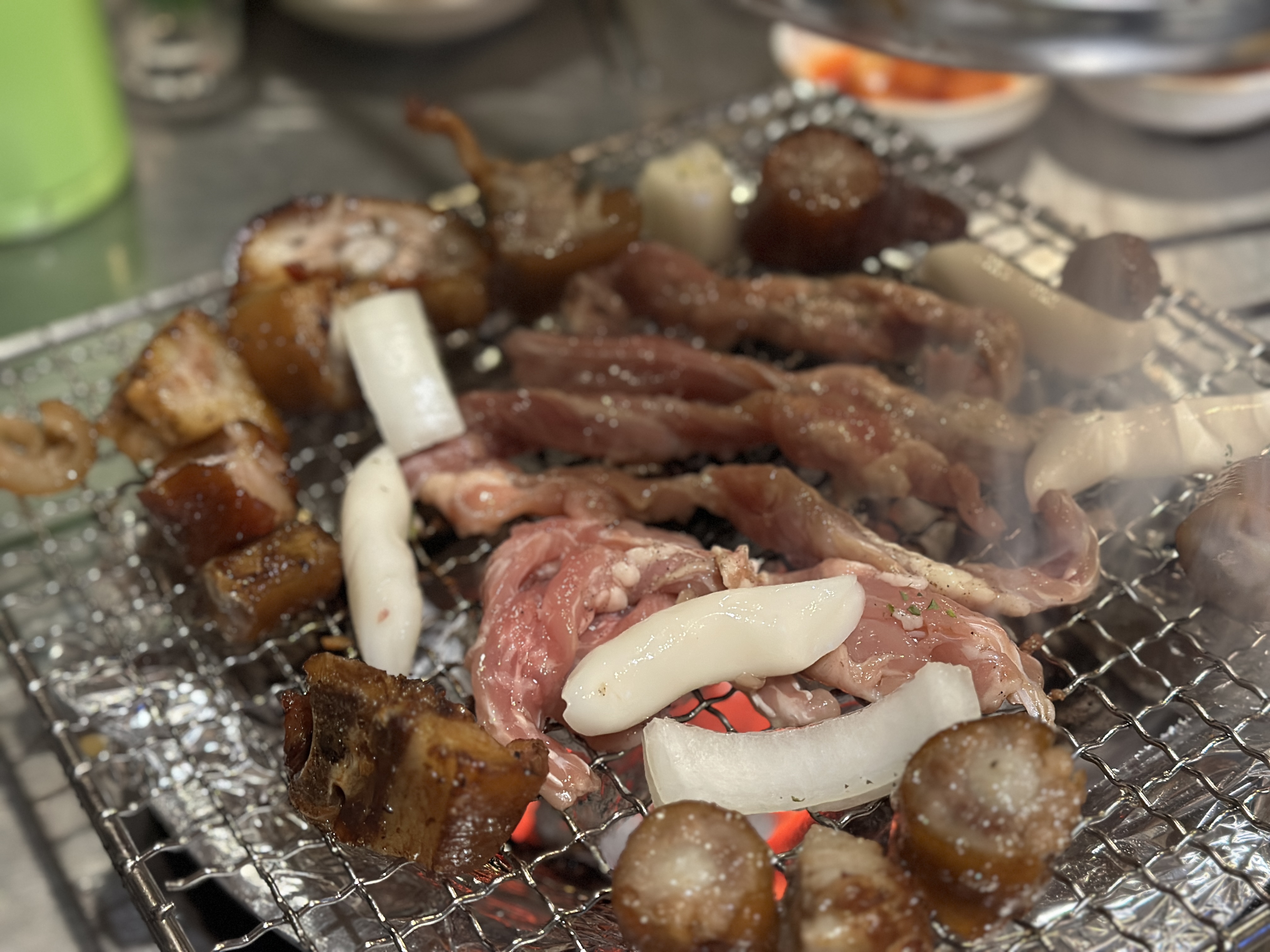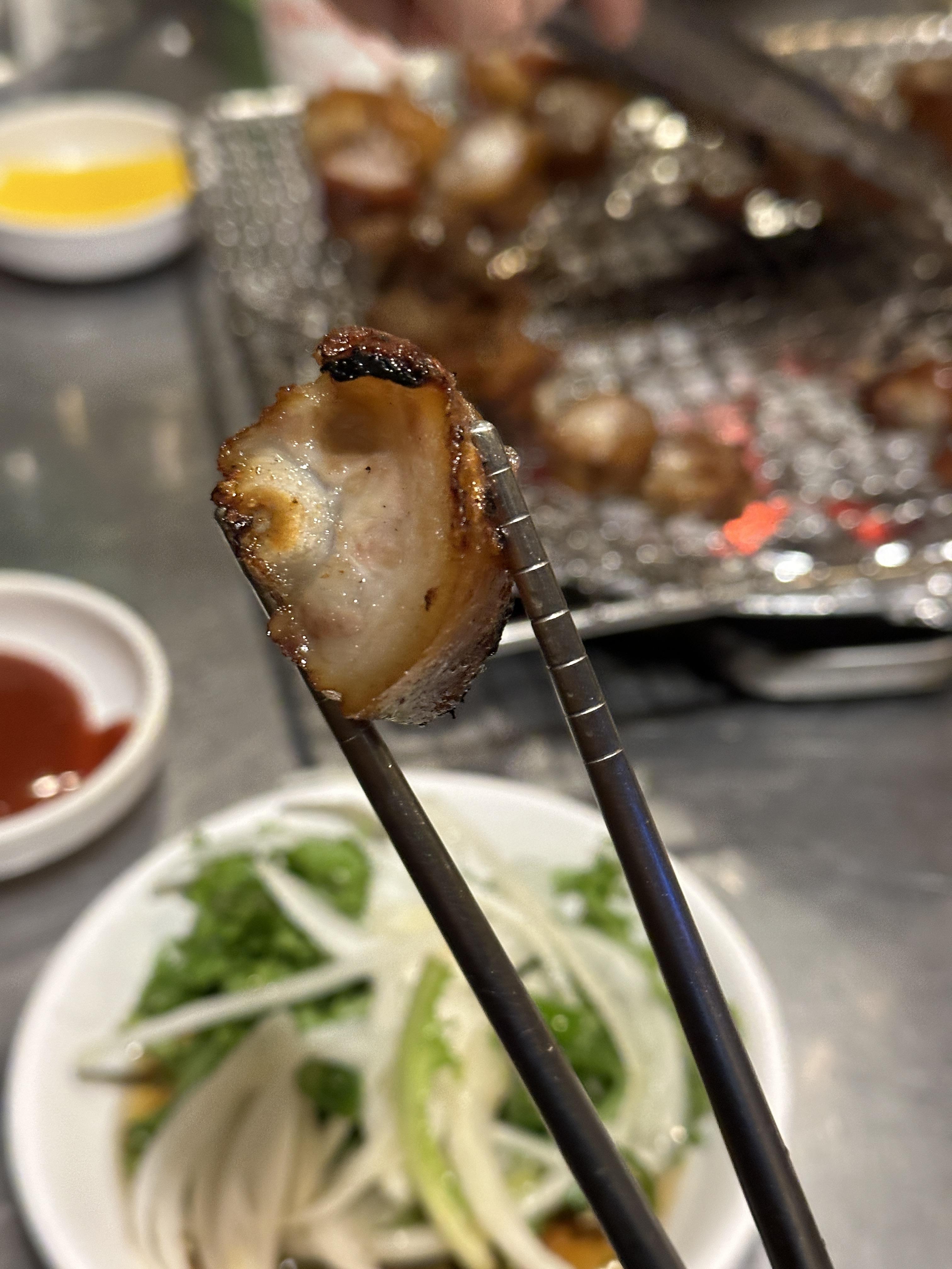아직 돼지꼬리가 남아있는 상태에서 신나게 목살을 구워봅니다. 쫄깃쫄깃한 맛이 매력적이고, 떡까지 같이 주기에 구워 먹기에 손색이 없습니다. 추천추천