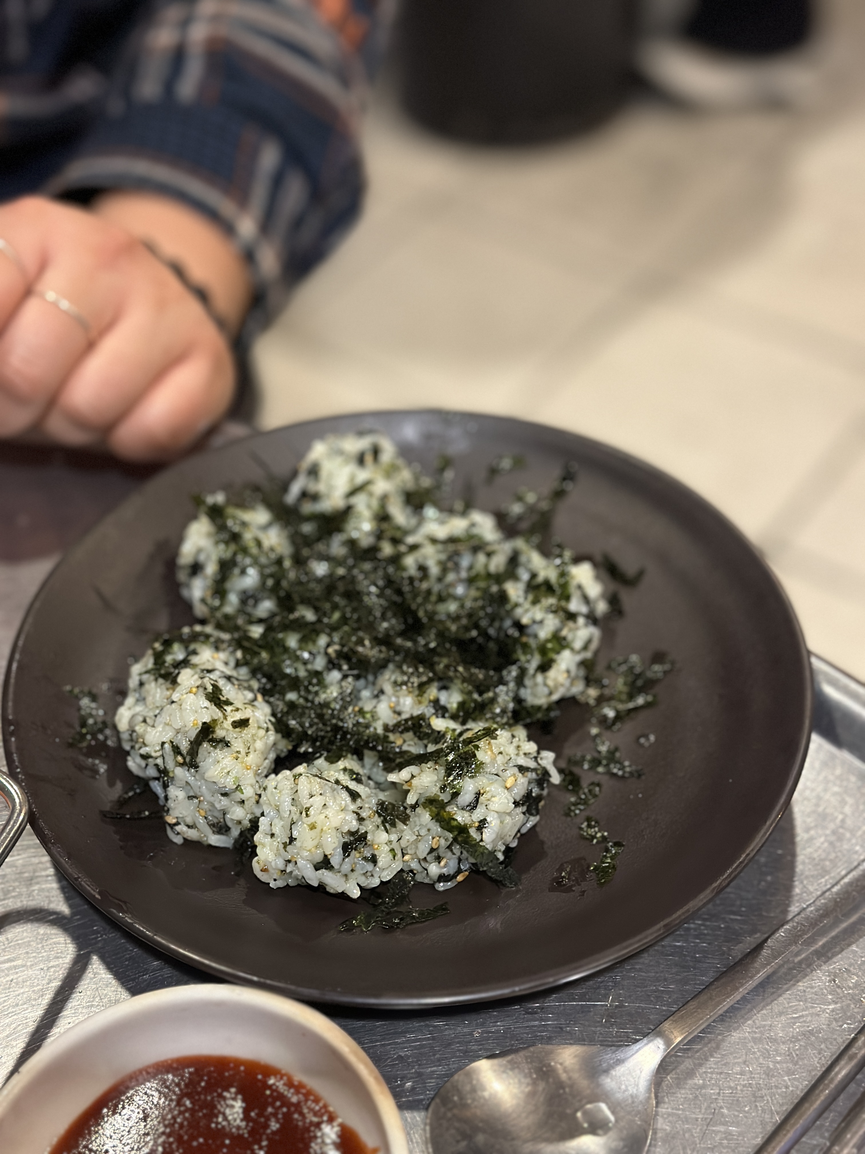 한남동 돼지꼬리 맛집 털보네꼼장어닭발의 또하나 별미 이지만, 사실 꼭 주문해서 먹을 필요는 없는... 그런녀석입니다. 주먹밥 등장합니다. 한입에 쏙 먹을 수 있는 것은 좋지만, 기름이 유난히 많이 묻어서 아쉬웠어요.