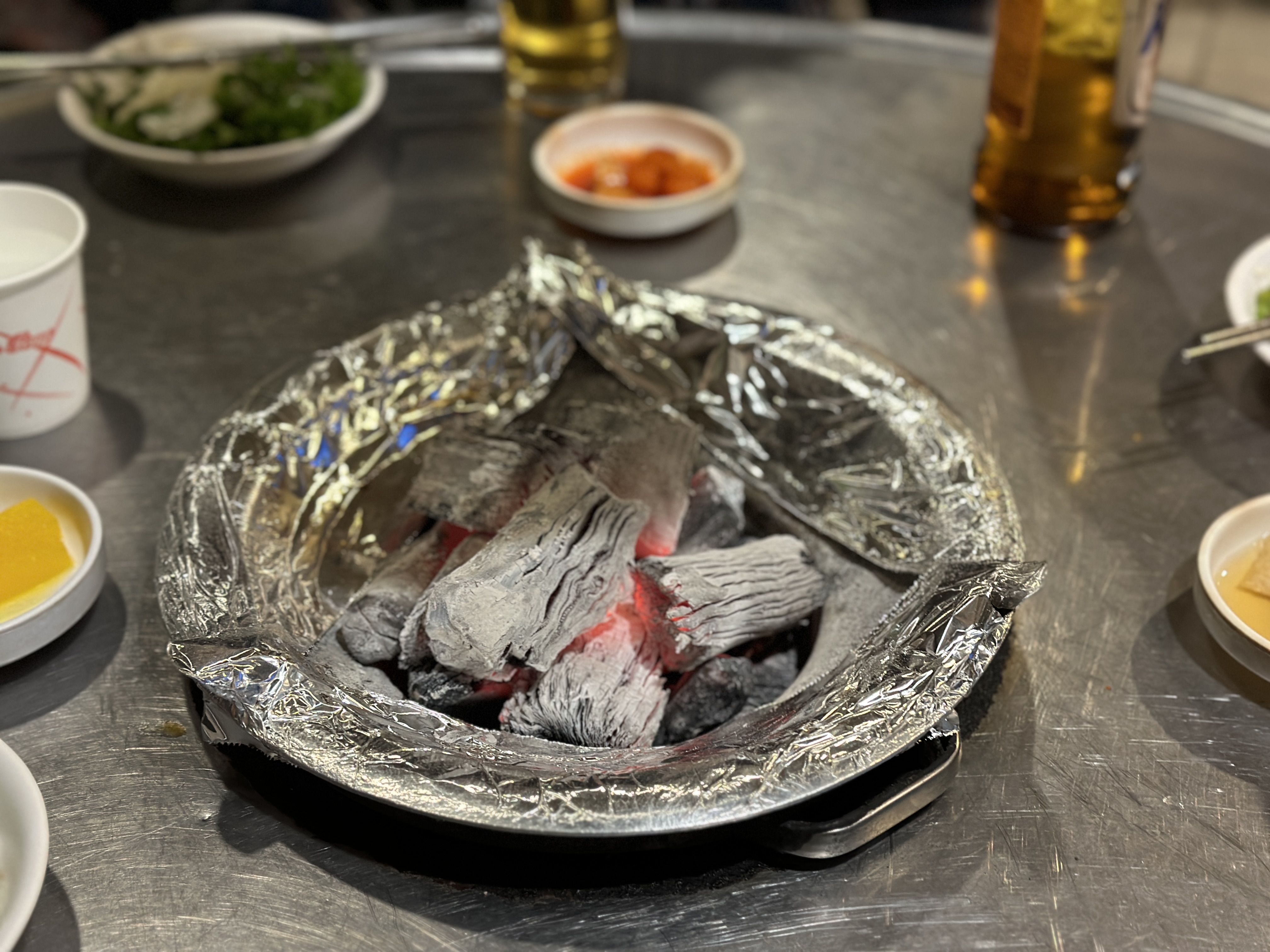 한남동 돼지꼬리 맛집 털보네꼼장어닭발에서는 이렇게 숯불로 음식류를 조리합니다. 따뜻하면서 화끈한 불의 힘이 기대됩니다.