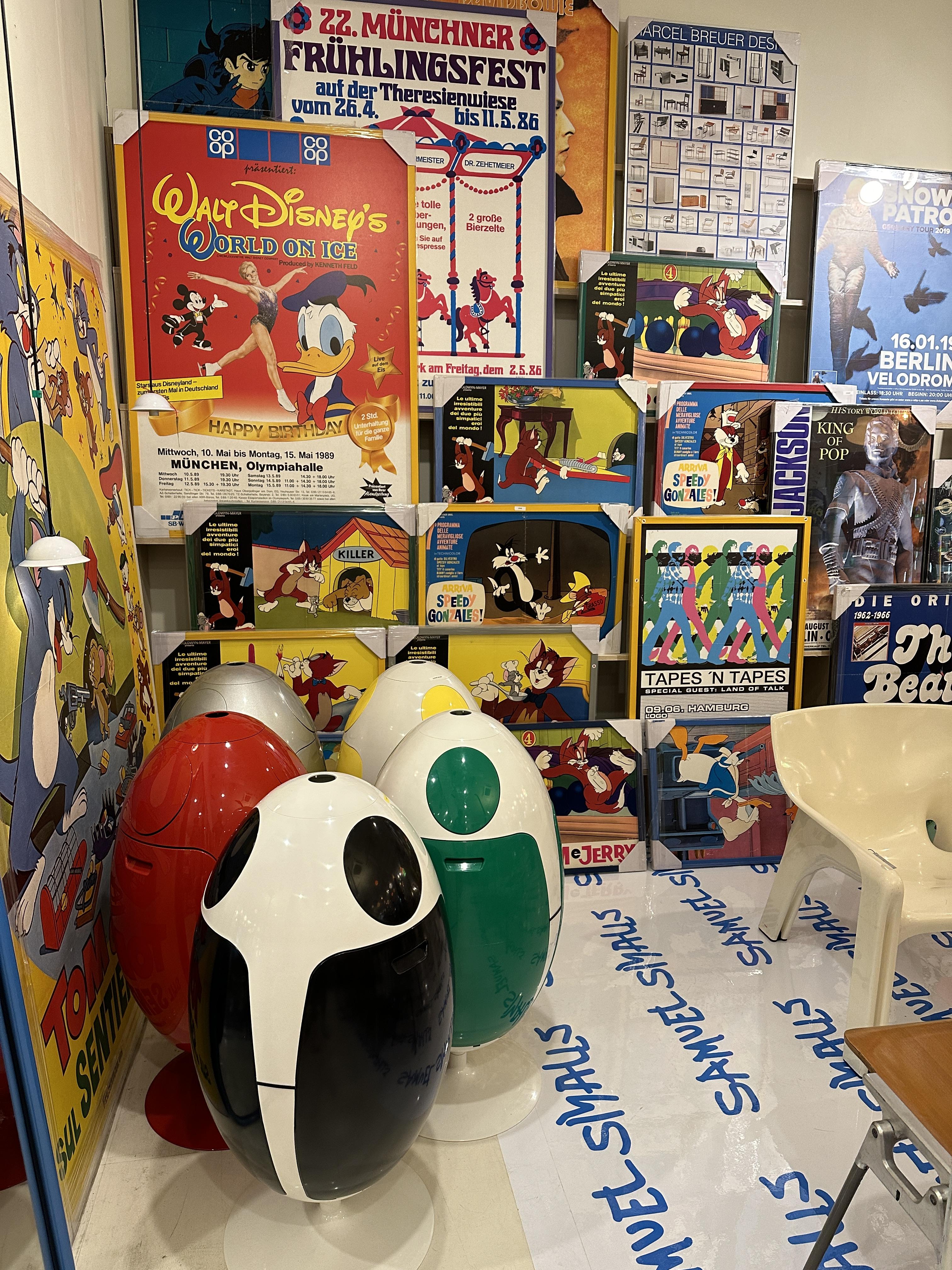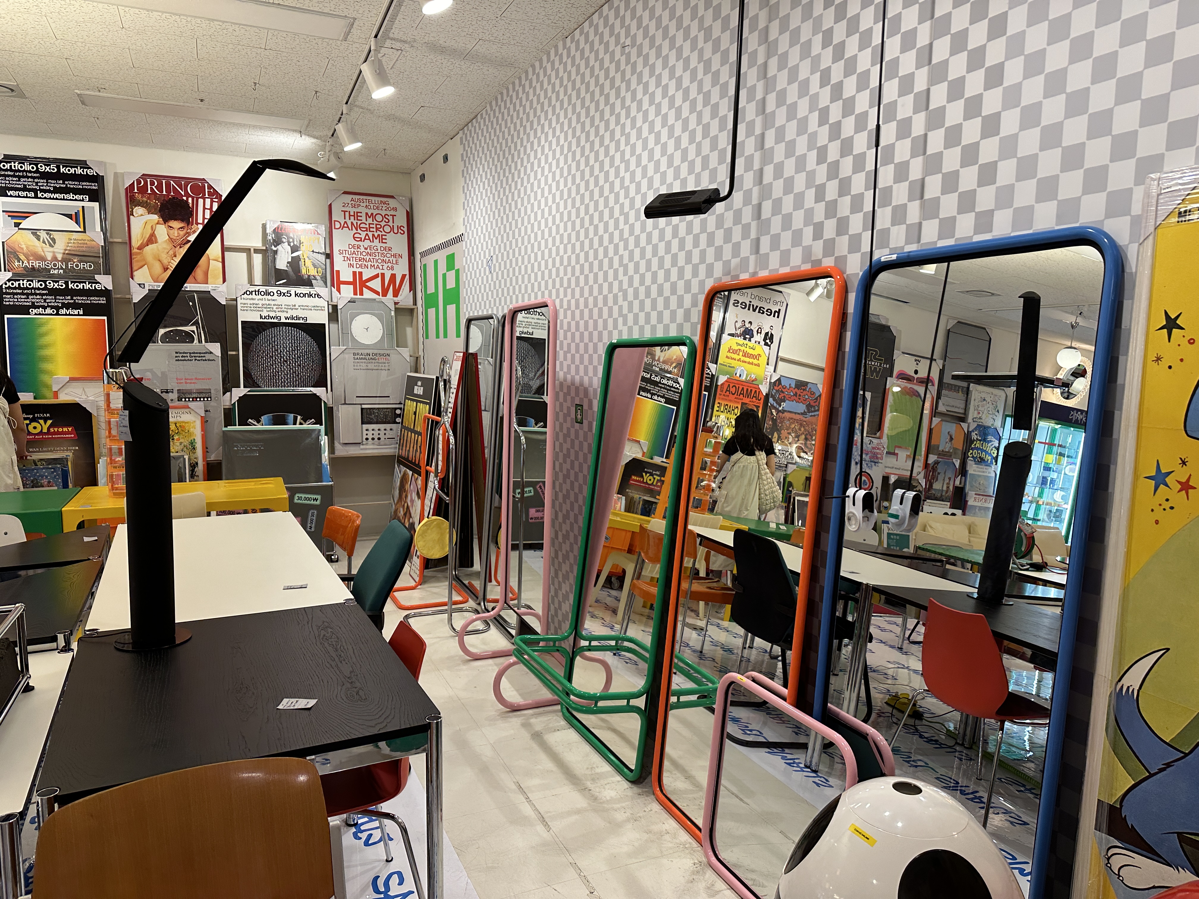 온통 벽면을 메운 액자와 포스터들, 거울이 눈에 띕니다. 거울들도 알록달록 귀엽습니다. 포스터들은 오래된 영화 포스터나 이런저런 오래된 그림들이 가득해요. 심지어 88올림픽 안내판까지 팔더라구요....(?)