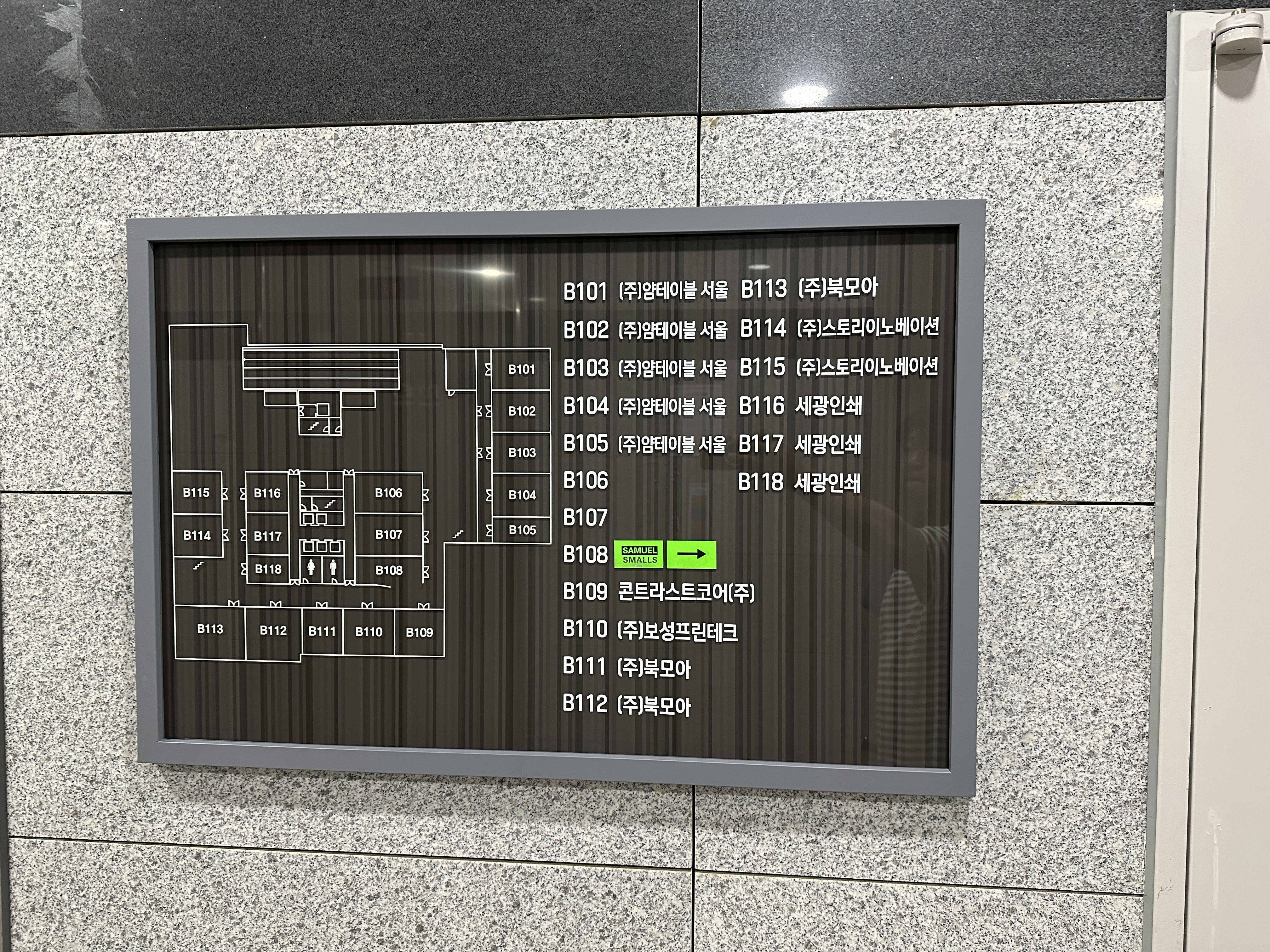 성수역 SK V1 건물을 보고 여기에 있다고? 라는 말이 바로 나올 법 합니다. 오피스텔 건물인데? 라는 생각이 바로 들었어요. 이 날 마주친 분들 모두 어리둥절 하더라구요 ㅋㅋㅋ 특이했습니다. 지하 108호에 있는 것을 확인하고 내려가봅니다.