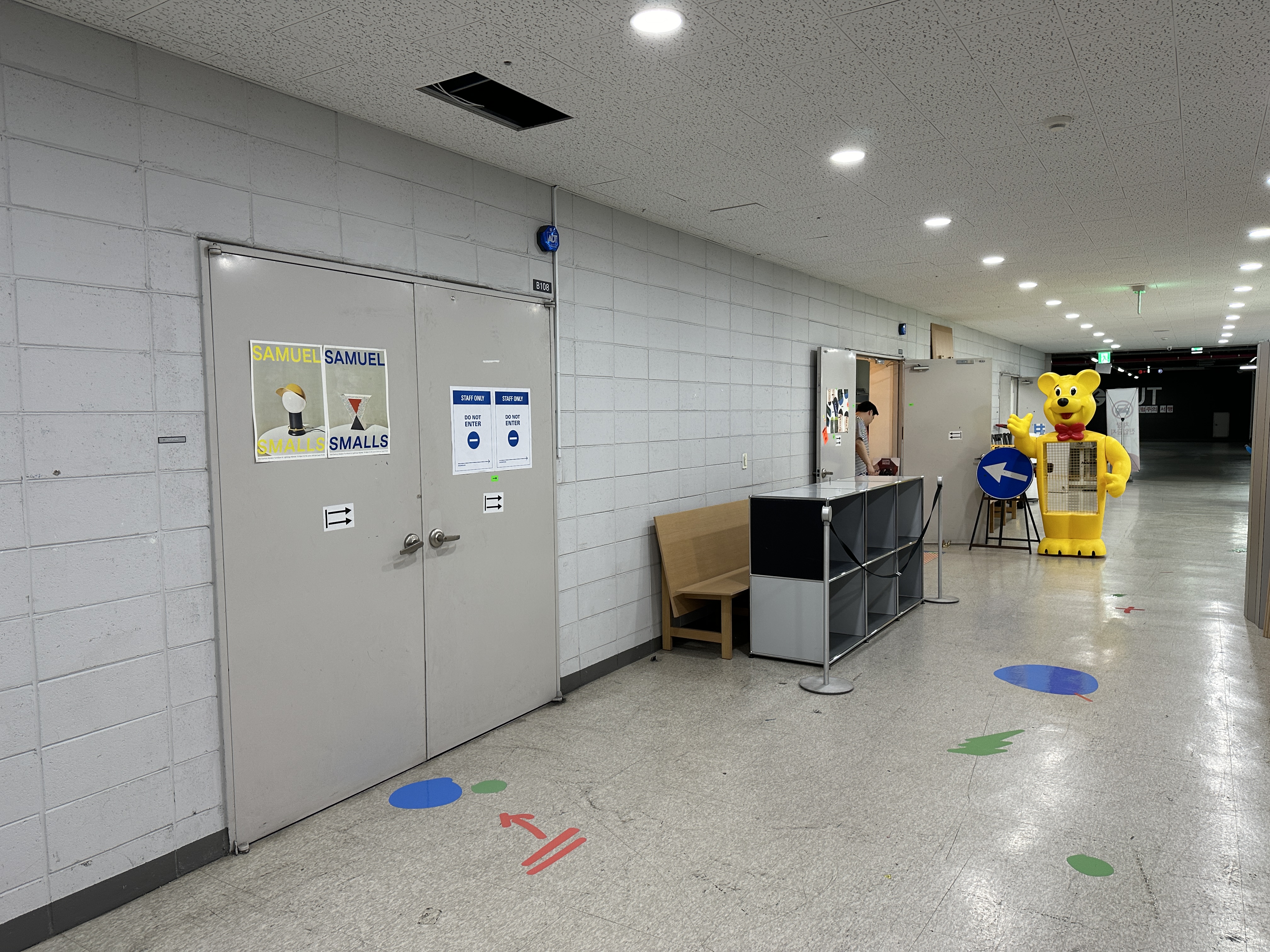 성수역사무엘스몰즈(samuelsmalls) 편집샵의 입구입니다. 엘리베이터에서 내리셨다고 바로 볼 수 있는 건 아닙니다. 저렇게 초록색 스티커를 따라서 계속 가야 합니다. ㅋㅋ 특이하긴 특이하네요 ㅎㅎㅎ