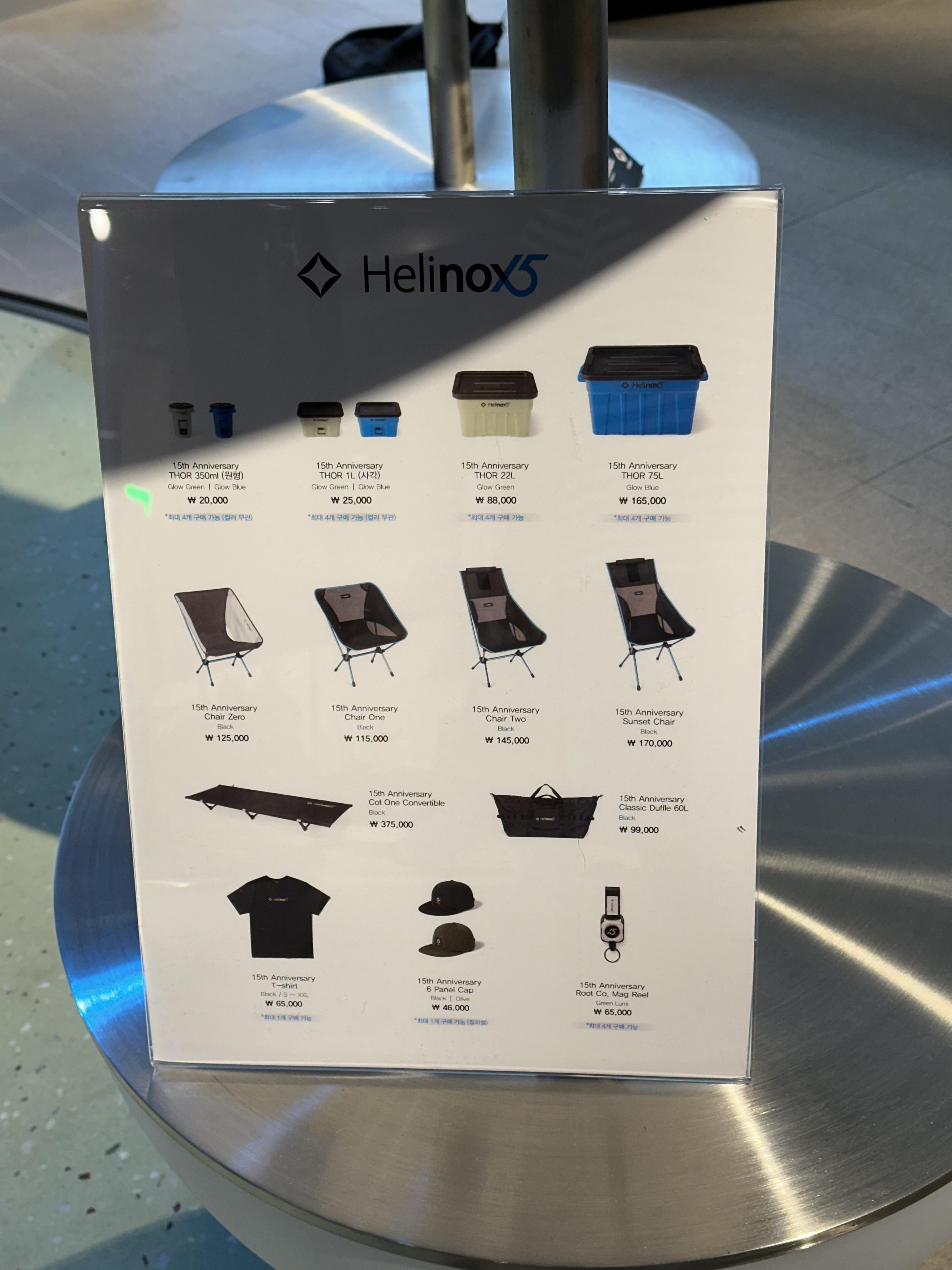 가격표는 생각보다 착한? 듯 했습니다. 예전만해도 헬리녹스가 진짜 너무 비싸다 생각했었는데, 이제는 모든 브랜드에서 가격을 올리다보니 괜찮은데? 라는 생각도 살짝 들어요. 물론, 저렴하거나 가성비 제품들은 아닙니다. ㅋㅋㅋㅋ 하나사서 오래 써야지 하는 느낌입니다. 참고로 저는 2019년인가 18년에 샀던 체어원을 아직도 현역으로 씁니다.