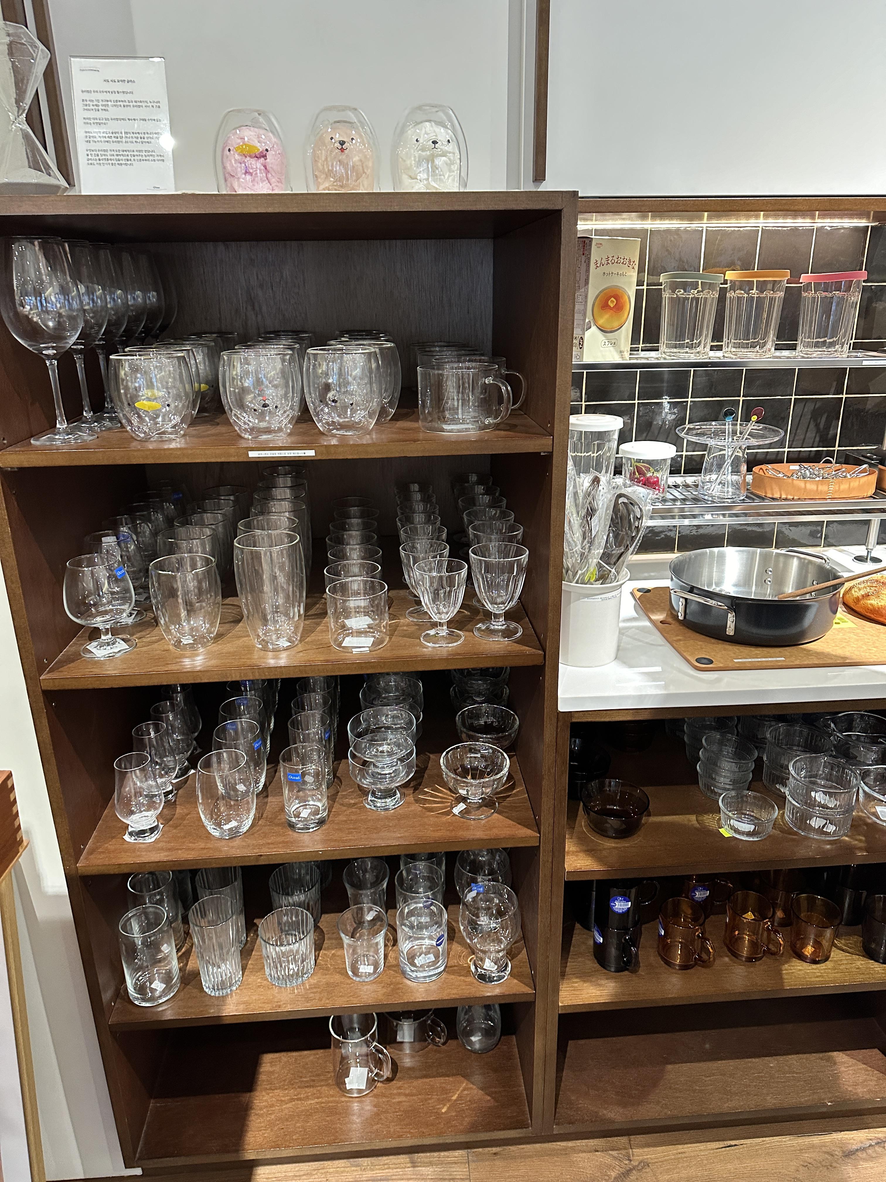 예쁜 유리컵도 이렇게 한 곳에 모아놓으니 예쁘네요. 집에 이렇게 유리컵 진열해 두고 싶어요....ㅠㅠ