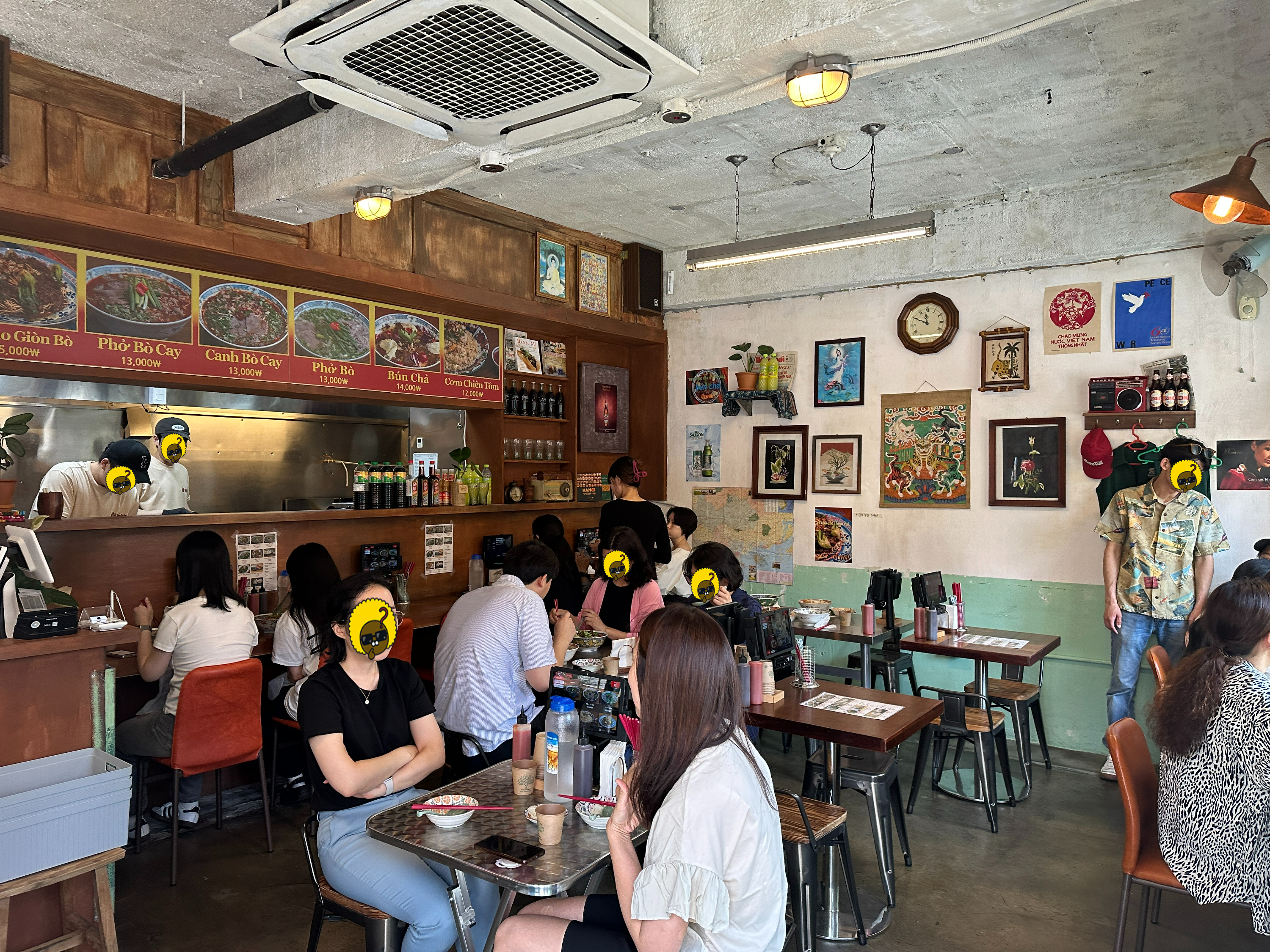 경복궁역 서촌 베트남 전문식당 오이초이 내부 인테리어입니다. 한쪽 면을 다찌로 짜고, 다른 벽면도 오래된 느낌을 내기 위해 노력했네요. 그리고 베트남 소품들이 있습니다. ㅋㅋㅋ 취저.