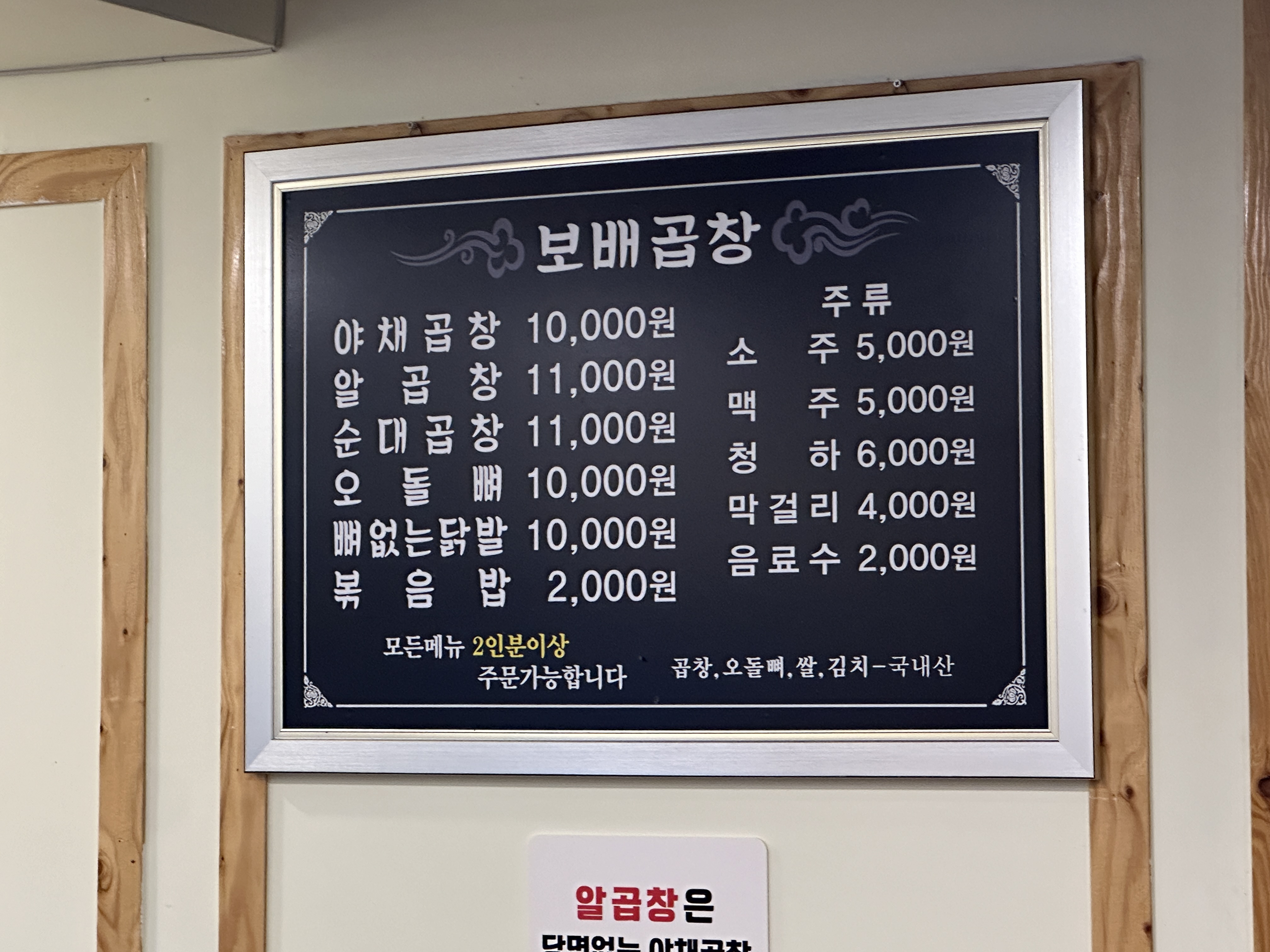3. 종암동 소문난 보배곱창 메뉴판 및 테이블세팅