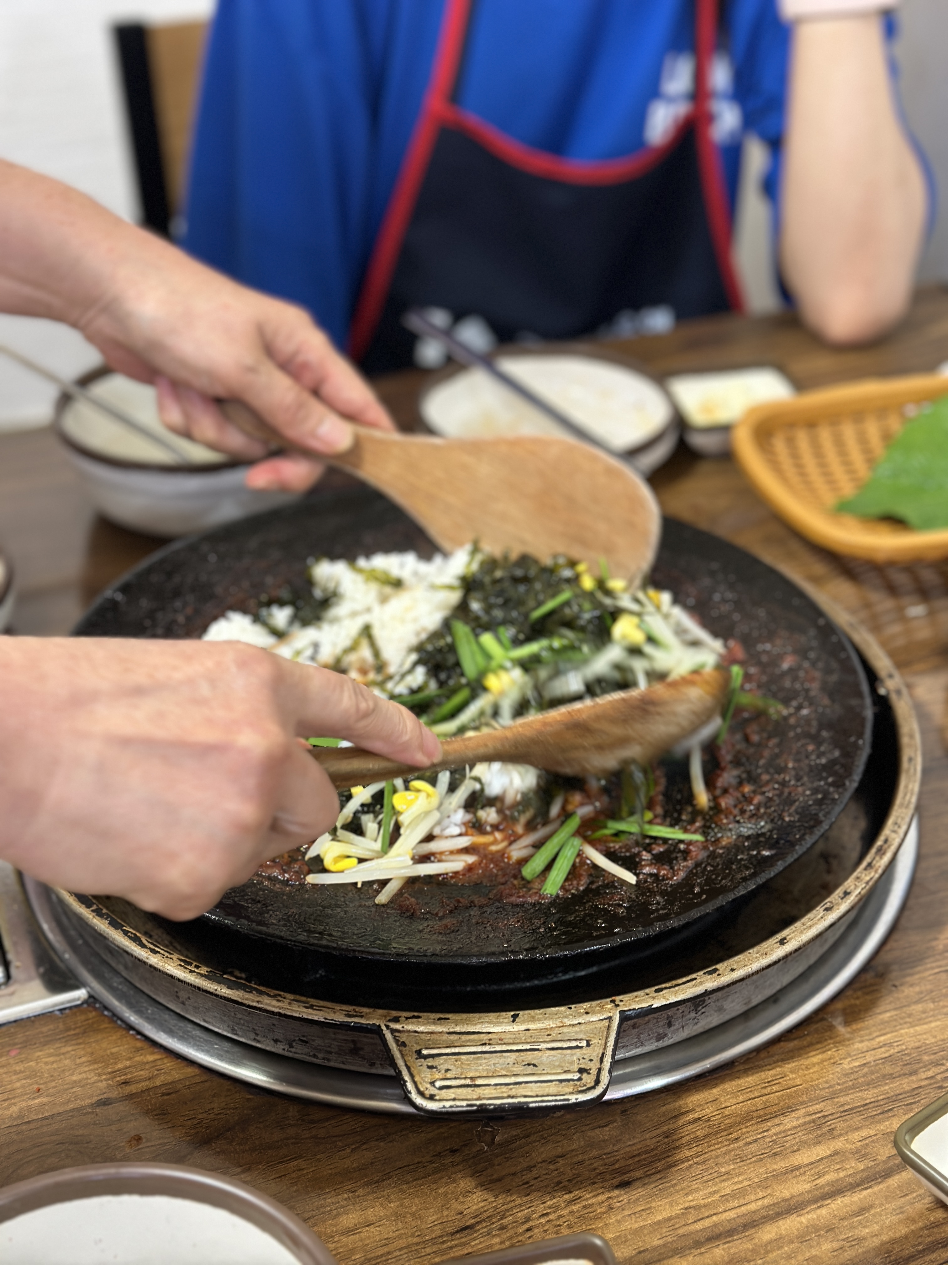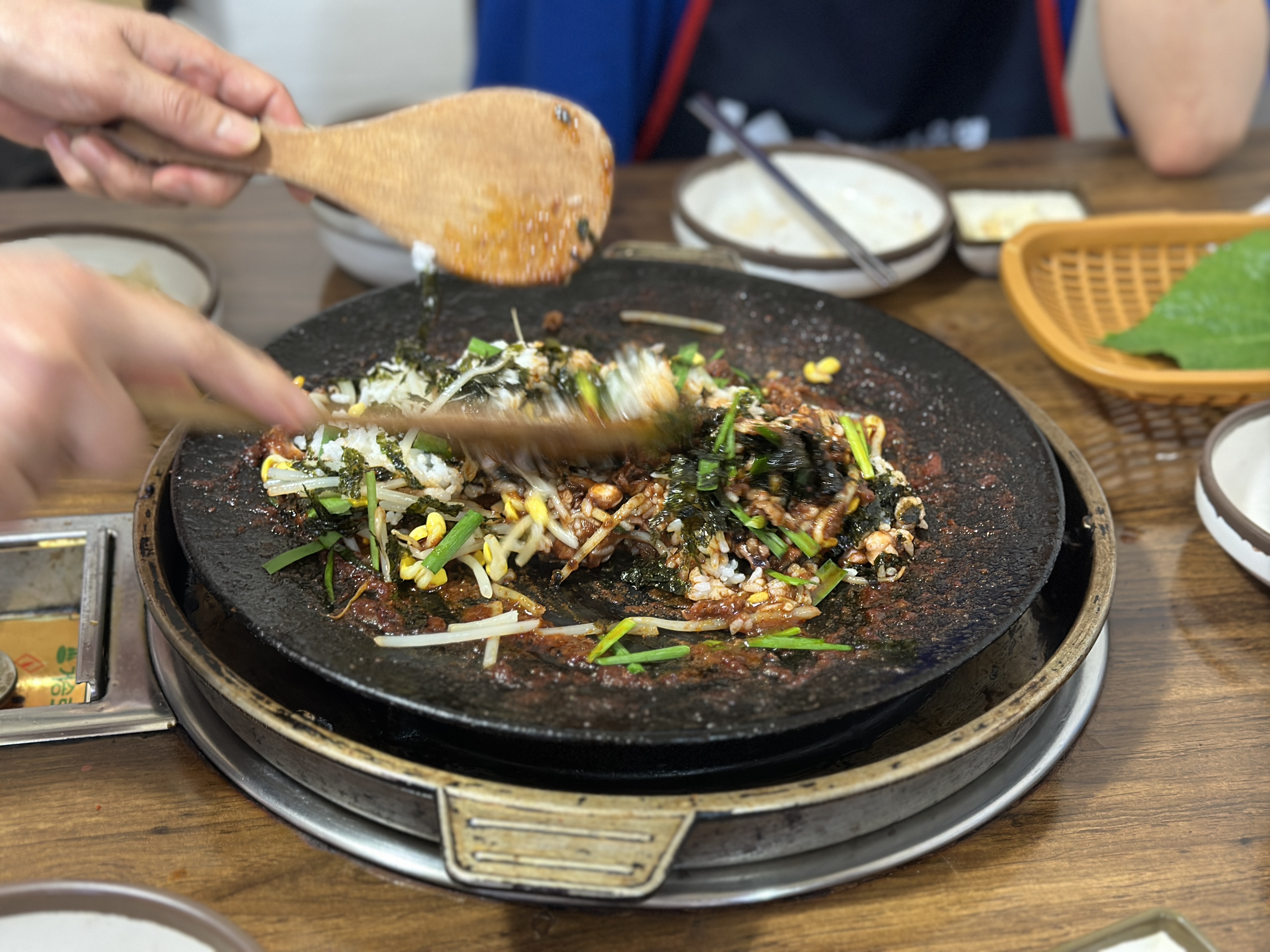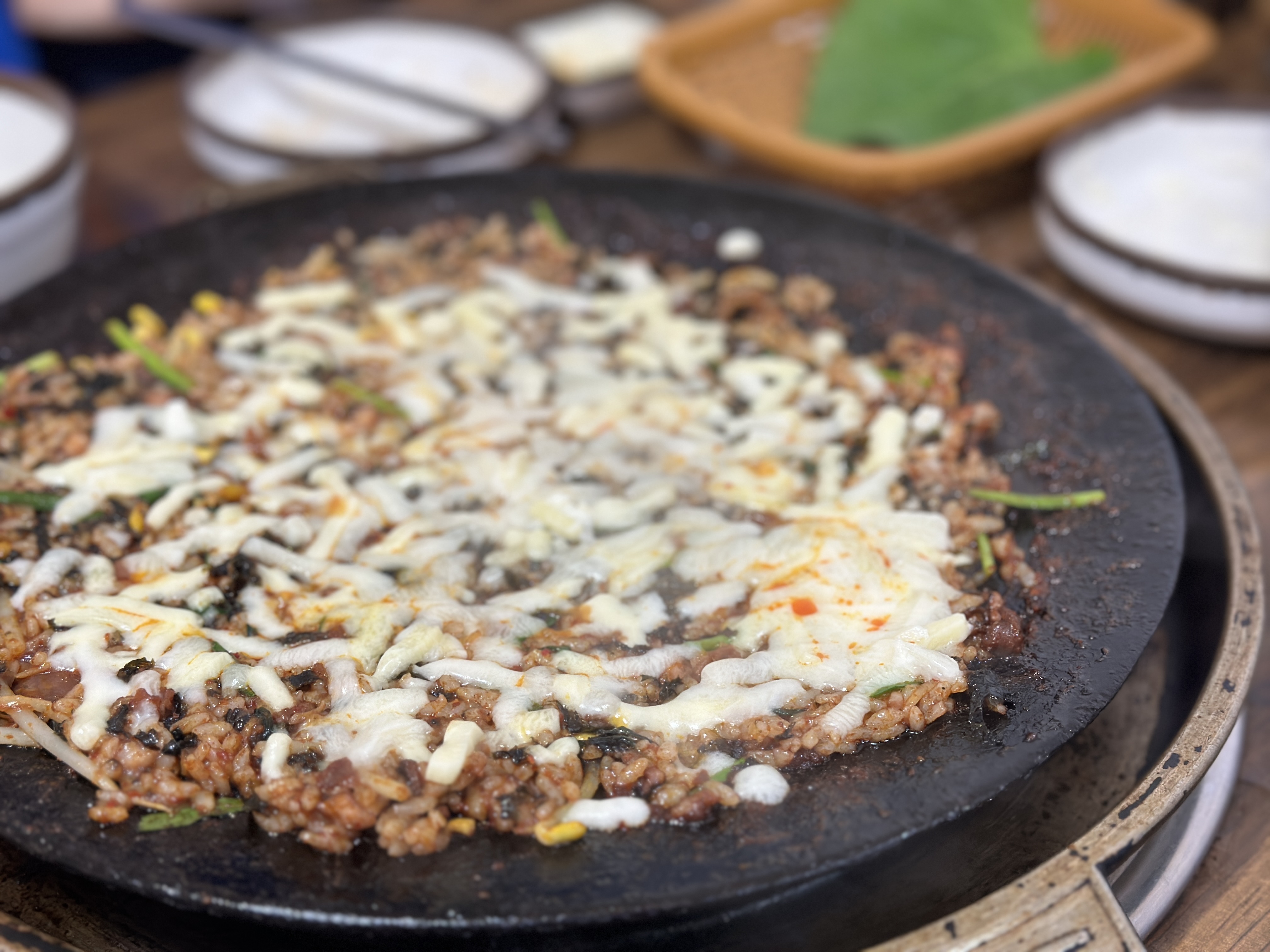 Nampo Jjukumi offers the option to add cheese to the fried rice, which most people choose. It was a delicious way to end the meal.
