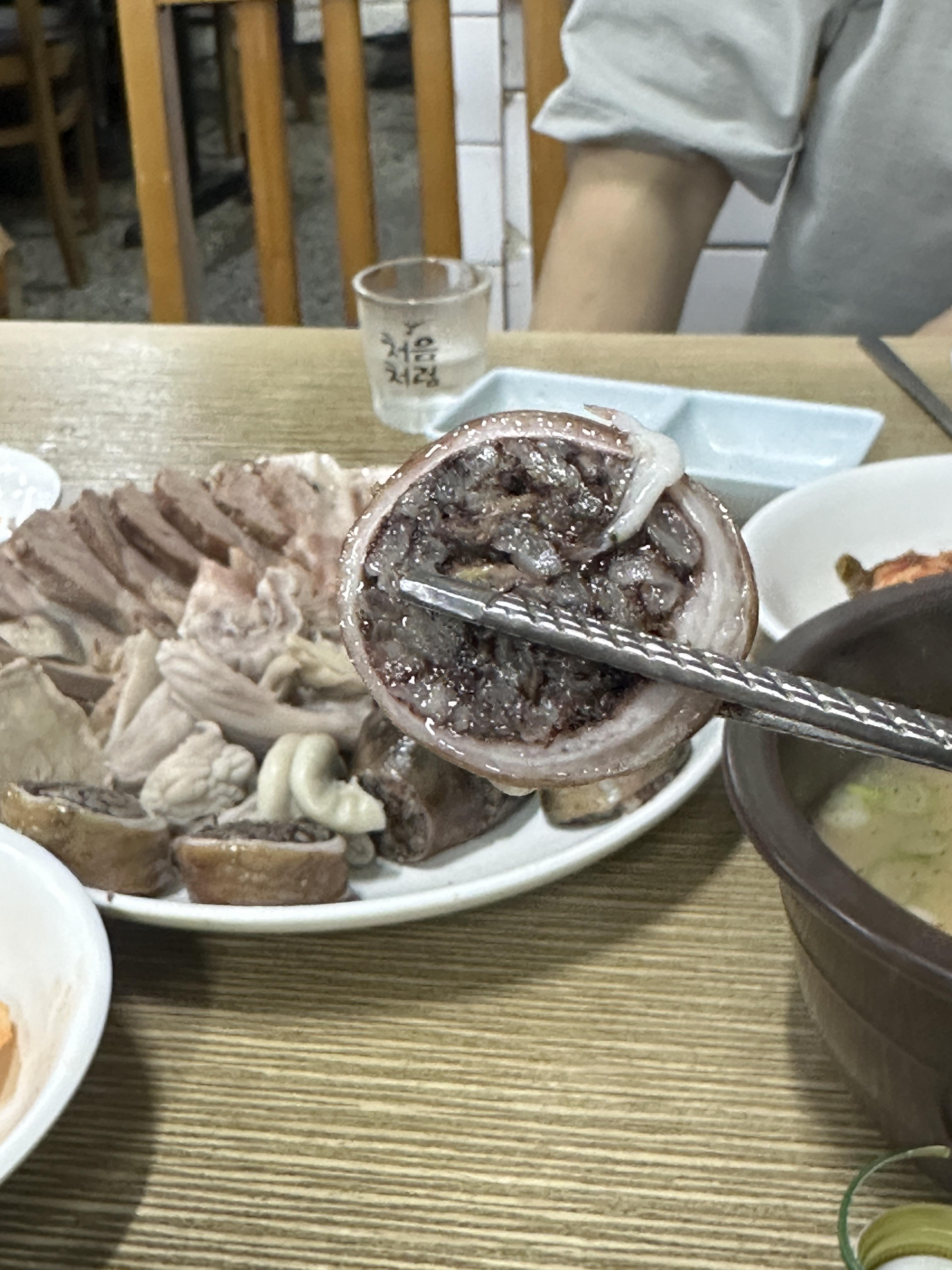 요녀석이 메인입니다. 대창순대. ㅋㅋㅋ 껍질역할을 하는 도톰한 대창 식감이 너무 좋습니다. 새우젓 하나를 올려서 먹습니다. 여전히 맛있습니다.