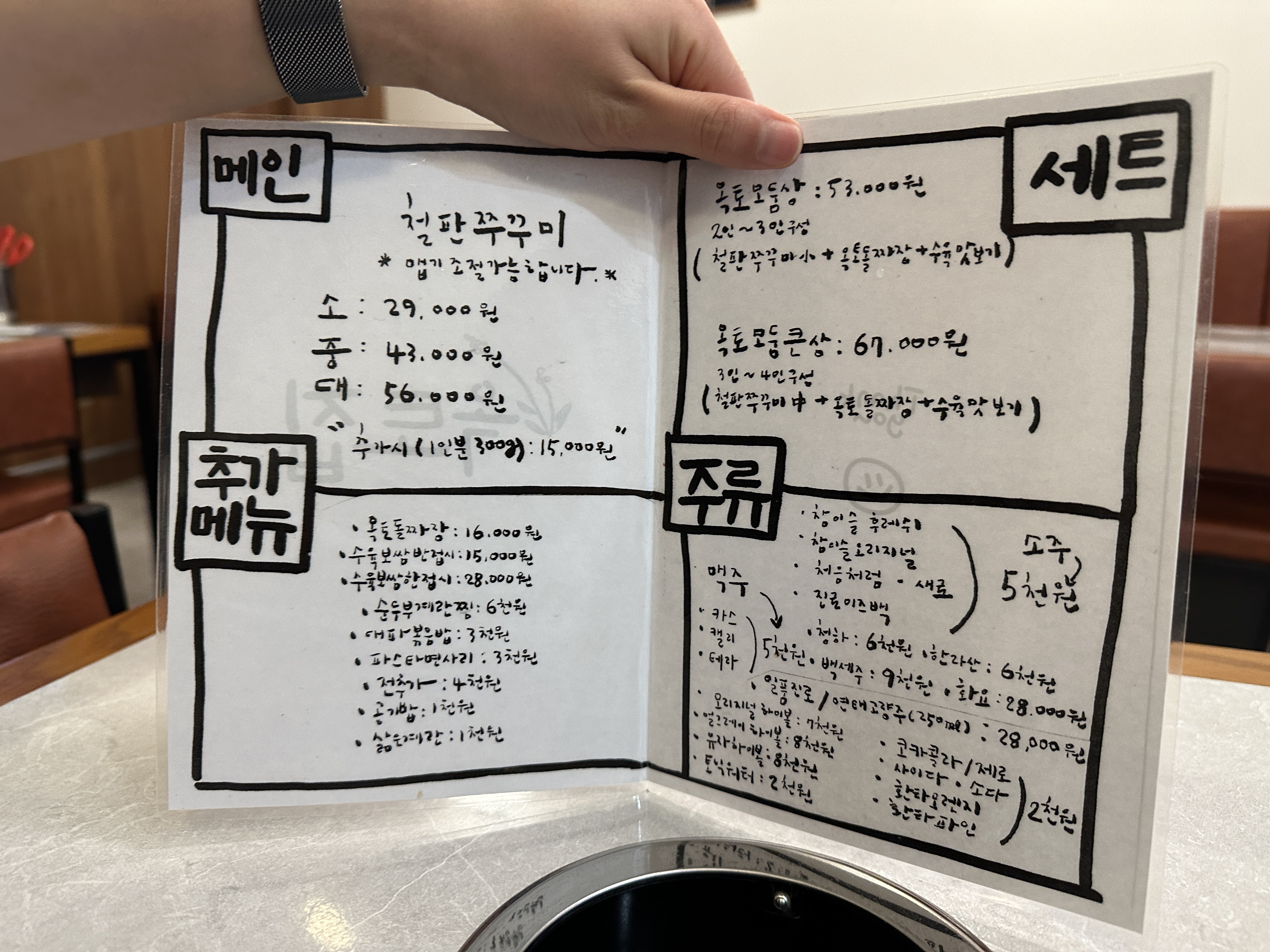 4. 옥수역 쭈꾸미 전문점 옥토집 메뉴판 및 기본 세팅