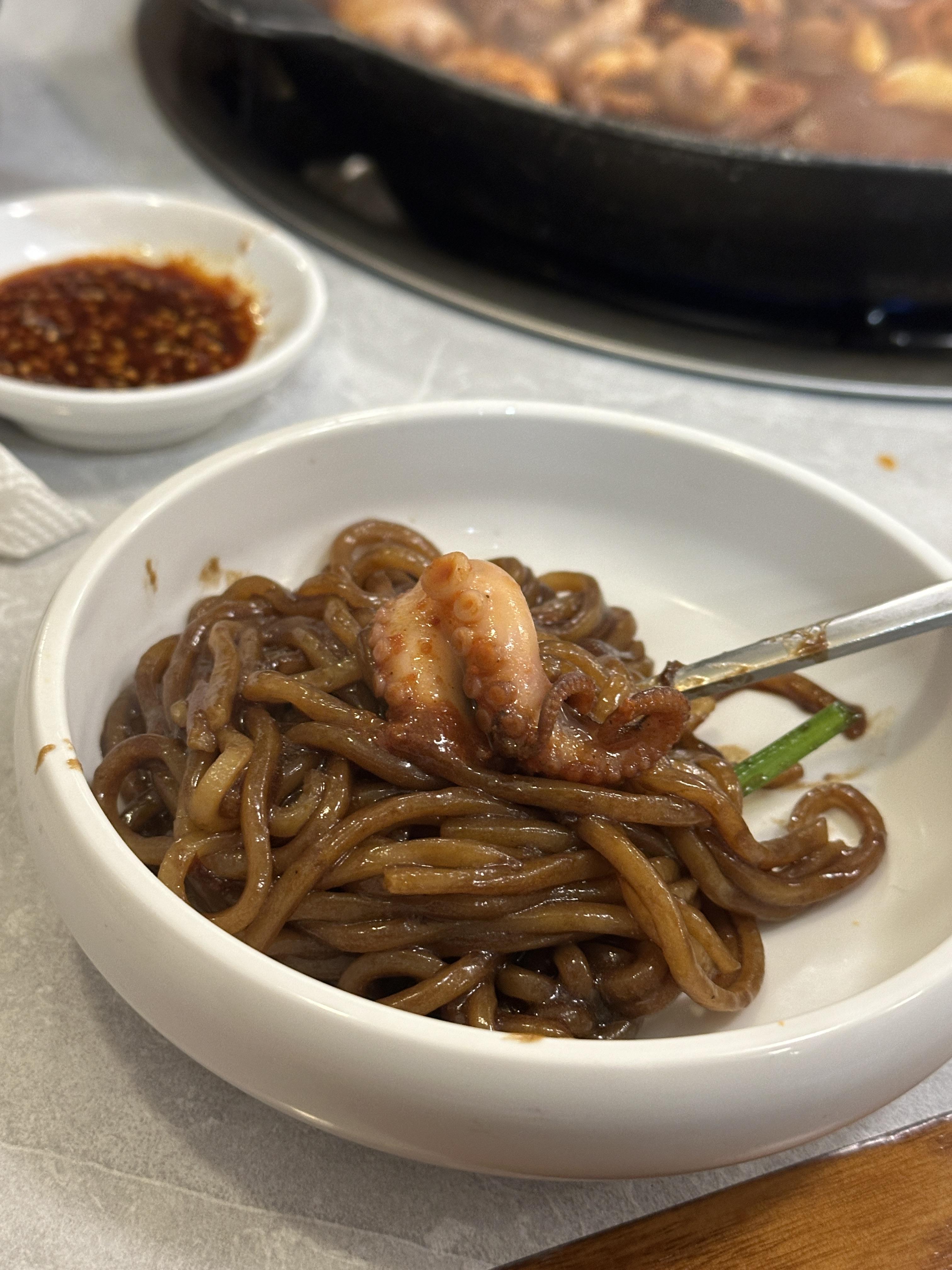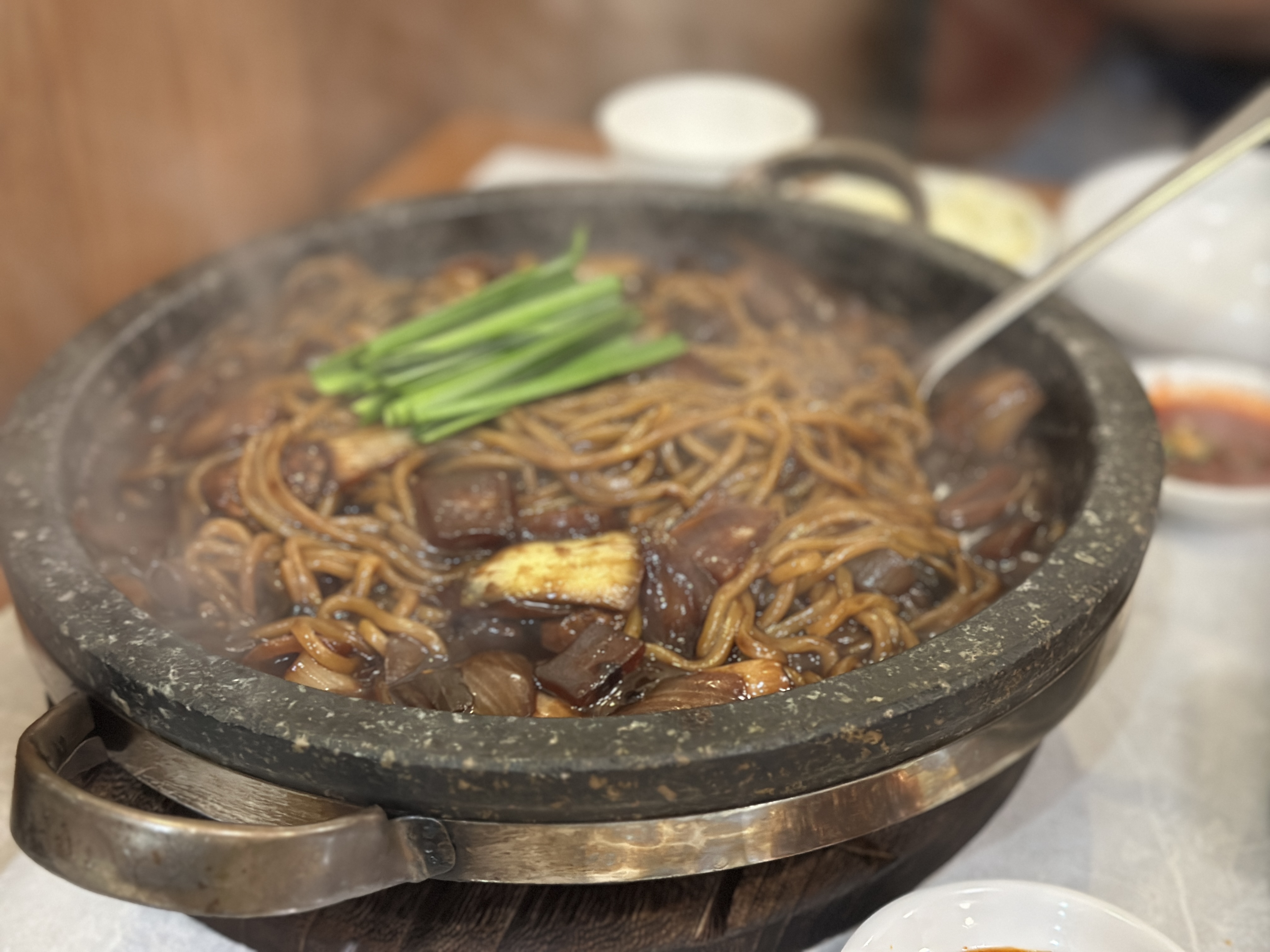 옥수역 쭈꾸미 전문점 옥토집의 돌짜장입니다. 자신있게 사장님께서 꺼내오신 짜장면은 그야말로 뜨거웠습니다. ㅋㅋㅋ 돌판이 너무 뜨거워서 빨리 먹어야 한다고 하시더라구요. ㅋㅋㅋ 안그러면 면이 불고, 달라붙기 때문이죠. ㅋㅋ 어떻게 아냐구요? 제가 그랬거든요.