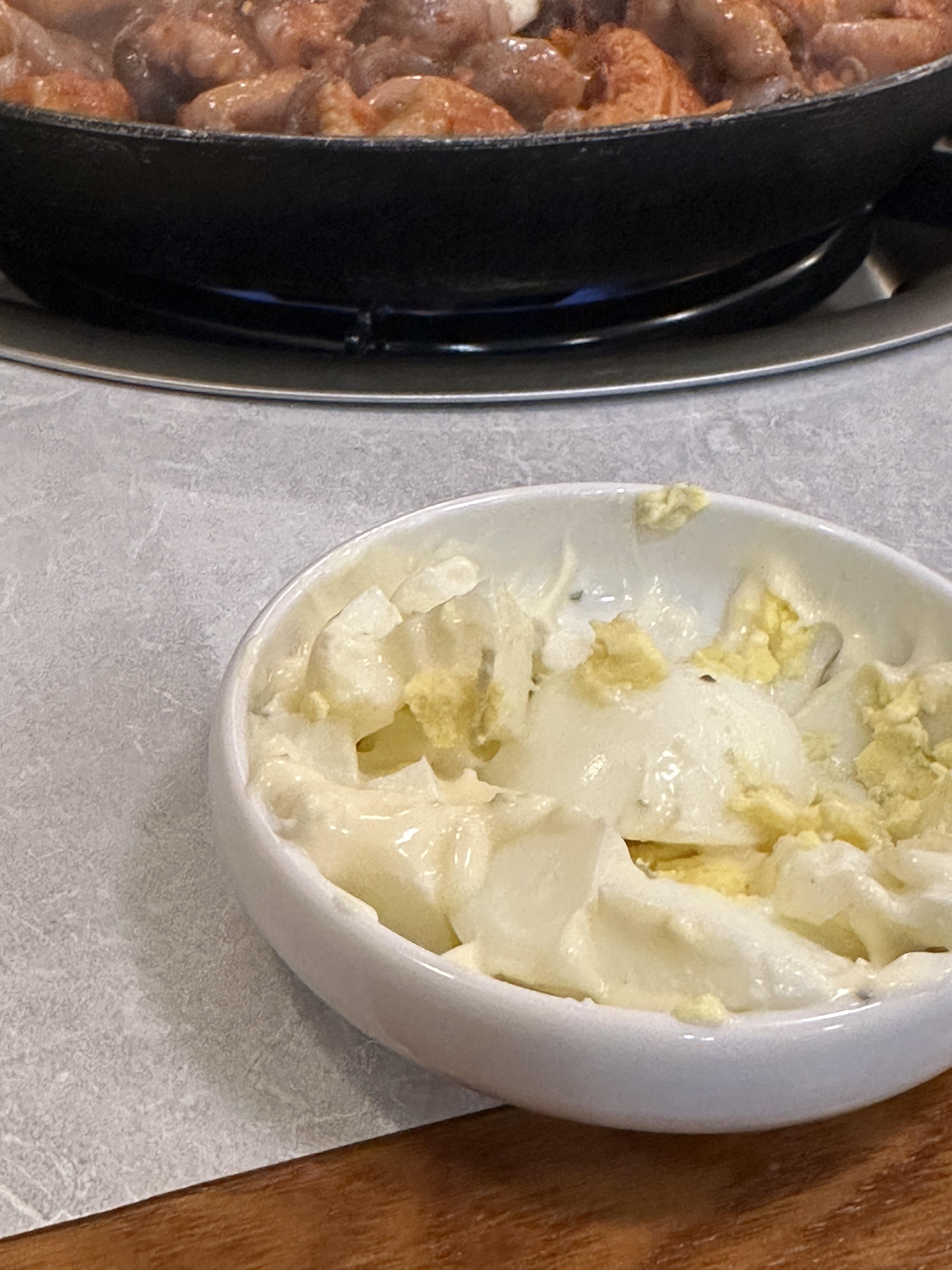 특이한 점은 마요네즈에 삶은계란을 부숴서 섞어 두라고 하시는 사장님의 말씀입니다. ㅋㅋ 귀찮긴 하지만, 하란대로 해봅니다.