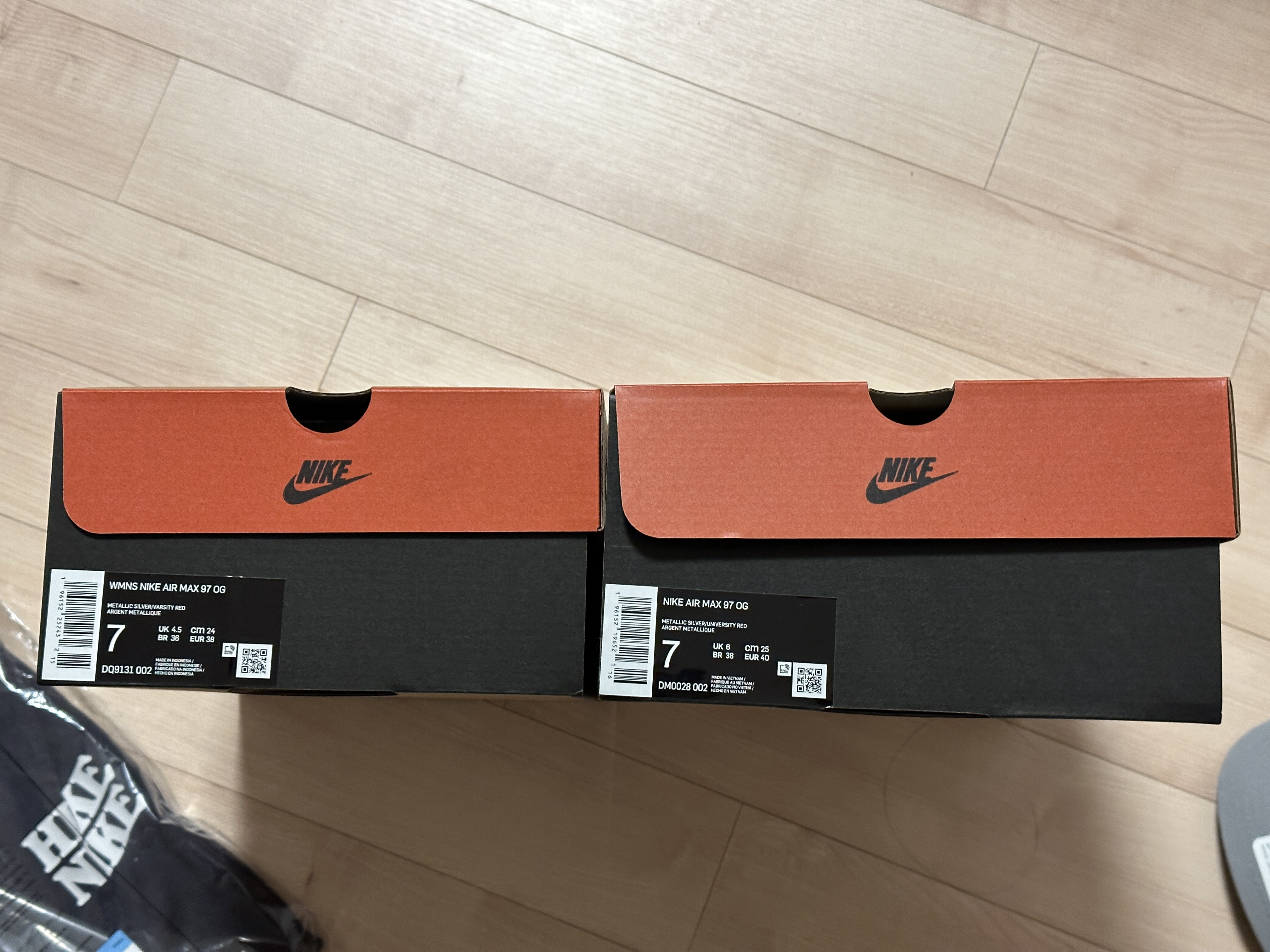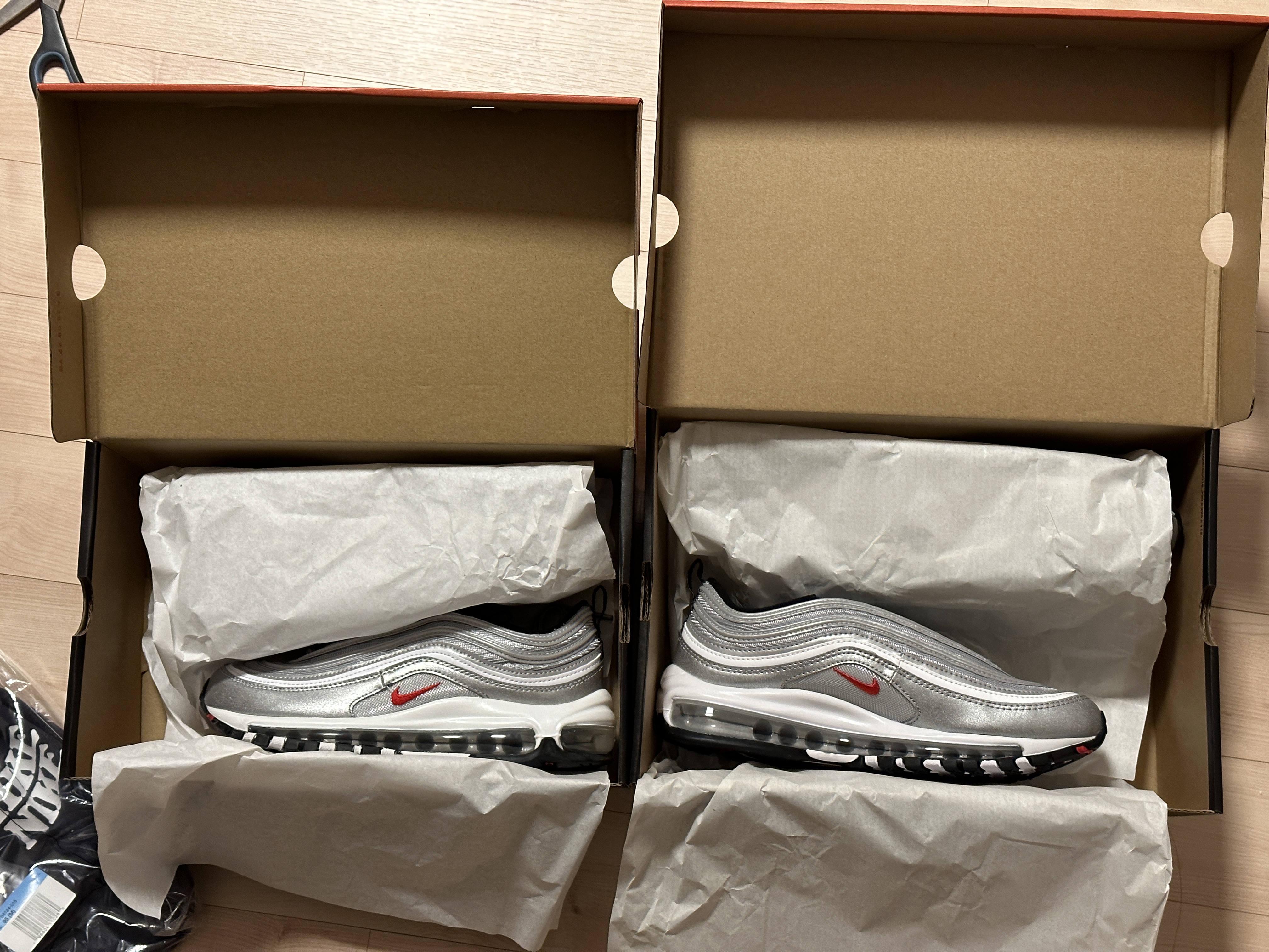 이렇게 나이키 에어맥스 97 OG 실버불렛 두 켤레를 예쁘게 개봉해 보고 사진도 남겼으니 신어보고 착화감이나 실제 느낌을 보셔야합니다.