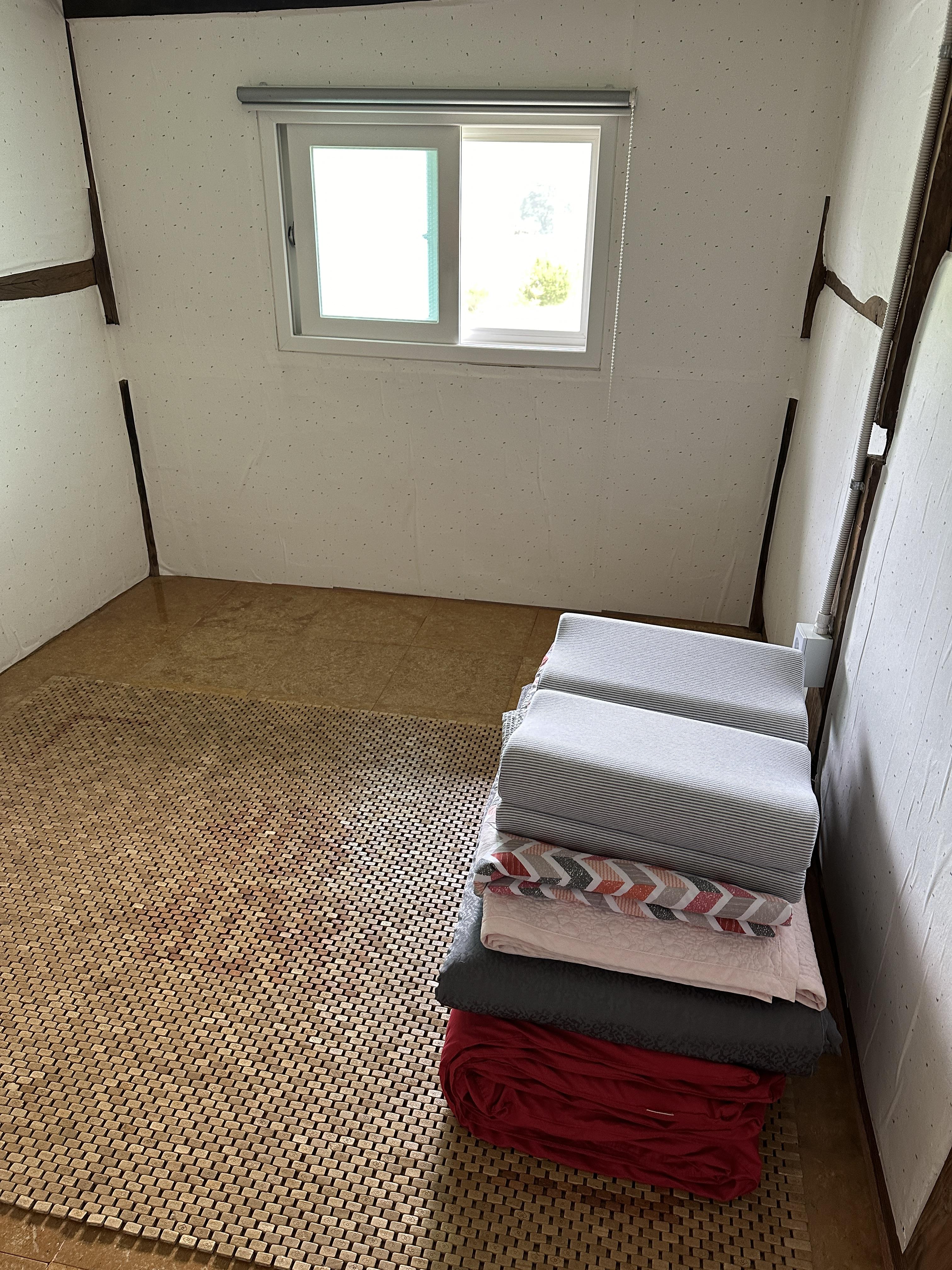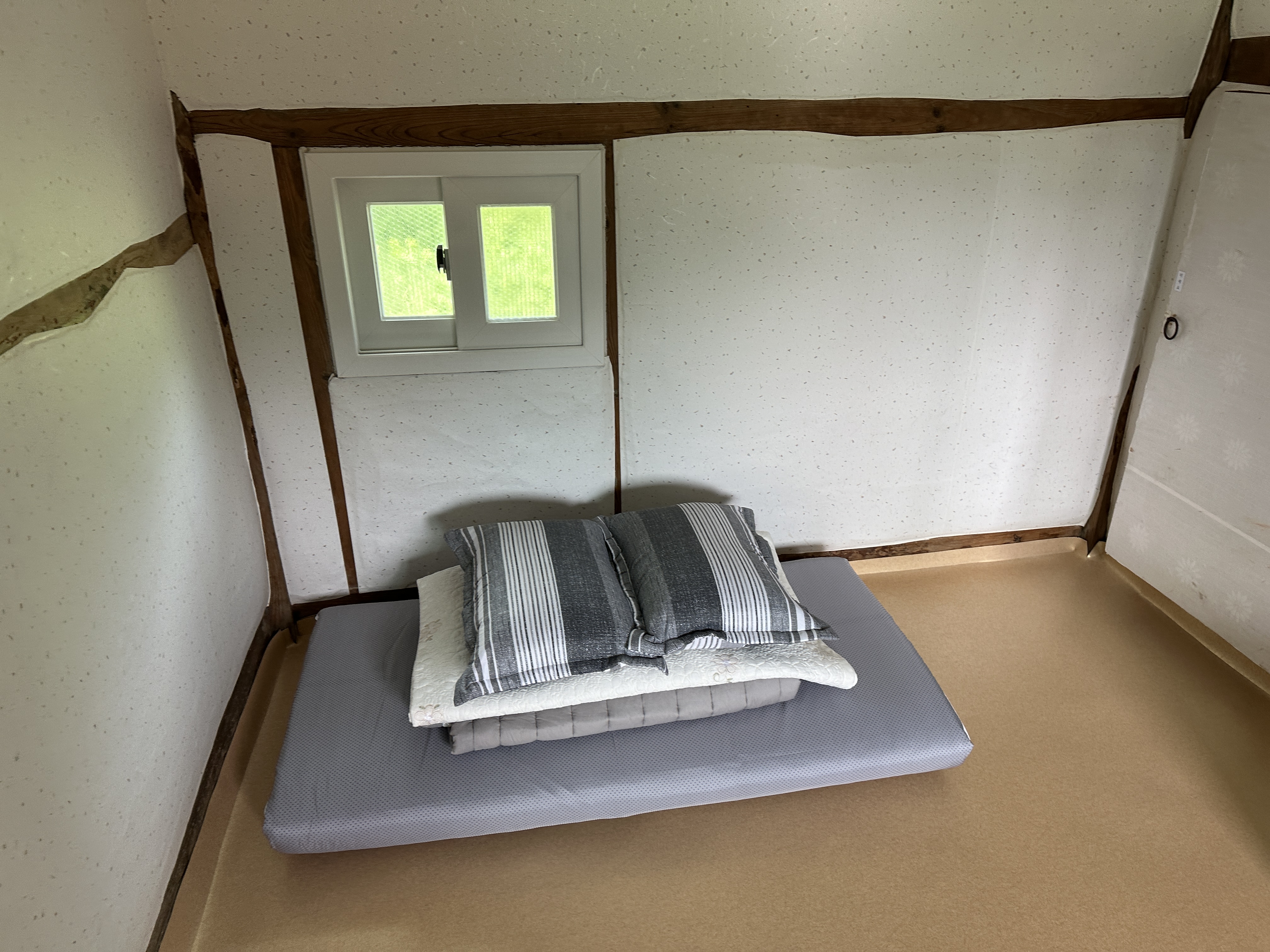 However, one downside was the lack of a curtain on the bathroom window. Haha. Also, there is a threshold in the bathroom that you might trip over if you're not careful. It’s a bit disappointing that it was designed this way.
