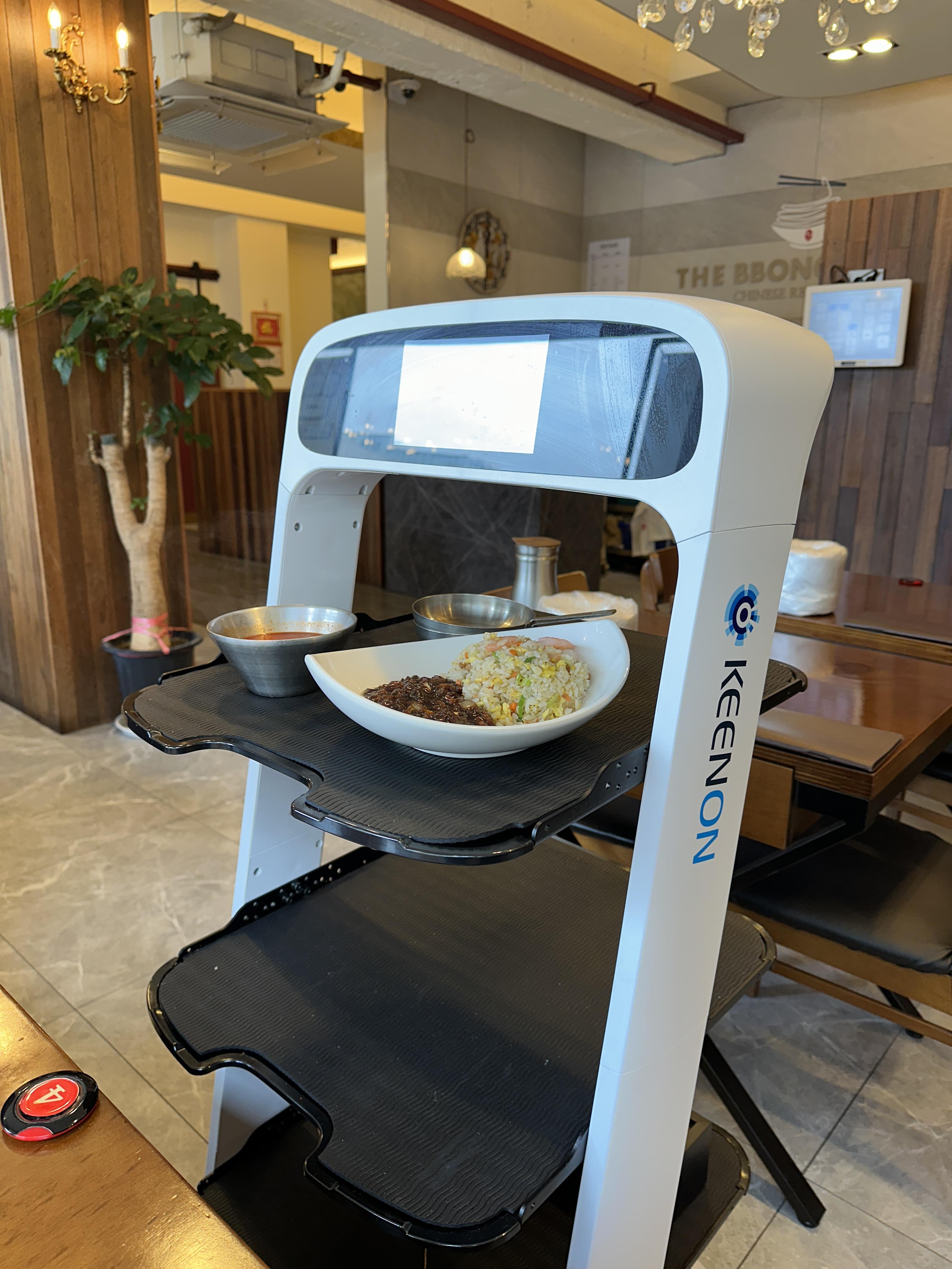 서빙을 이렇게 기계가 해줍니다. ㅋㅋㅋ 귀엽기도 하고 이제 익숙해져서 그런지 특별하진 않지만요.