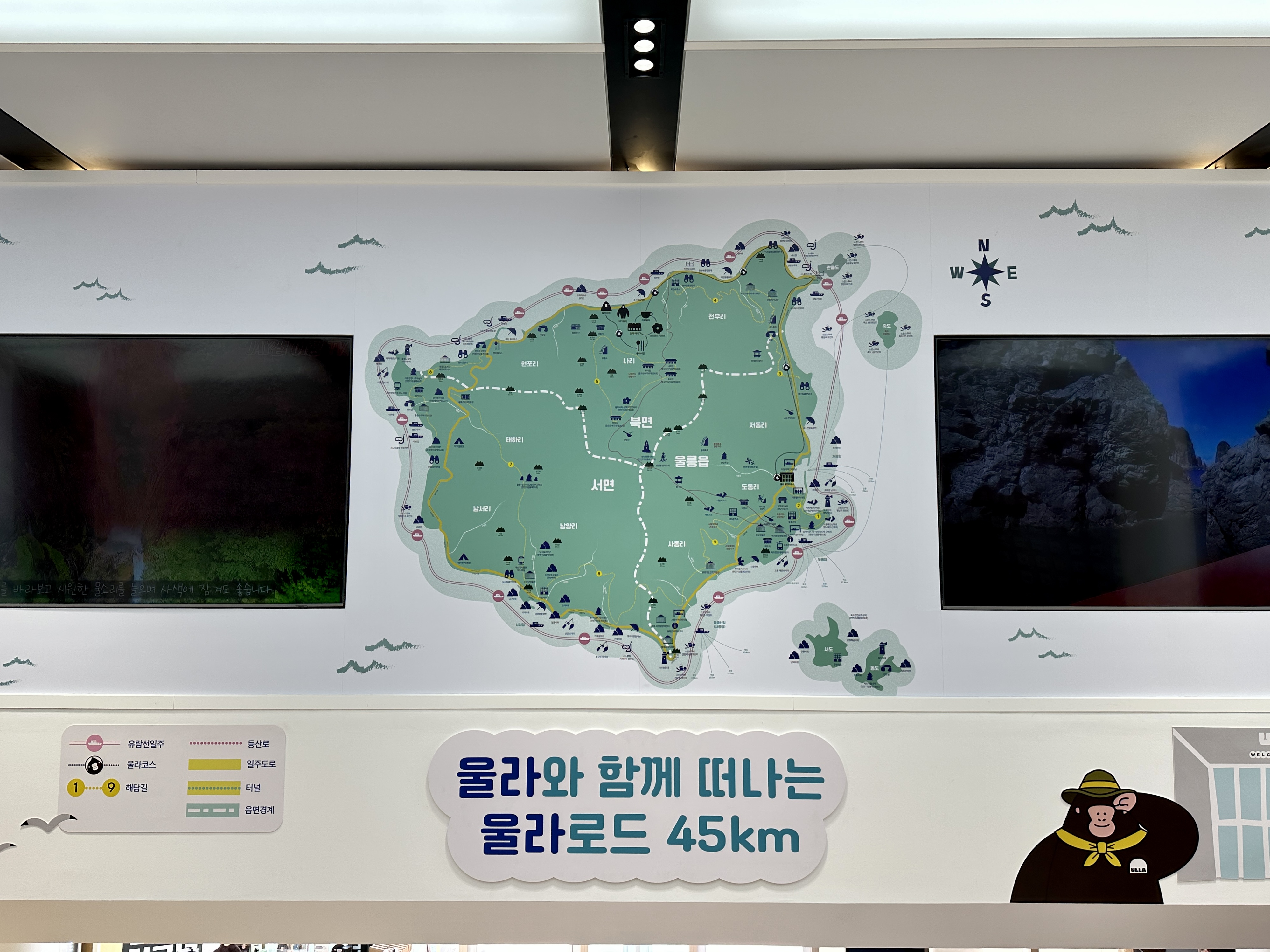 계단을 따라 올라가면 2층에 이렇게 특산물과 보라울라?를 볼 수 있습니다. 아이들이 사진 찍기 참 좋아하겠어요 ㅋㅋ 울라를 보니 (왜 고릴라가 울릉도에 등장했는지는 모르겠지만...) 지역에서 관광상품을 만드는게 꽤나 의미가 있겠다 싶었습니다. 이런 시설들도 없는 여행지들이 엄청 많아요... ㅎㅎ 굳굳!