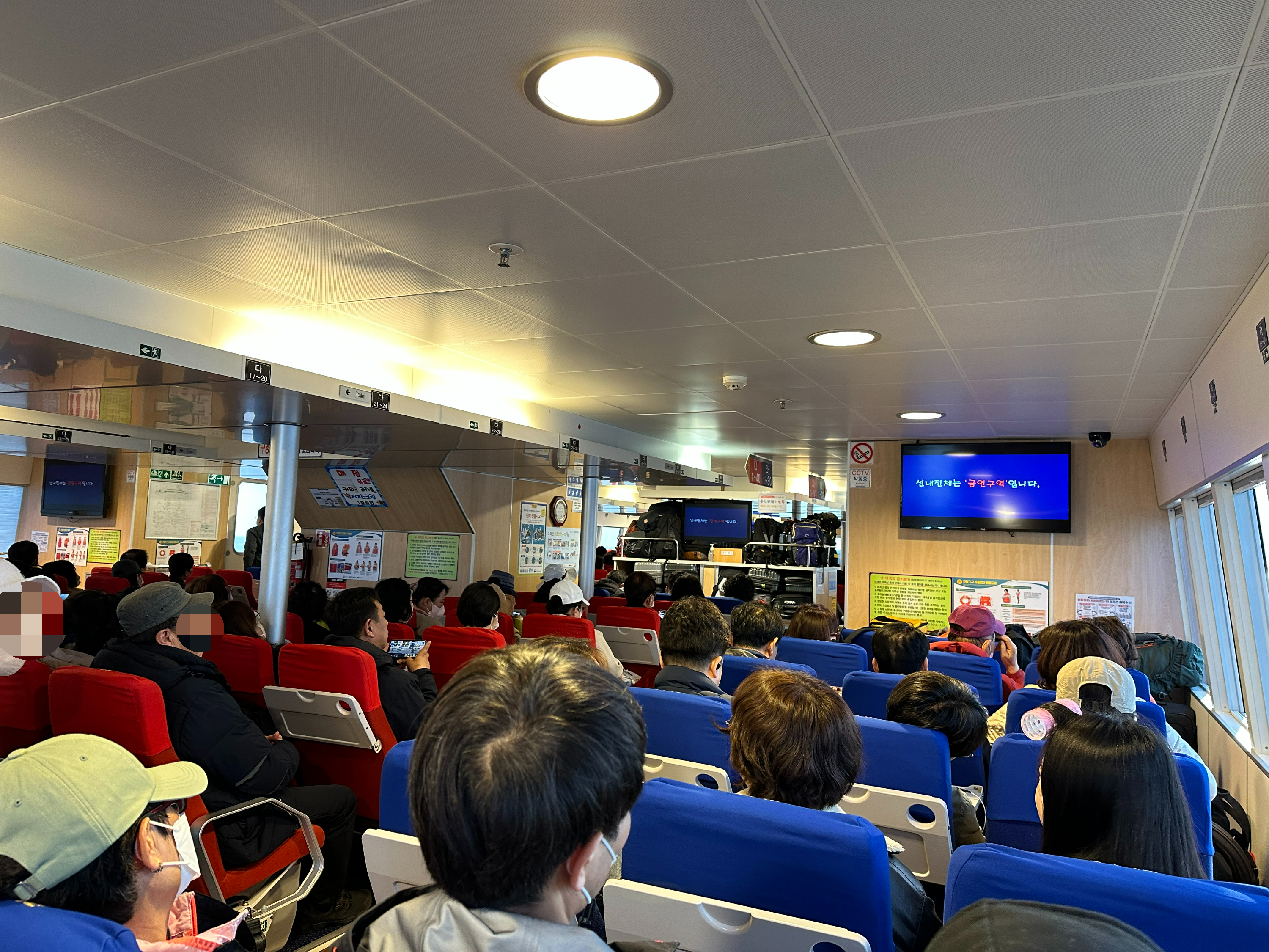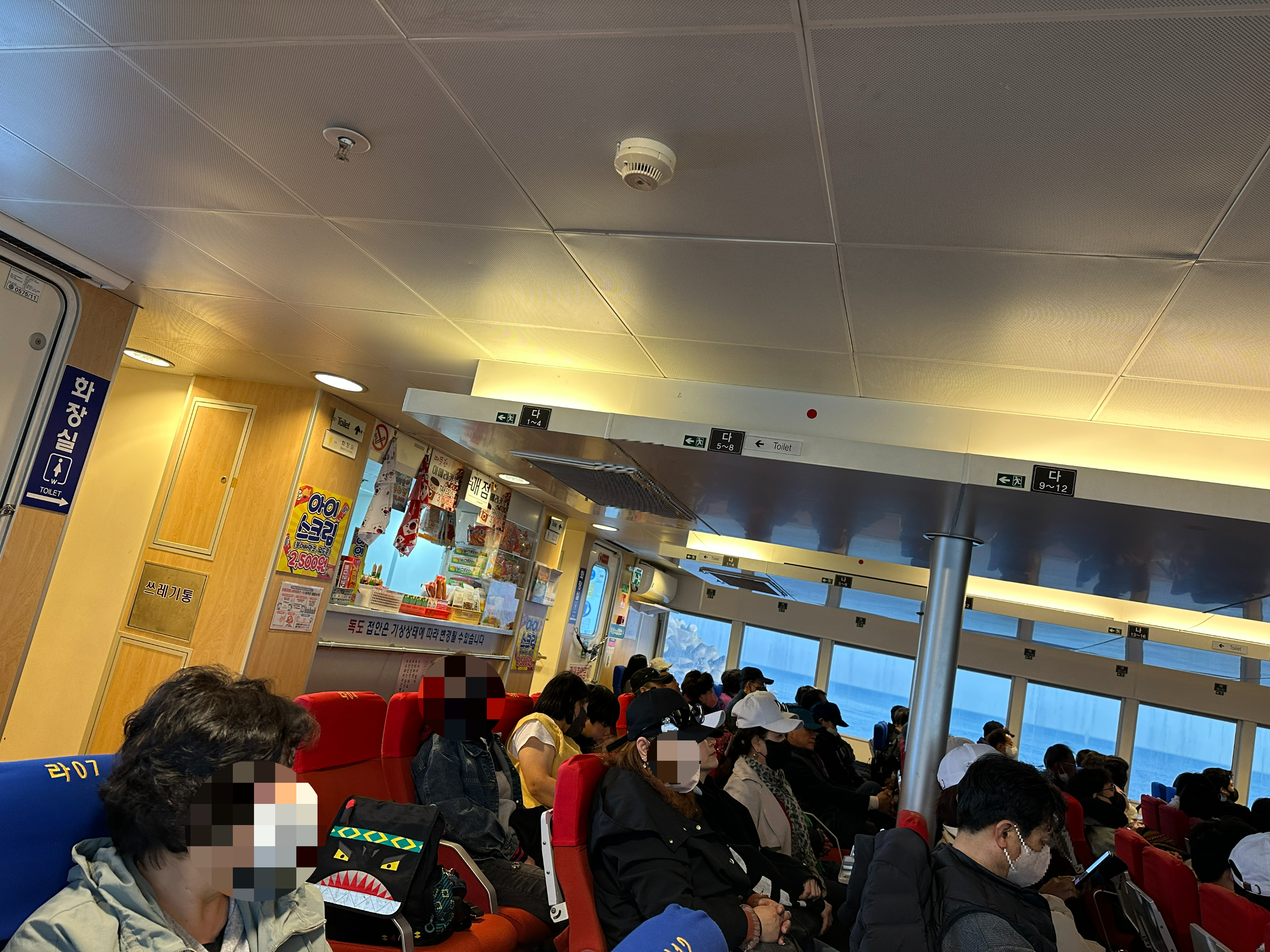 배에 탑승하는데, 매표소에서 티켓 교환을 하고, 티켓+주민등록증으로 신원확인을 합니다. 물론 저는 마지막 승객이여서 모든 직원분들이 제 이름을 아시더라구요 ㅋㅋㅋㅋ 뫄뫄뫄씨죠?ㅋㅋㅋㅋㅋㅋ 네! 하고 달려들어갑니다.