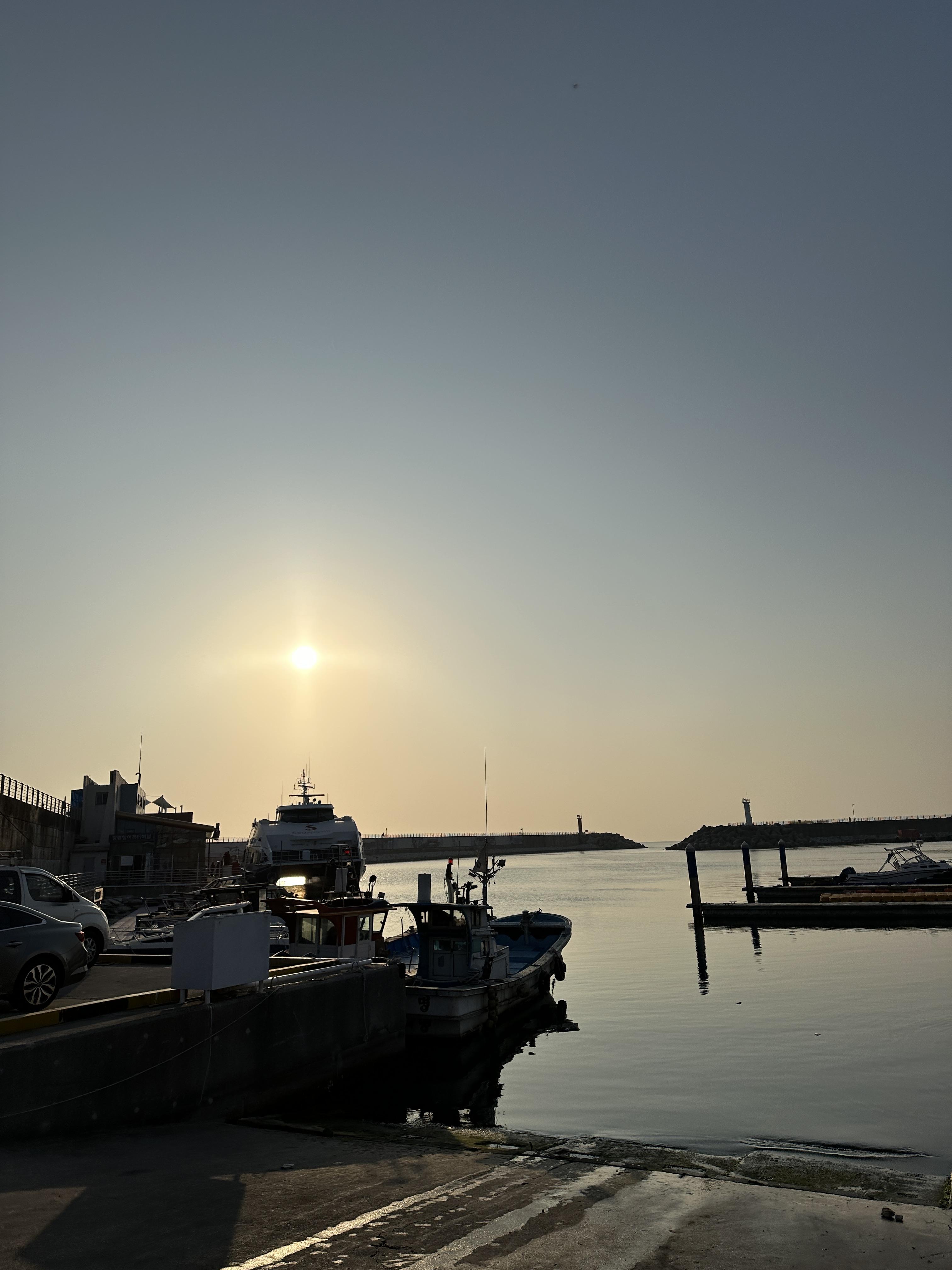아침 7:15의 강릉항은 이토록 고요합니다. 정말 고요합니다. 사진 구도를 보니 이건 차 주차하고 짐꺼내다가 찍었나봅니다.ㅋㅋㅋ 뒷트렁크가 열렸군요...