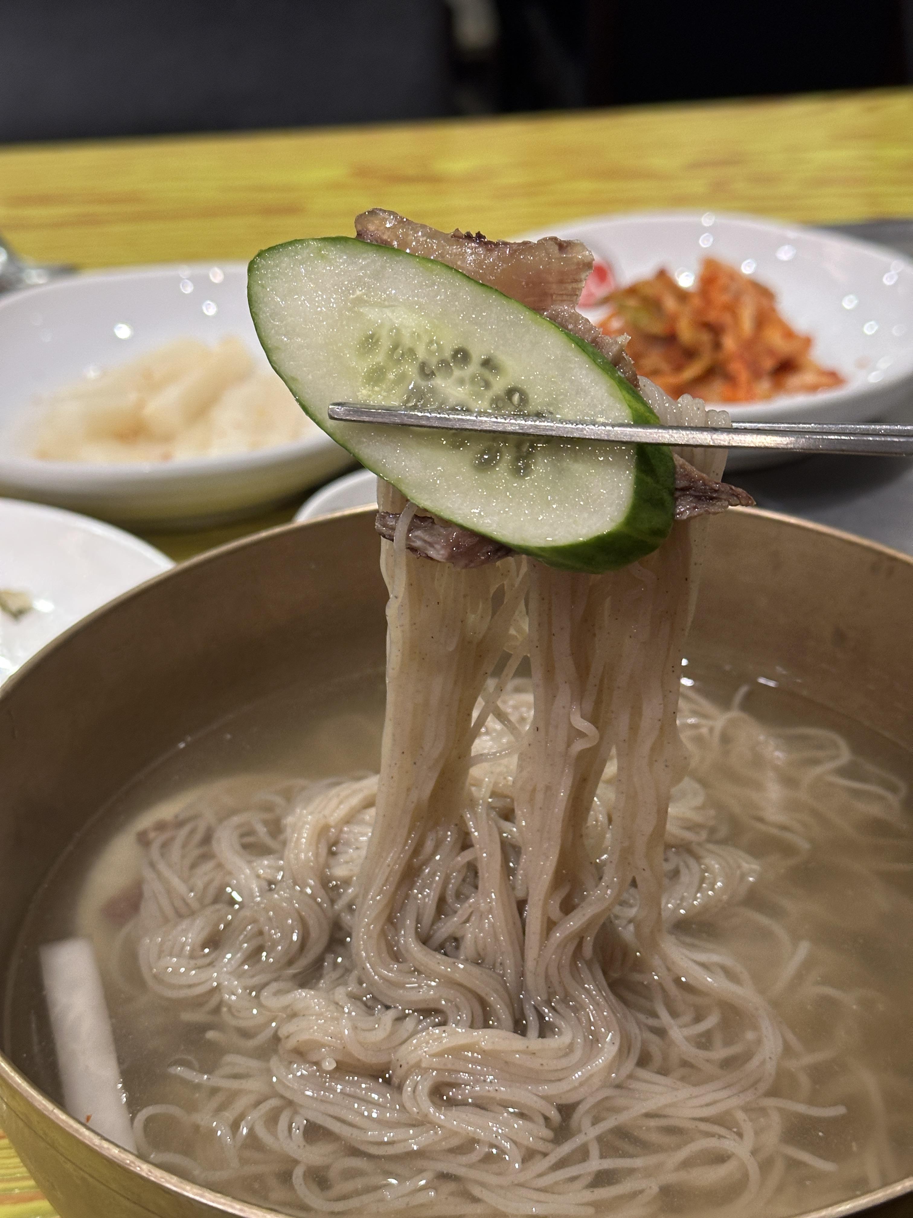 다른 평양냉면들에 비해 임팩트는 강하지 않았습니다. 평양냉면 자체의 개성은 조금 약하지만, 반대로 생각해보면 기본에 충실하다는 의미이기도 하겠죠. 다만, 일반적으로 대중들에게 알려진 느낌의 평양냉면과는 조금 결이 다릅니다. 약간의 '맛'이 있다고 할까요? 오묘한 맛이 있습니다. 독특해요ㅎㅎ