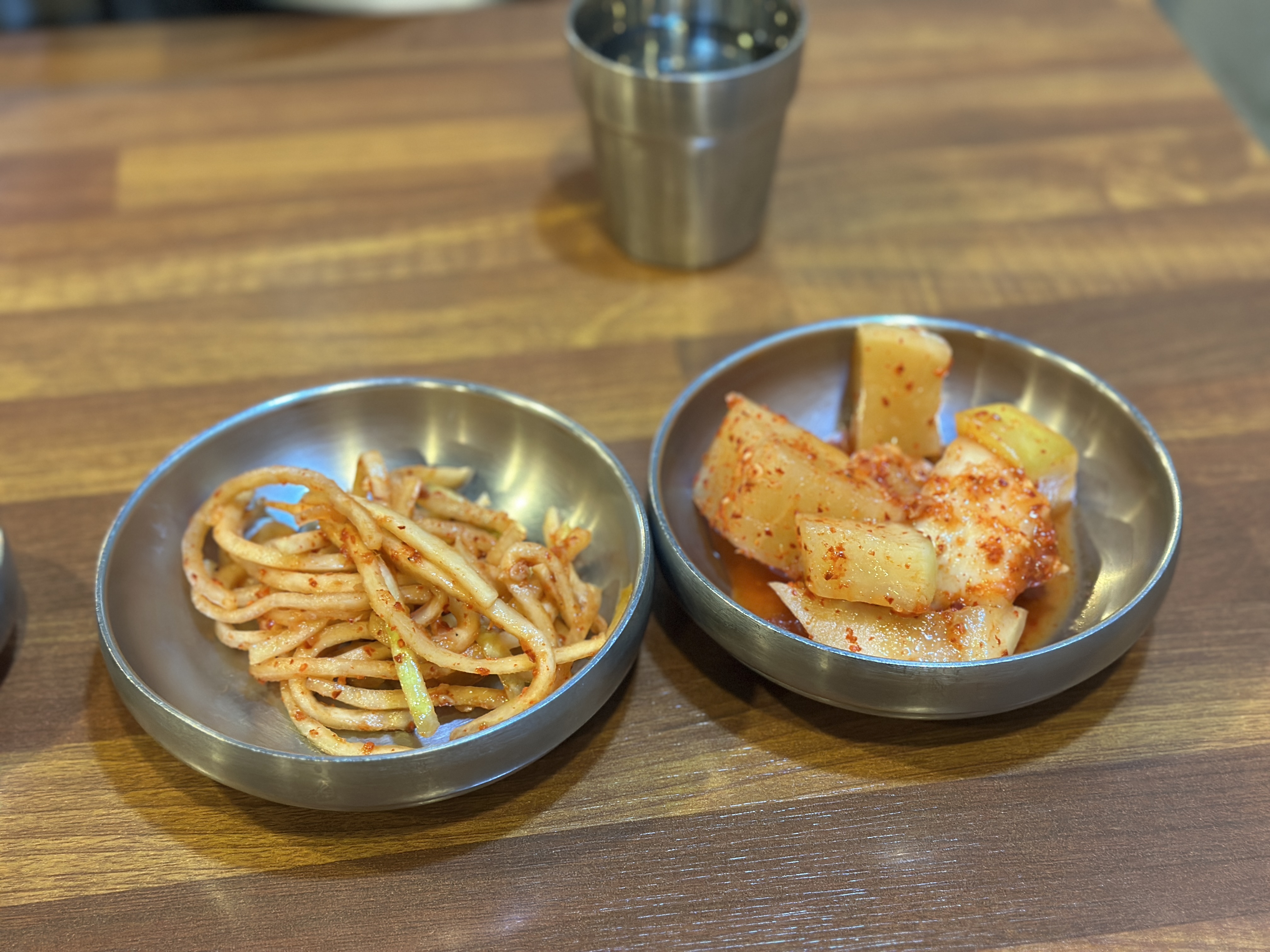 강창구 찹쌀 진순대 남부터미널점의 밑반찬입니다. 기호에 맞게 첨가하기도 하고, 반찬을 먹기도 합니다. 김치는 살짝 설익어서 씁쓸한 감이 없지않아 있었습니다.