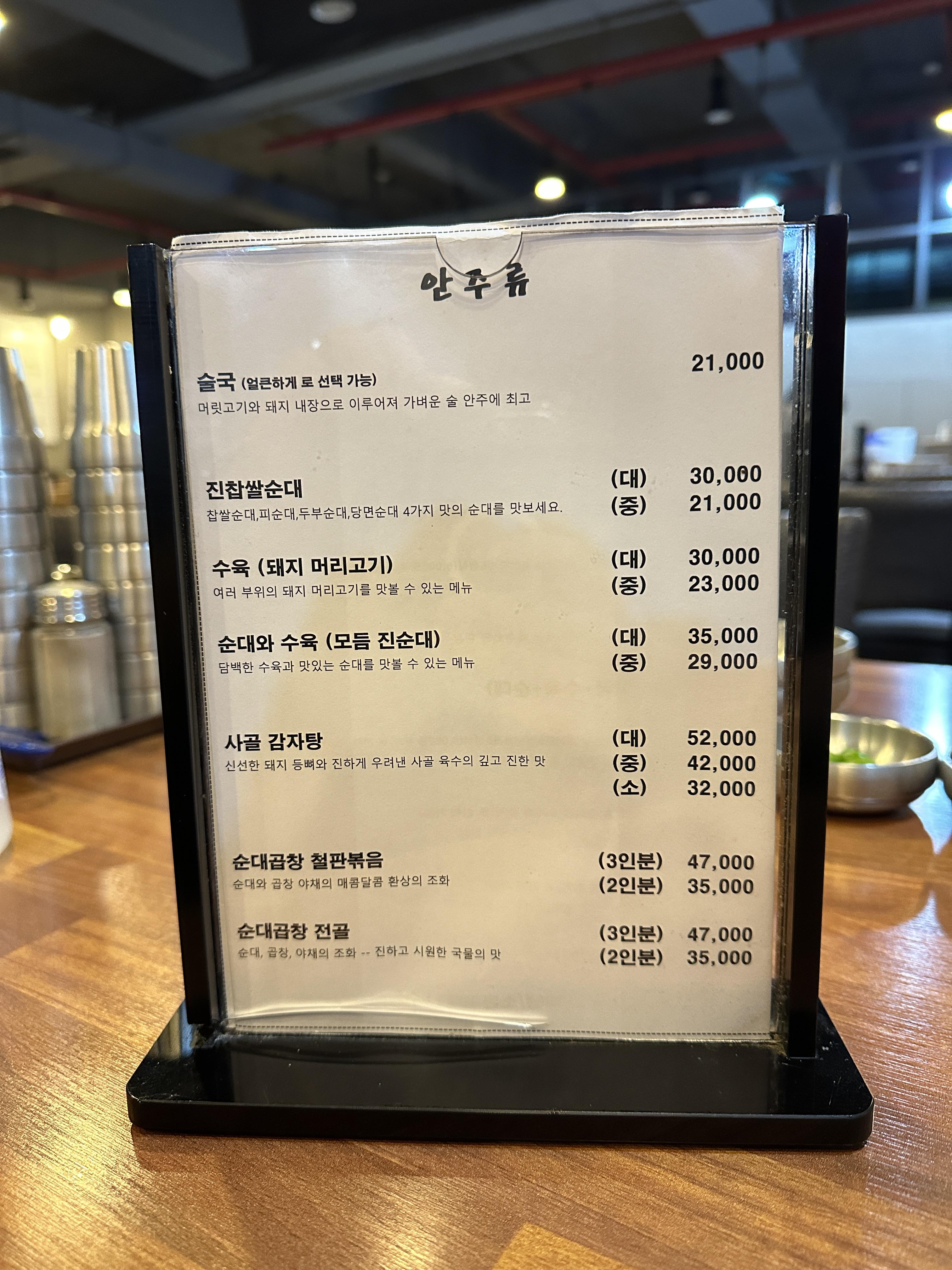 4.강창구 찹쌀 진순대 남부터미널점 메뉴 및 테이블세팅