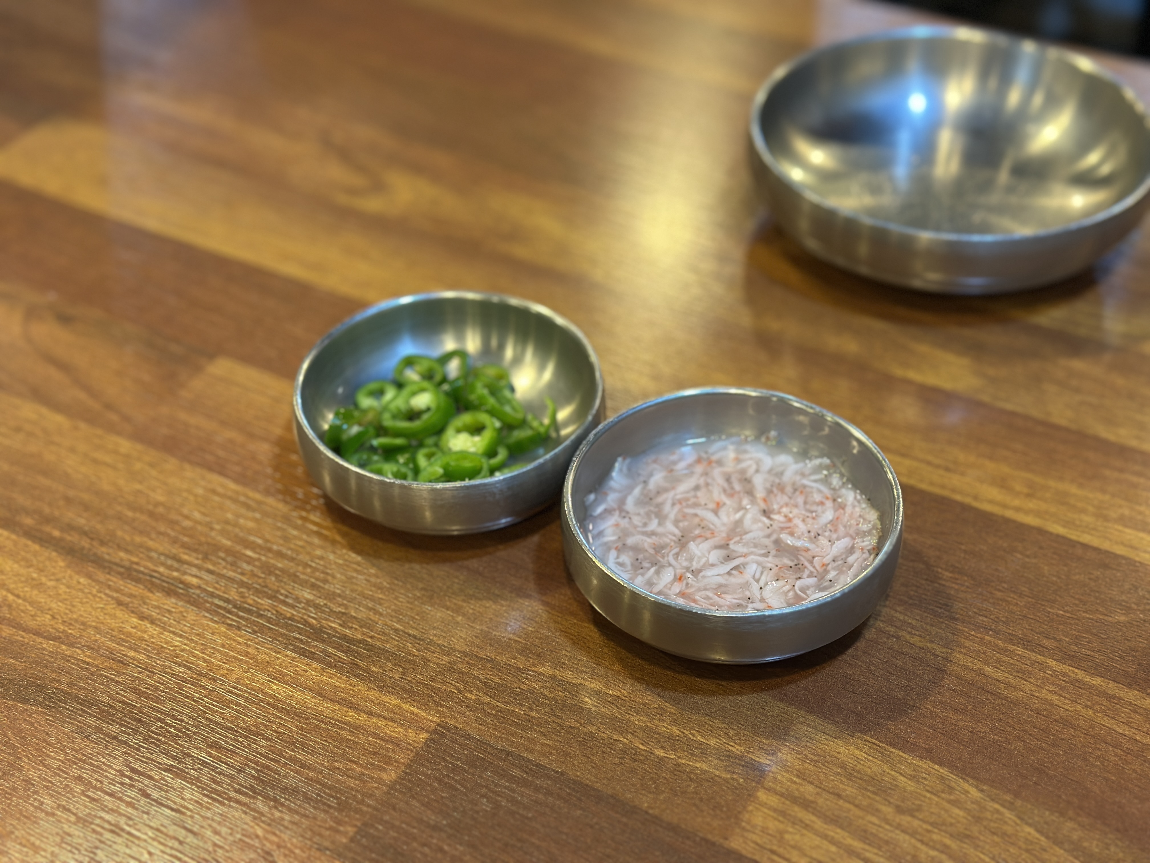 그리고 나서 새우젓과 깍두기 국물, 청양고추로 맛을 내 봅니다. 후추도 톡톡 넣어봐요.