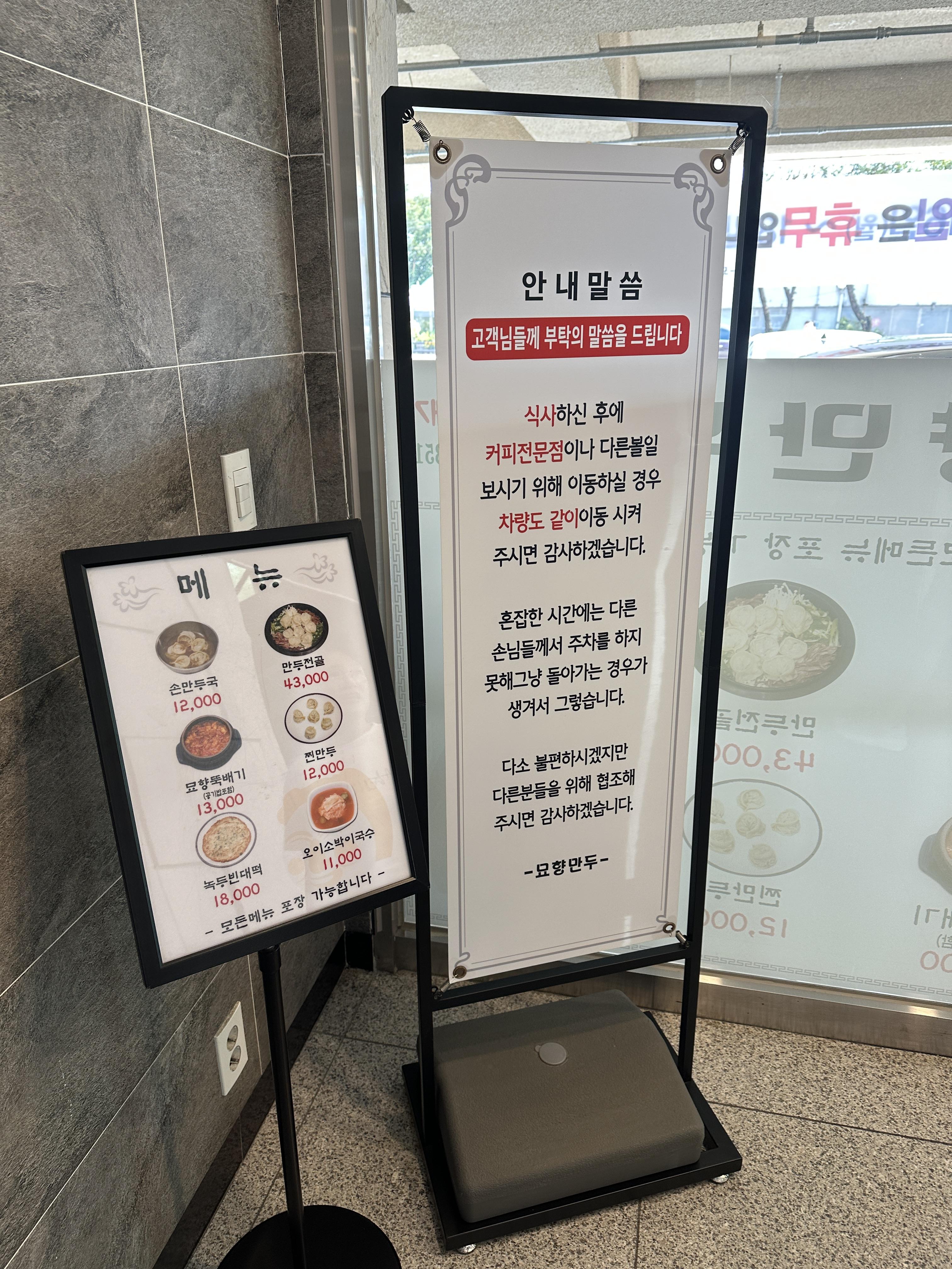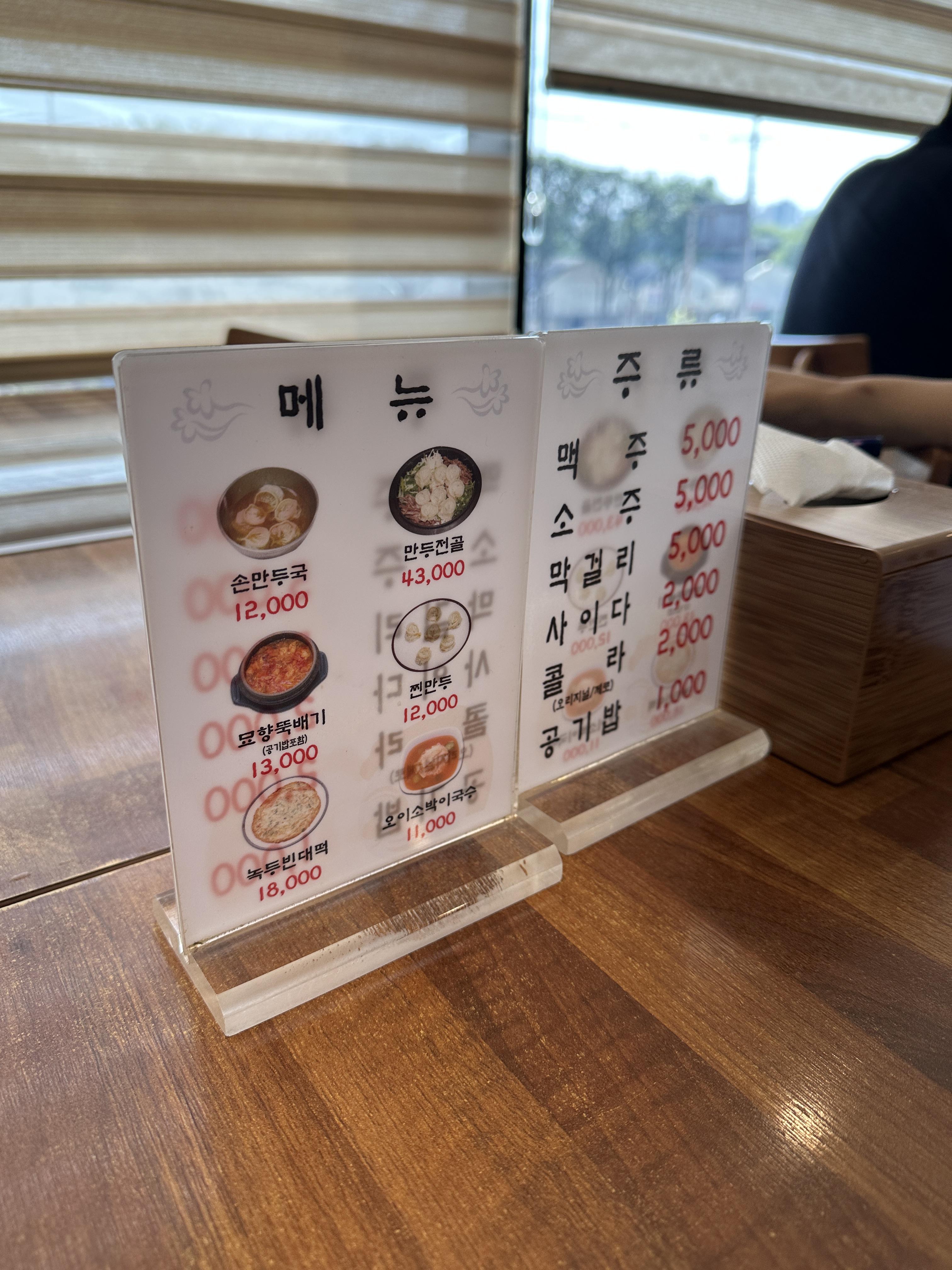 4. 이북식 만두요리 전문점 묘향만두 메뉴판 및 테이블세팅