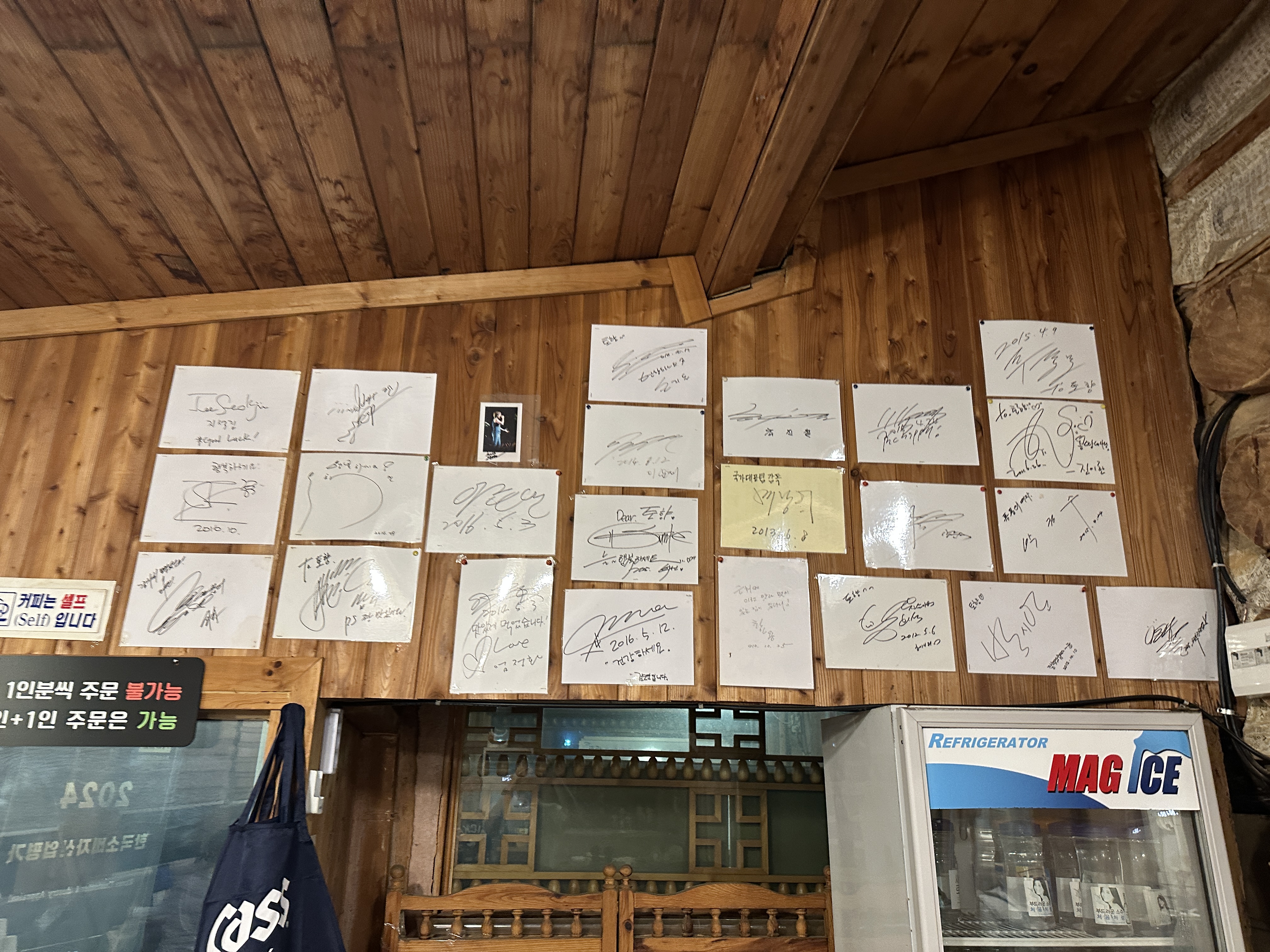 쌈밥맛집 토향의 내부 전경입니다. 온갖 연예인들이 찾아와서 싸인을 해 놓은 모습입니다. ㅋㅋㅋ 맛있나봐요. 일단 내부 좌석 배치나 전반적인 인테리어도 쌈밥집이라는 분위기와 매우 잘 어울리네요. ㅋㅋㅋ 맘에 쏙 듭니다.