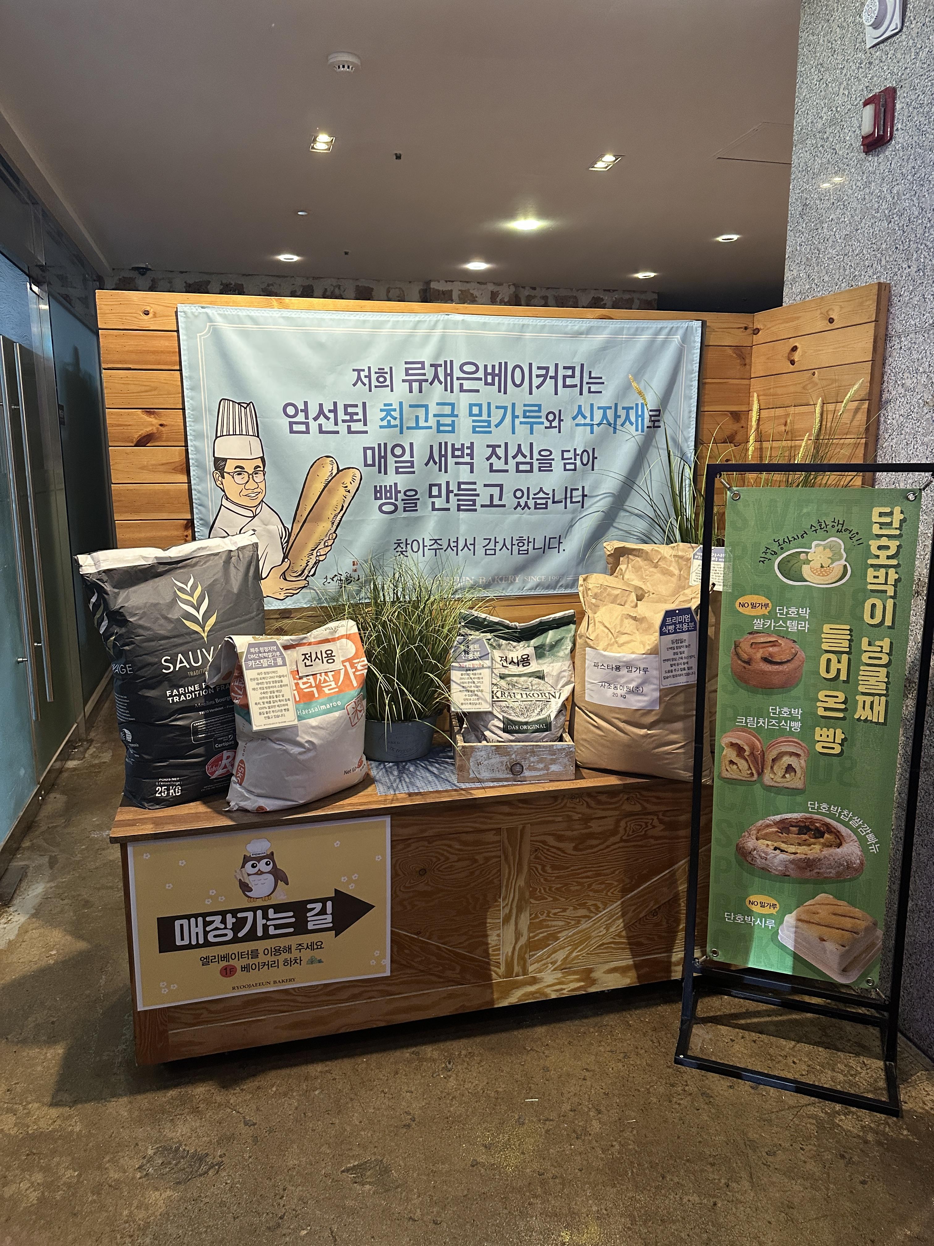 파주 헤이리마을, 마늘빵의 원조 류재은 베이커리 카페의 뒷문입구부터 뭔가 독특합니다. 이런 밀가루와 식자재를 쓰고 있다는 강력한 표현. ㅋㅋㅋㅋㅋ 처음봅니다. ㅋㅋㅋㅋㅋㅋ 띠용.