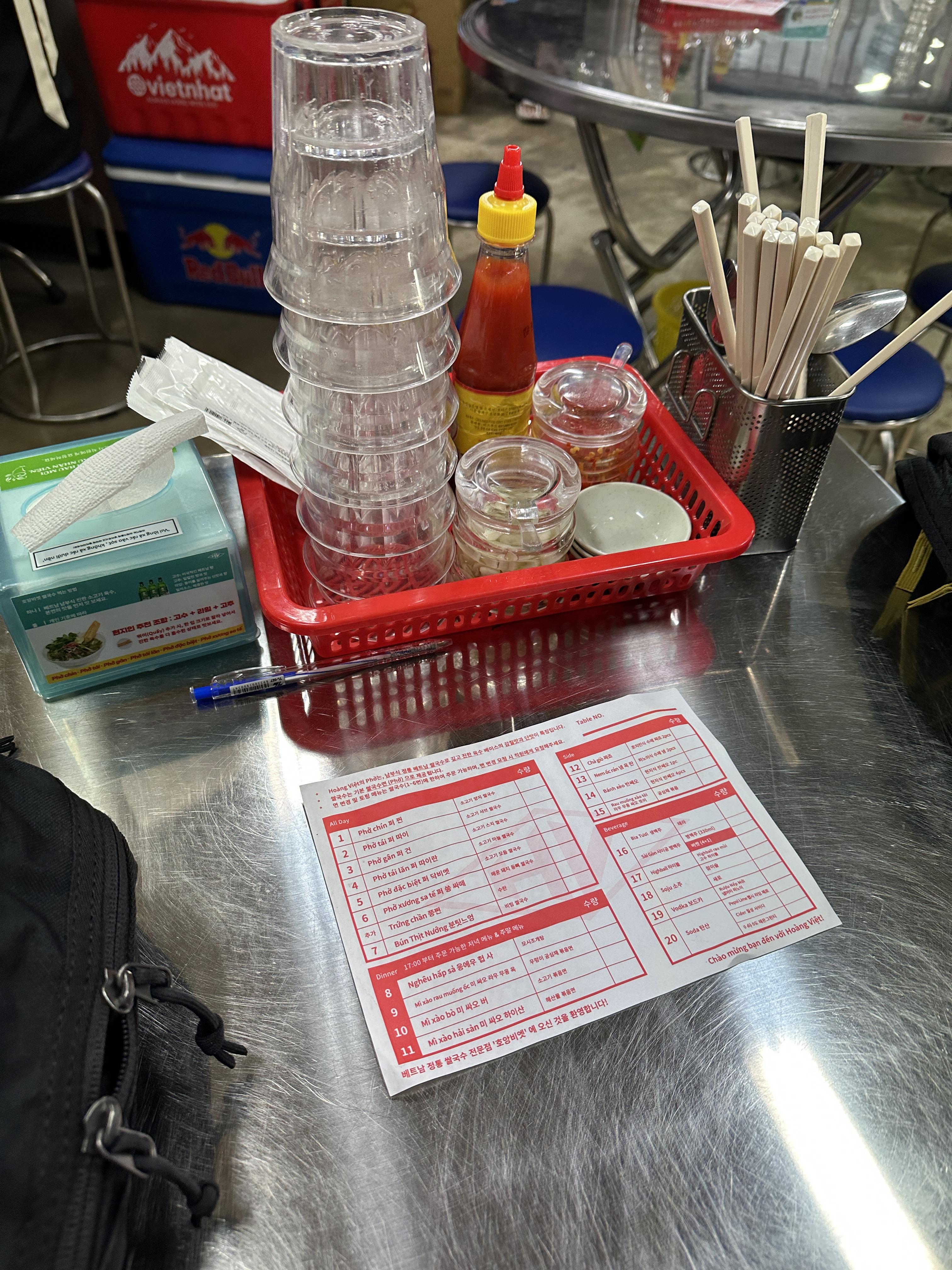 호앙비엣 서울역점에서는 주문을 이렇게 종이로 합니다. 키오스크 없이 이렇게 시키는 것도 또 나름의 재미가 있어요. ㅋㅋ