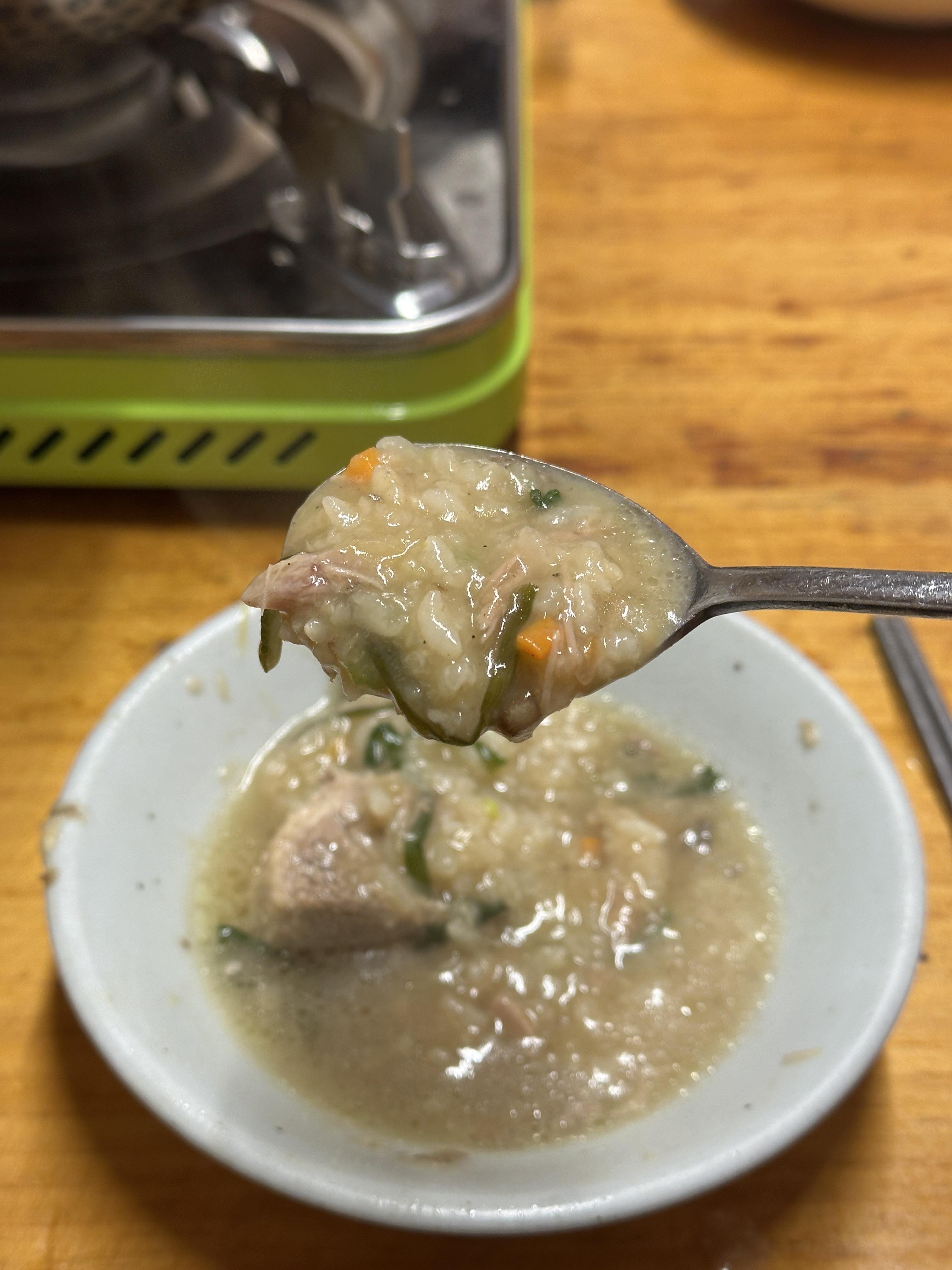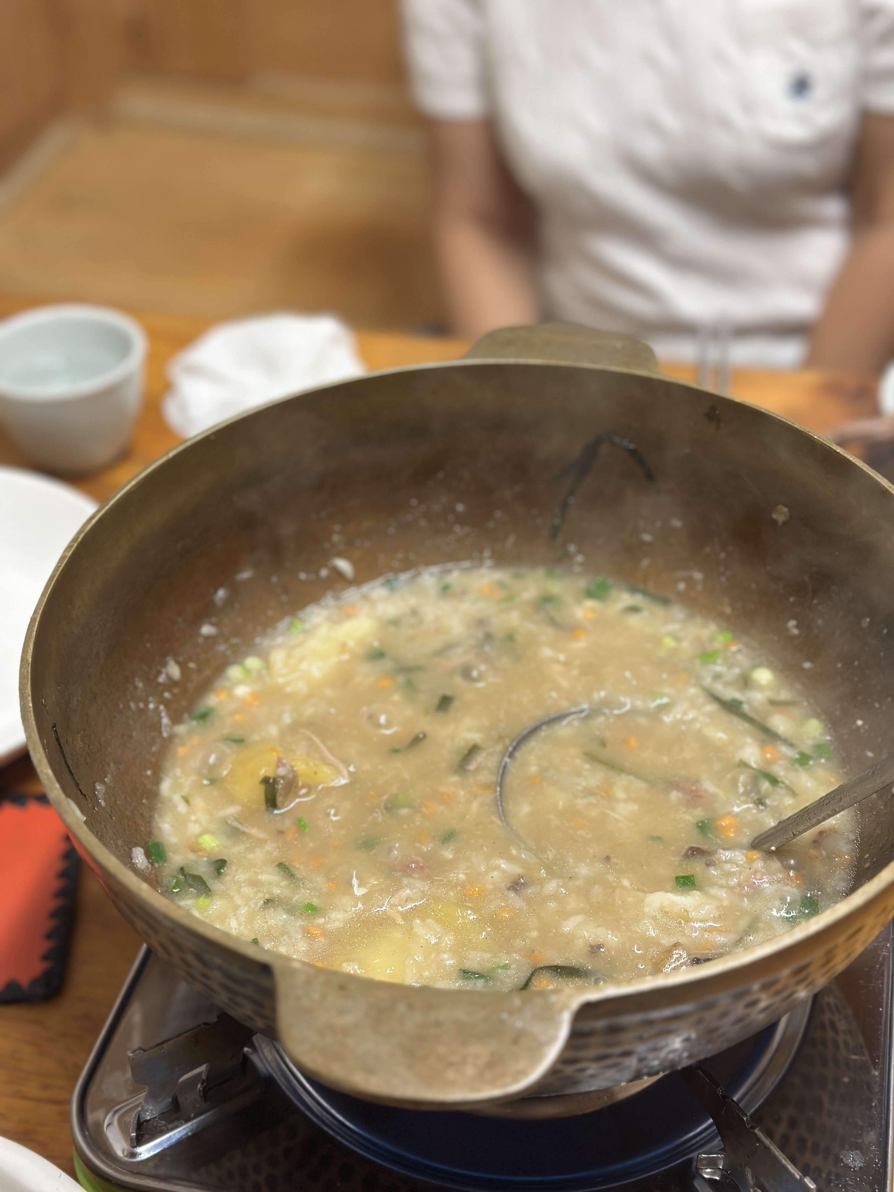 그리고 메뉴 나오면서 함께 나온 죽을 직접 해 먹어 봅니다. 국물을 좀 빼고, 살살살 익히다보니 딱 먹기 좋은 죽이 완성됐습니다. +_+ 맛이 좋습니다.