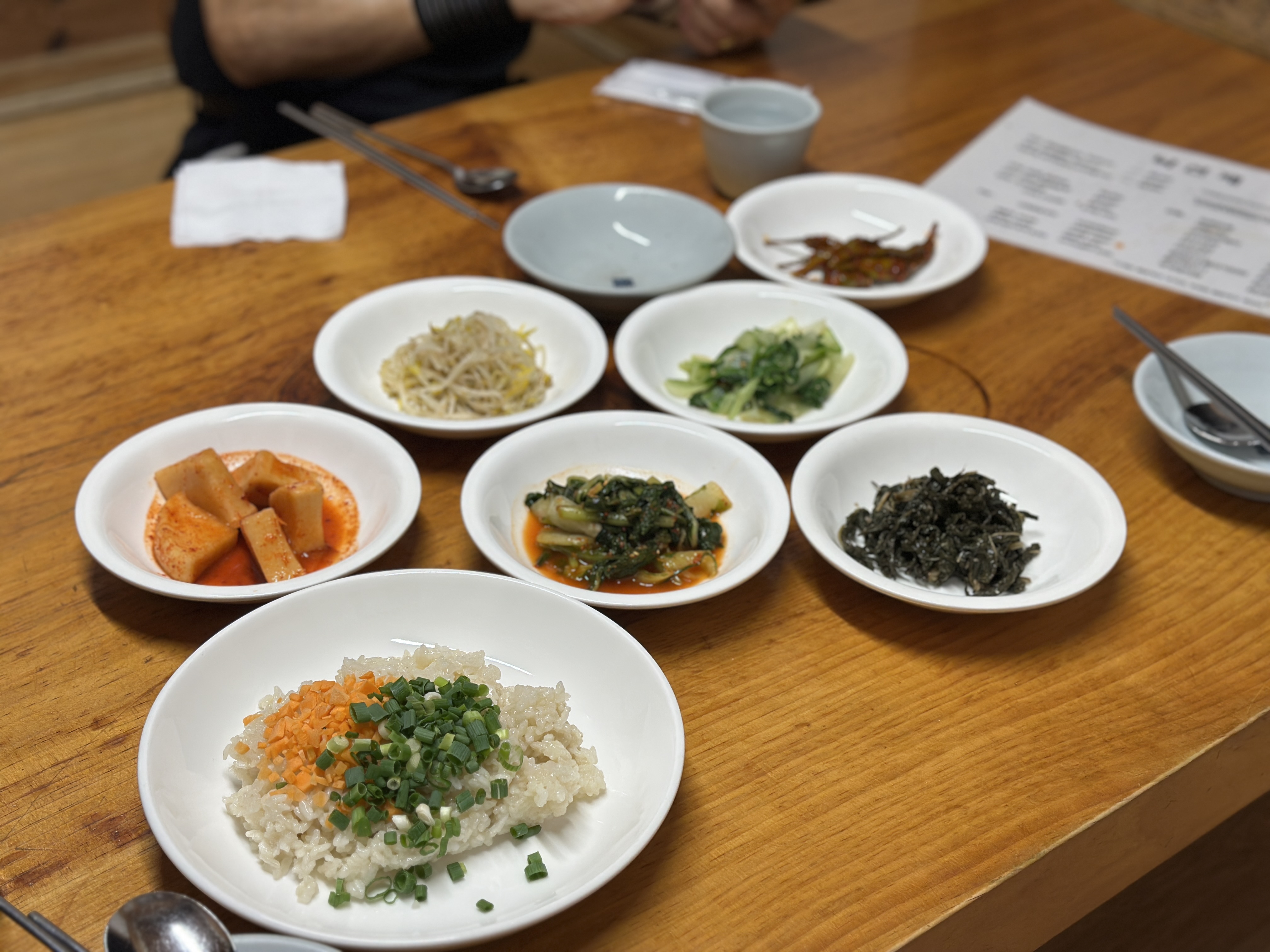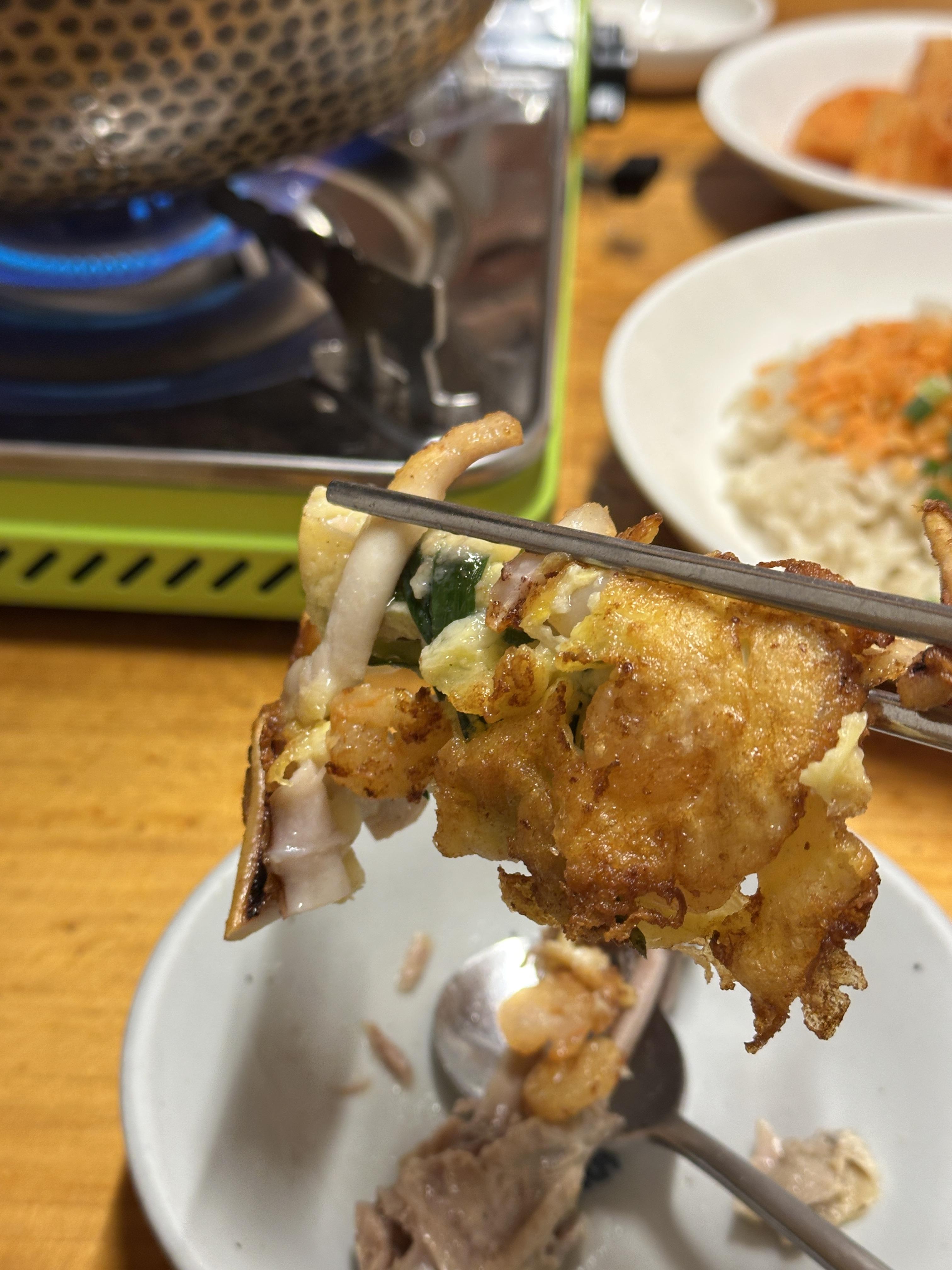 밑반찬은 특별할 것 없었지만, 해물파전이 기대했던 것보다 더 크고 푸짐했습니다. 오징어도 많이 들어가 있더라구요 ㅋㅋㅋ 잘 익혀진 파전은 젓가락을 부르고...