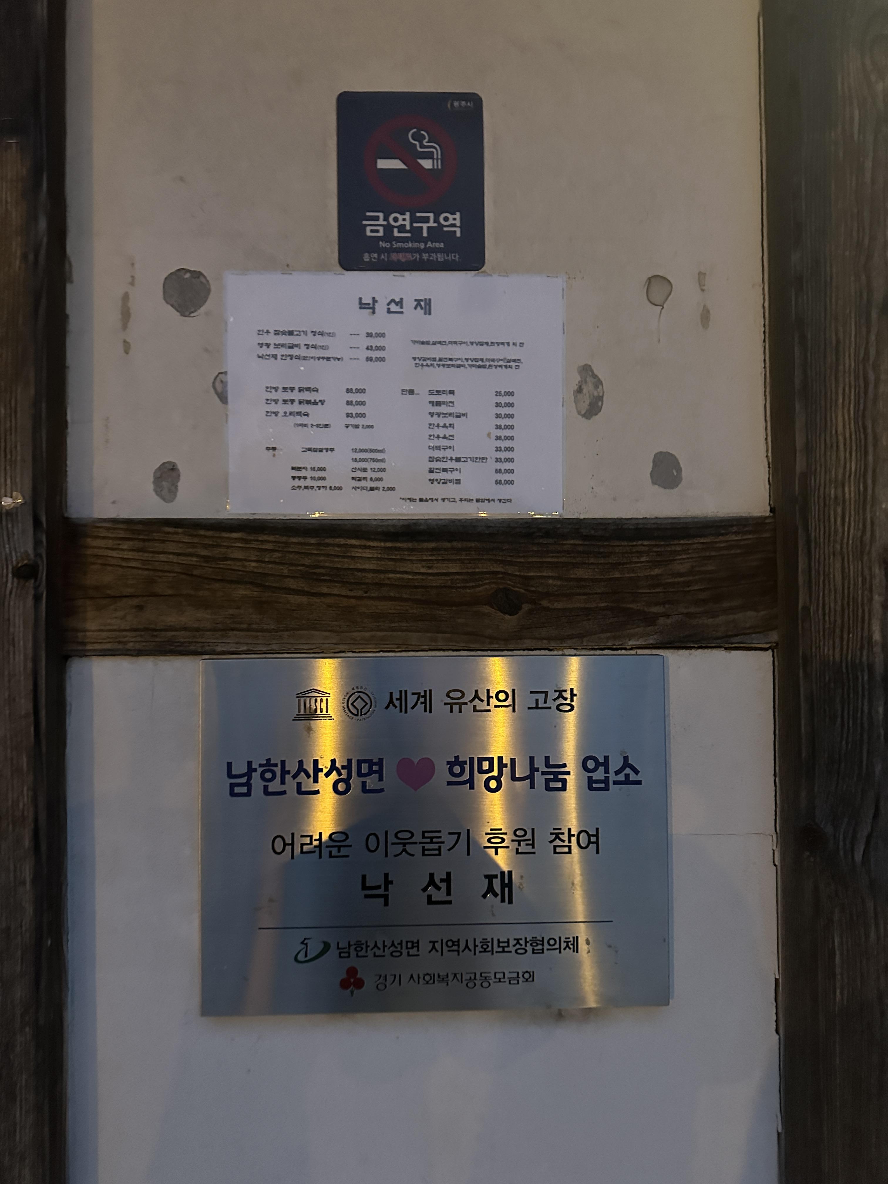 사실, 여러 조건이 다 마음에 들었던 것은 아니었습니다. 남한산성 낙선재는 넓은 공간에서 맛있는 오리 한마리를 즐기기에 꽤 색다르고 좋은 경험이었지만, 아쉬운 점도 있었습니다. 아무래도 자연 속에 만들어둔 장소에 가깝다 보니(산 바로 옆에 있는 실도 있습니다.) 벌레가 많고, 냄새가 조금 납니다. 오래된 건물이라 그런 것 같은데, 개선 한다면 더 좋을 것 같습니다.