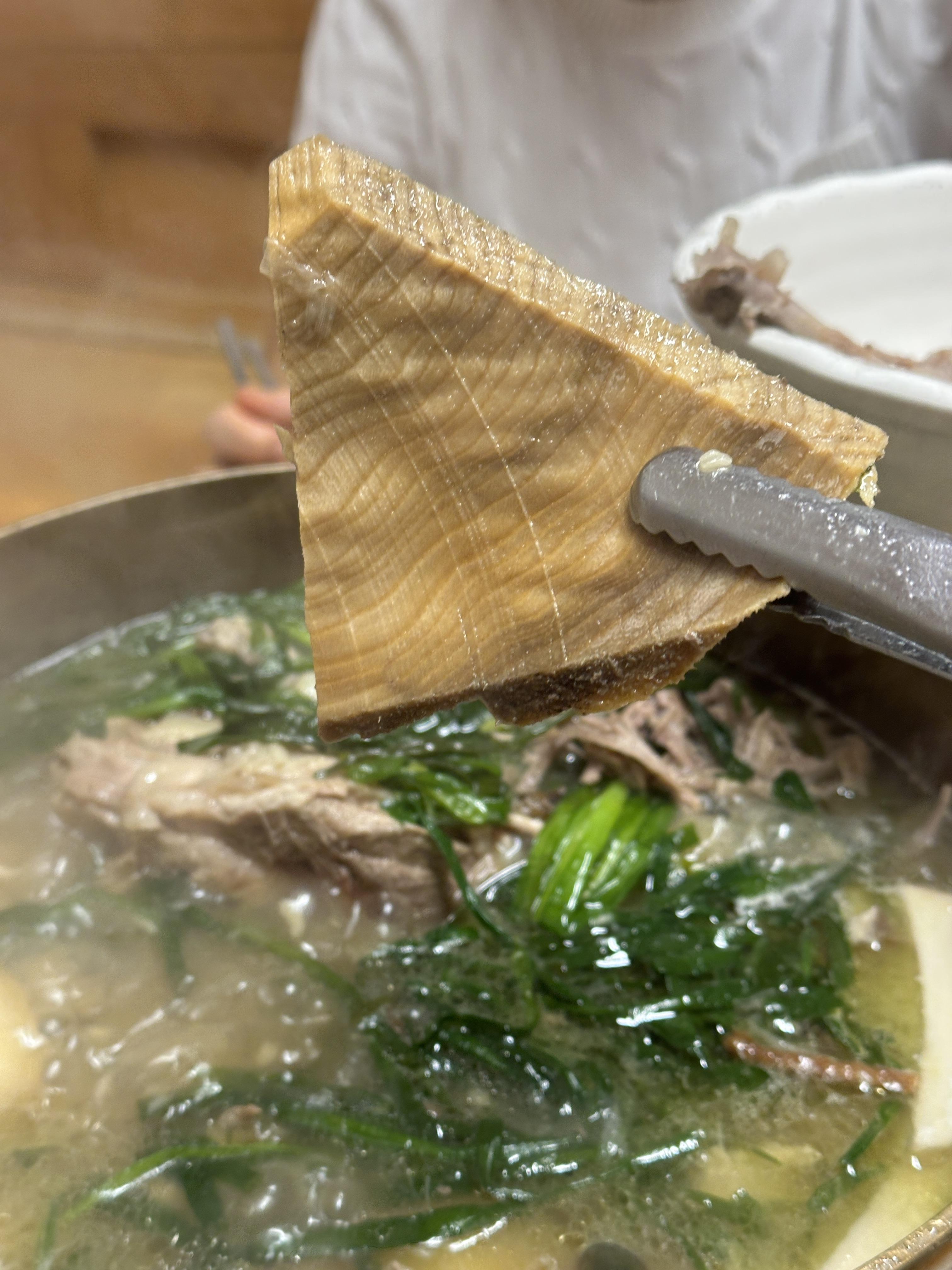 잘 익을 때쯤, 이래저래 쭉쭉 찢어서 부위별로 발골작업을 시작합니다. ㅋㅋㅋ특이한 것은 육수 안에 저렇게 나무?가 들어있다는 것이었습니다. 하나가 아니라 여러개가 들어있던데, 육수 내는데 역할을 하나봐요 ㅎㅎㅎ 신기...