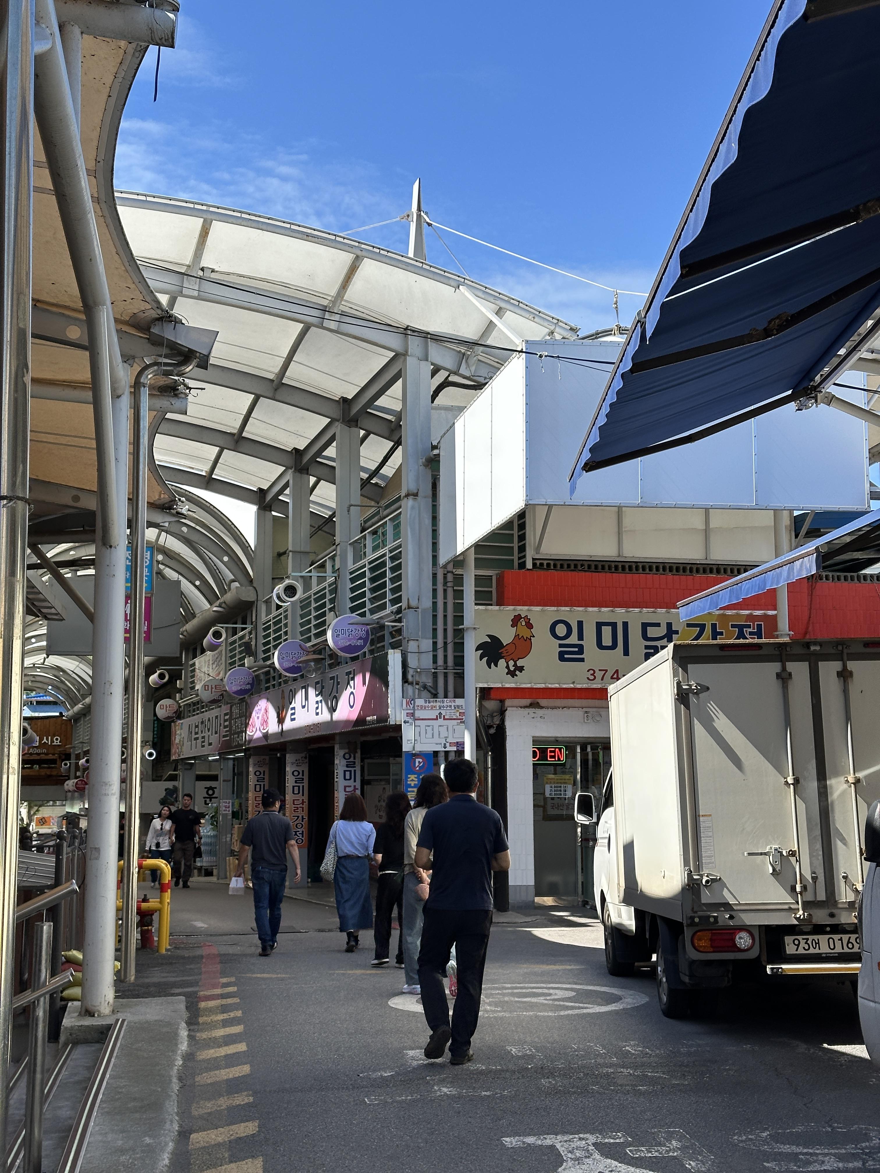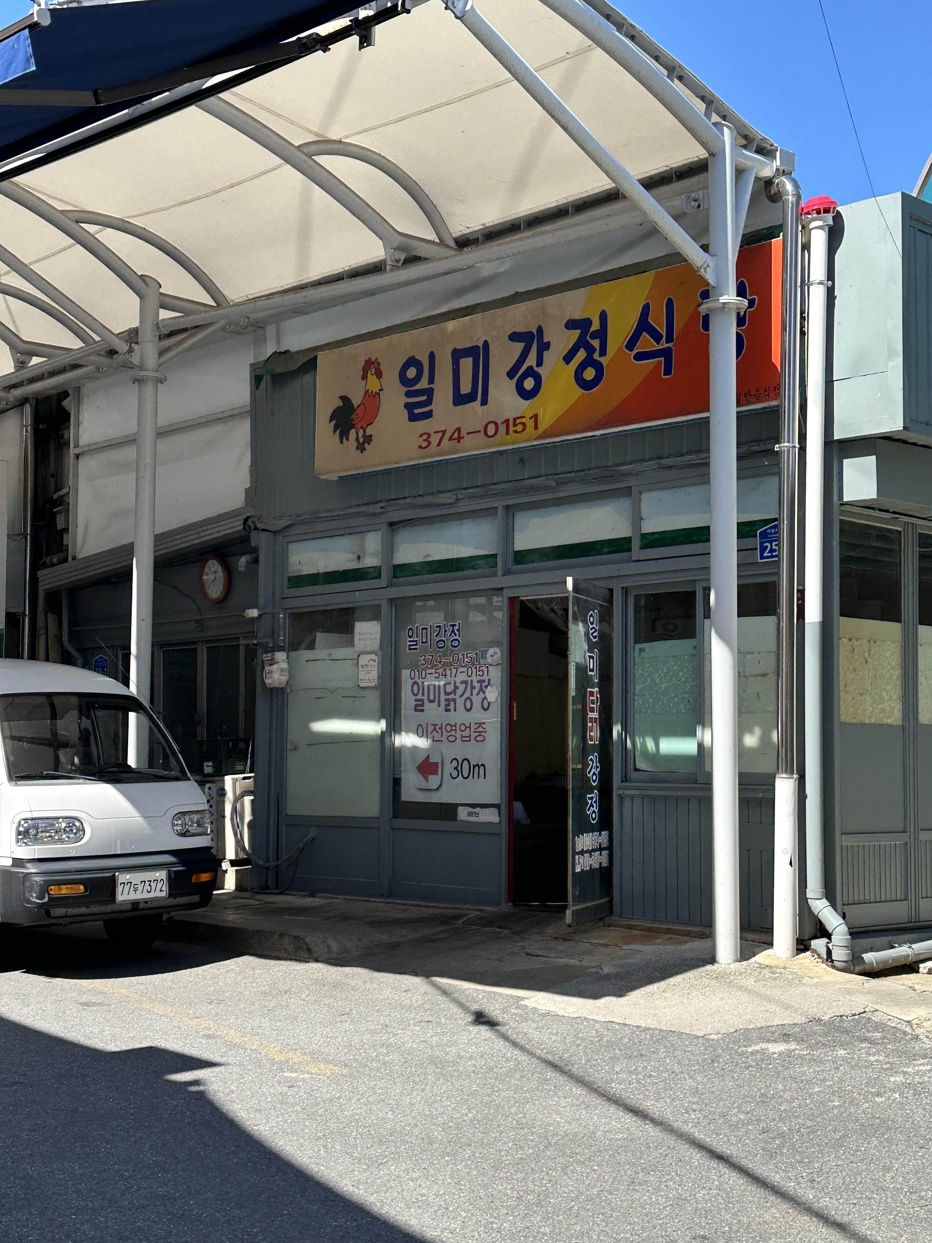 외관입니다. 특별한 느낌은 없지만, 나름 오랜 시간 이 시장을 지켜왔다는 건 느껴지네요. ㅋㅋㅋㅋ 그리고 옆에는 일미강정식당이라고 있었는데, 여기서 드실 수도 있나봐요. (확인은 안해봤어요. 급하게 사서 가느라.ㅋㅋㅋ)