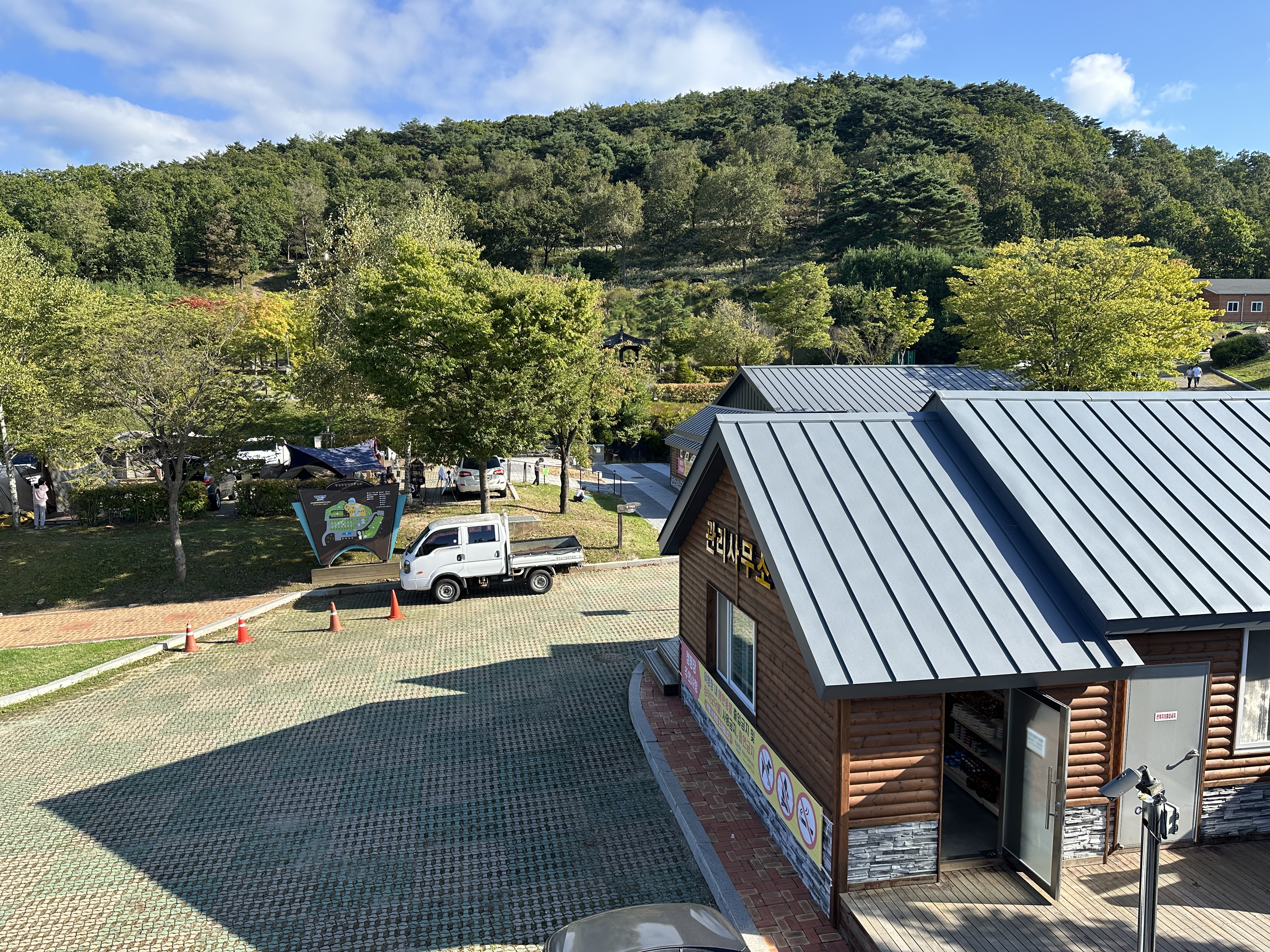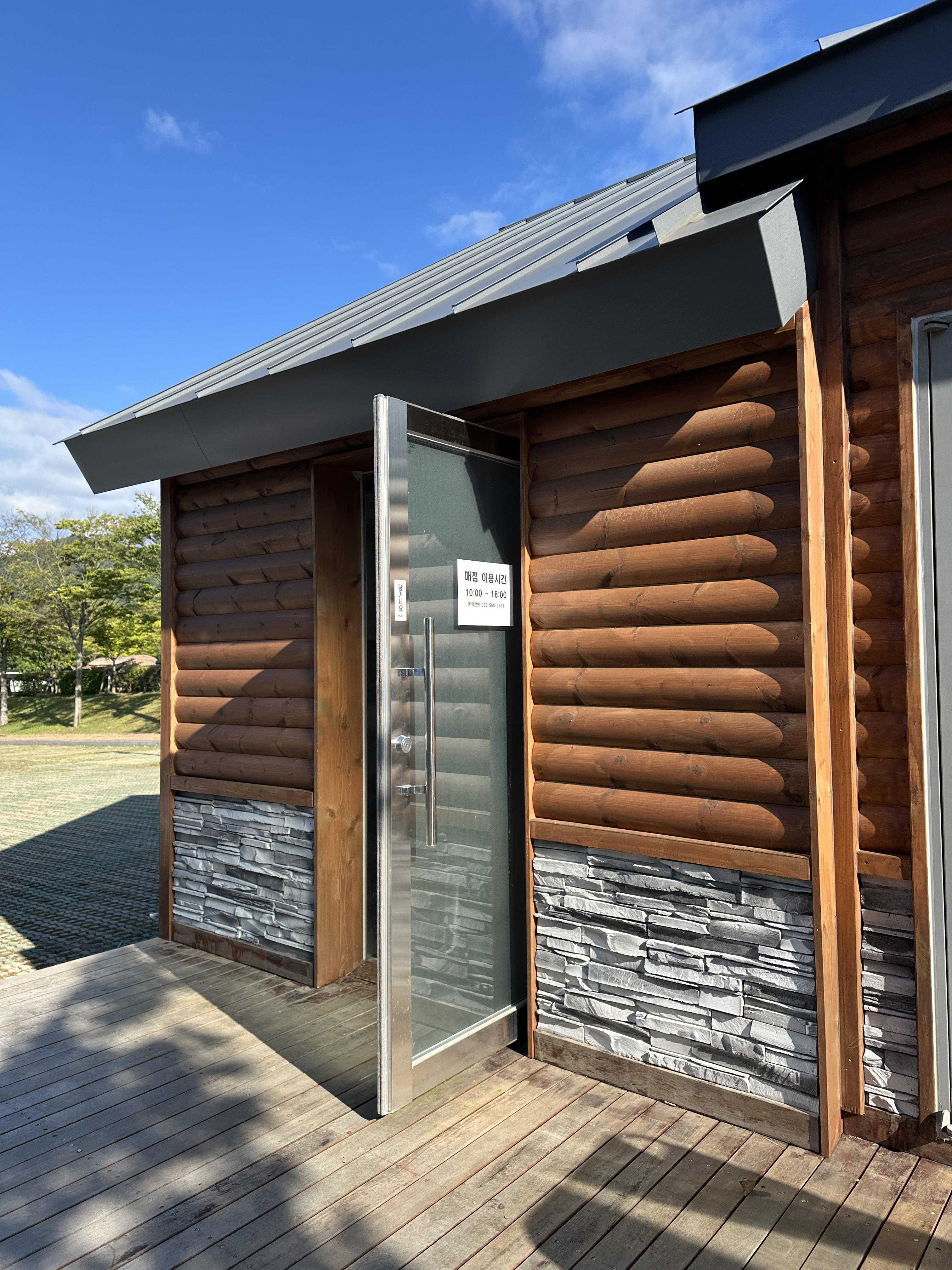 동강자연휴양림에 도착하면, 입구에 주차장이 있고, 관리사무소 겸 매점 건물이 있습니다. 들어가셔서 체크인을 하시면 됩니다. 간단한 신원확인 후 입장합니다.