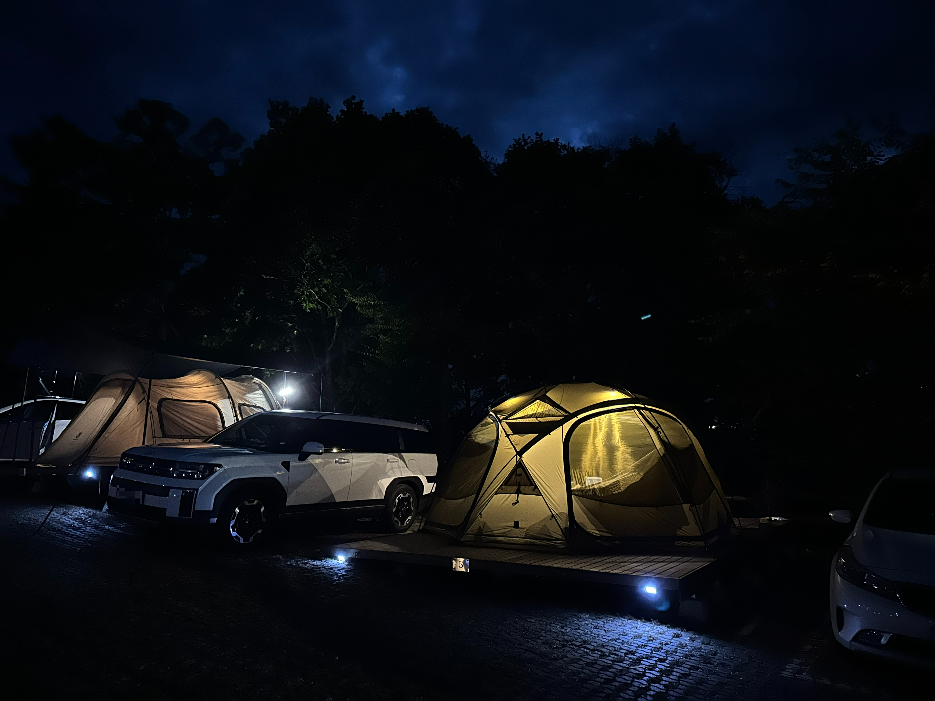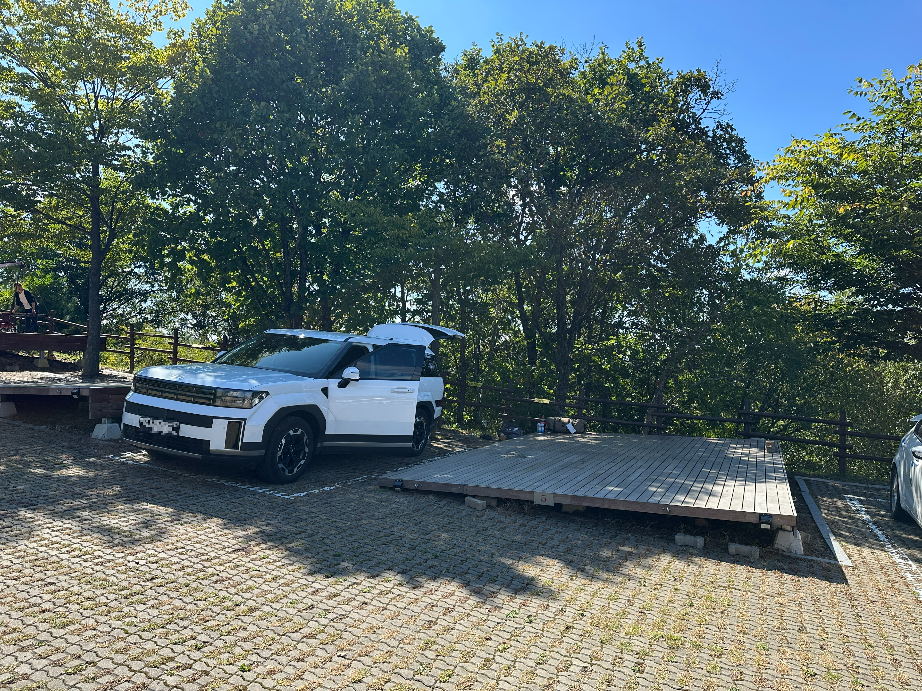 예약한 자리는 5번입니다. 명당으로 유명한 1~3번 자리 예약은 실패했고, 나름 빠른 번호로 하면 좋을까 해서 빠르게 예약했었죠. 내리막에 자리하고 있지만, 수평은 잘 맞아서 이용에 불편함은 없습니다. 사이트 바로 옆 주차장도 장점입니다.