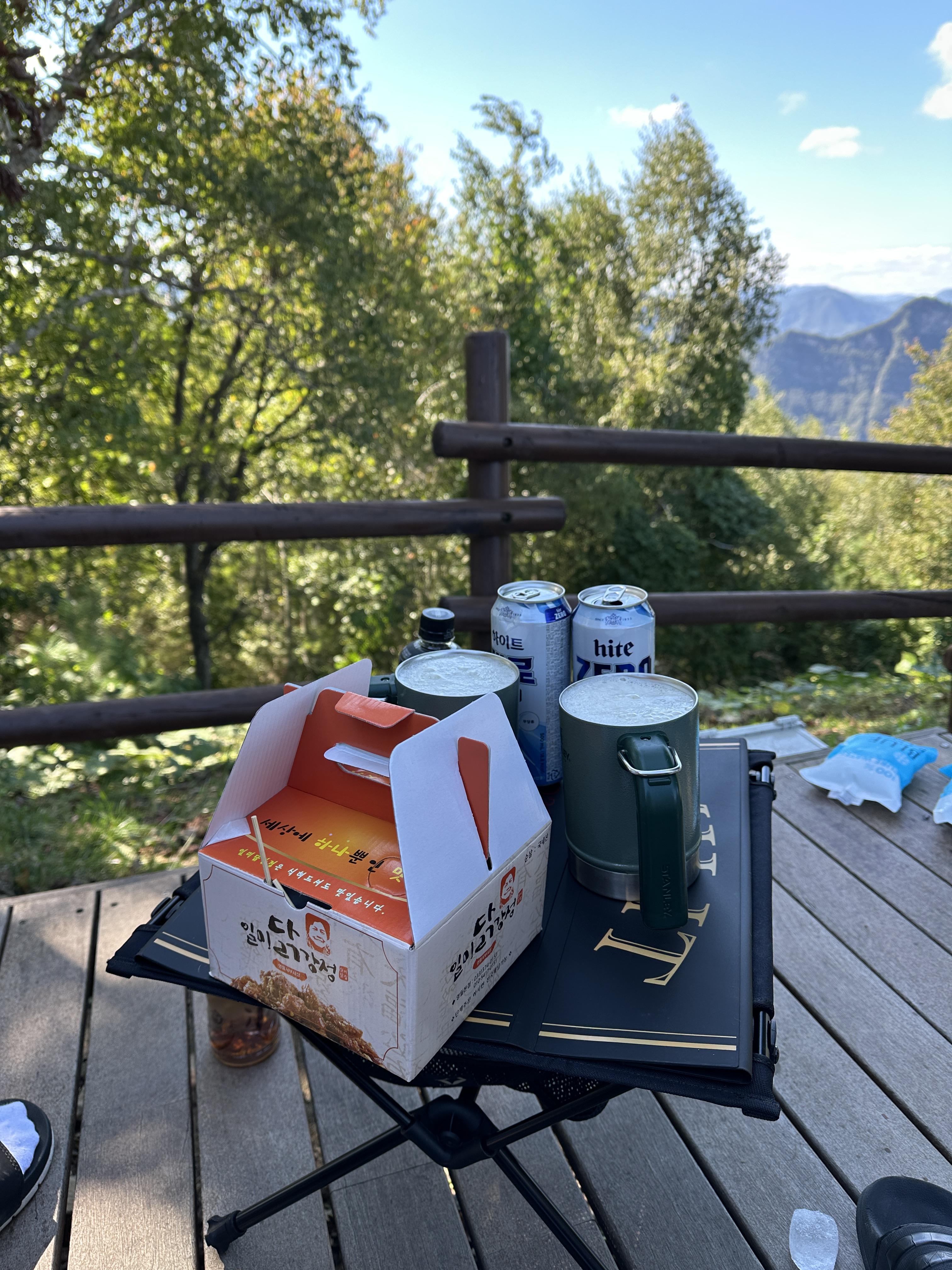 5번 사이트 텐트 친 모습입니다. 그늘이 딱 지는게 완전 좋죠? ㅋㅋㅋㅋ 아까 오는 길에 샀던 닭강정도 까 먹습니다. ㅋㅋㅋ 편안...