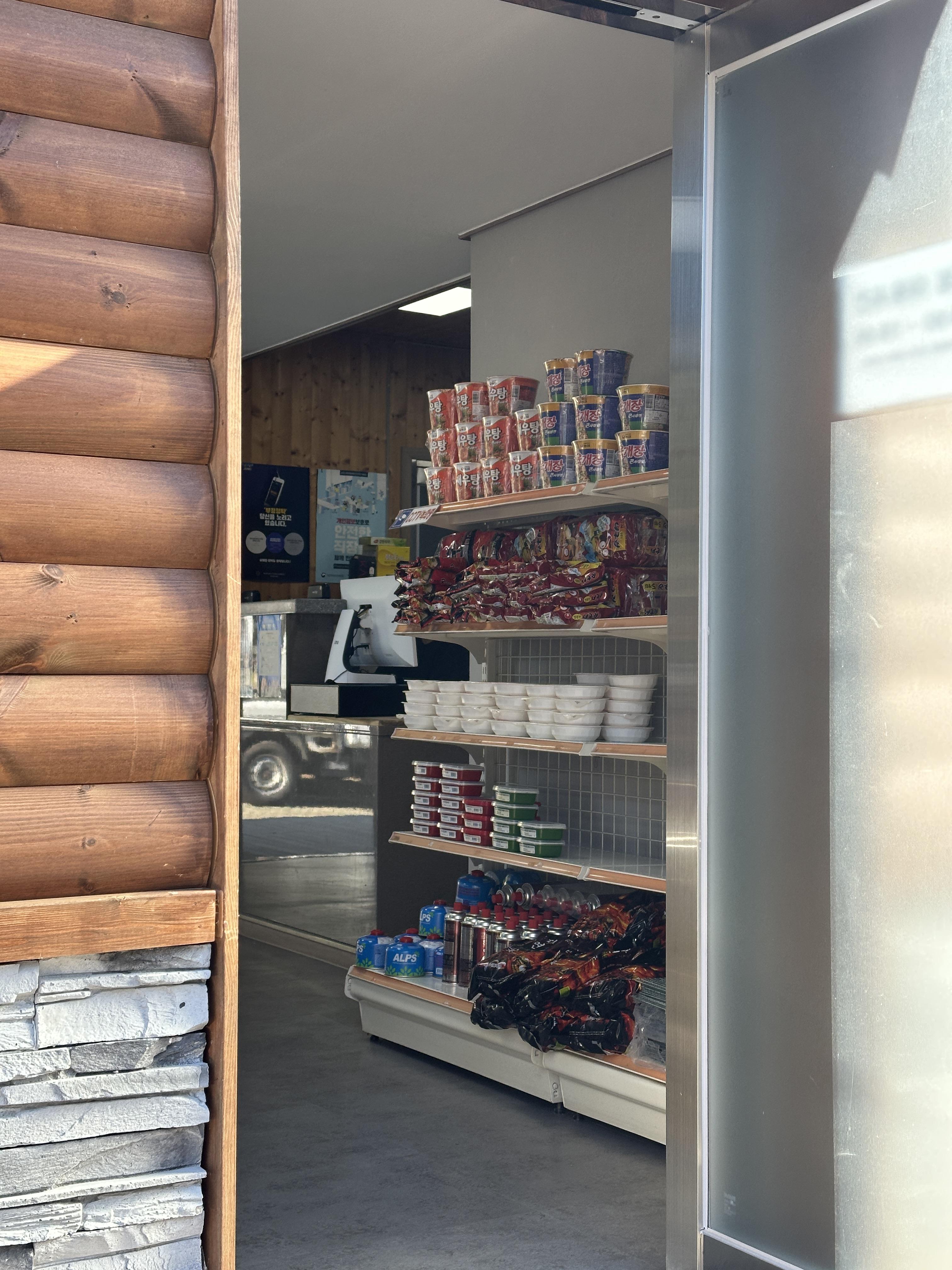 매점은 딱 있을 것만 있어요. 간단한 용품이나 라면, 장류 등은 쉽게 조달이 가능해 보입니다. 다만 운영시간은 저녁되기 전이었어요. 참고하세요.