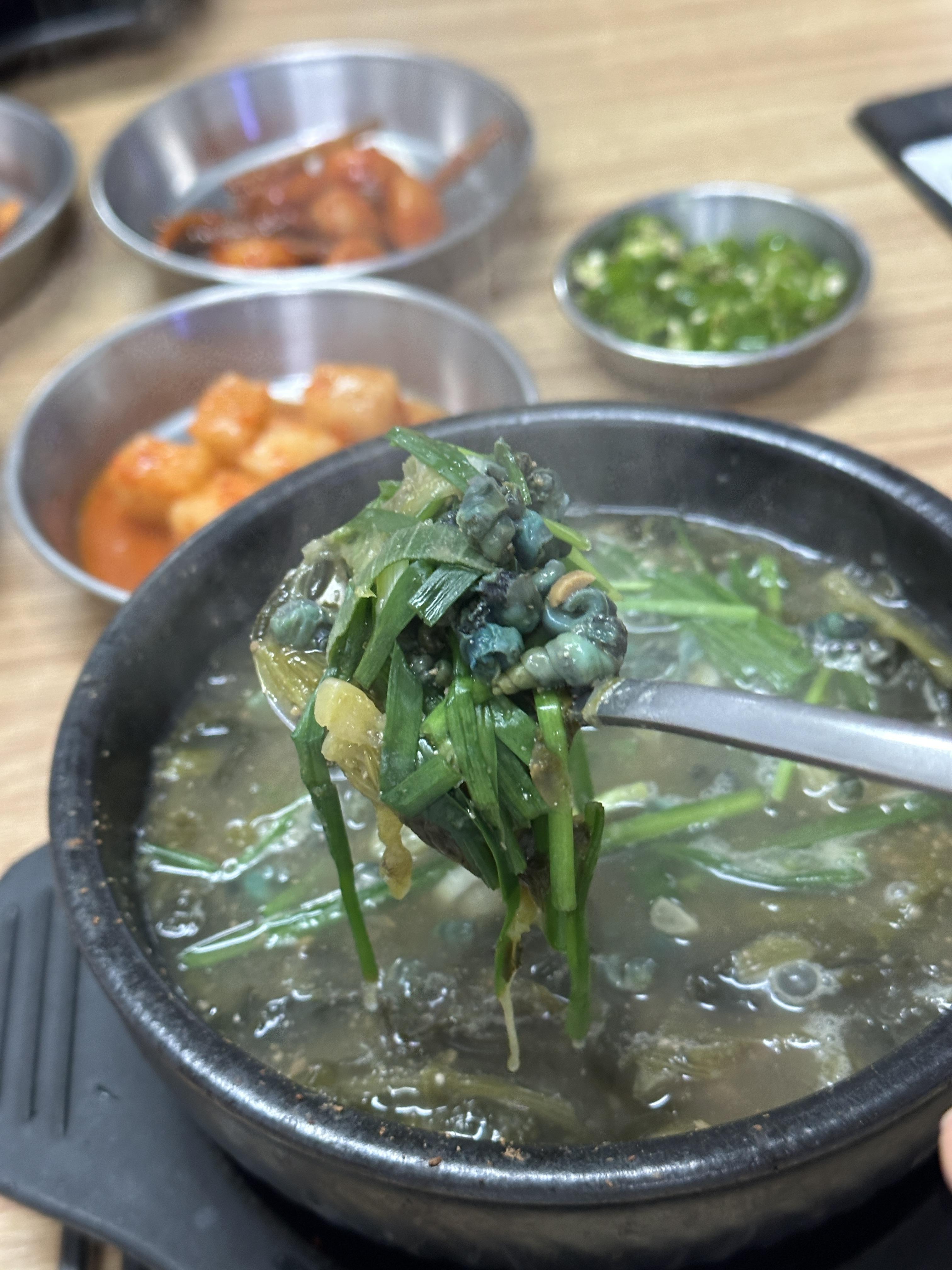 까먹는 다슬기 ... 하루 한정수량이라 인원 좀 더 있었으면 먹고싶었어요 ㅋㅋ 어릴땐 진짜 개울에서 주워와서 삶아먹고 했던 그런건데 ㅋㅋㅋㅋ 그... 그만해!!