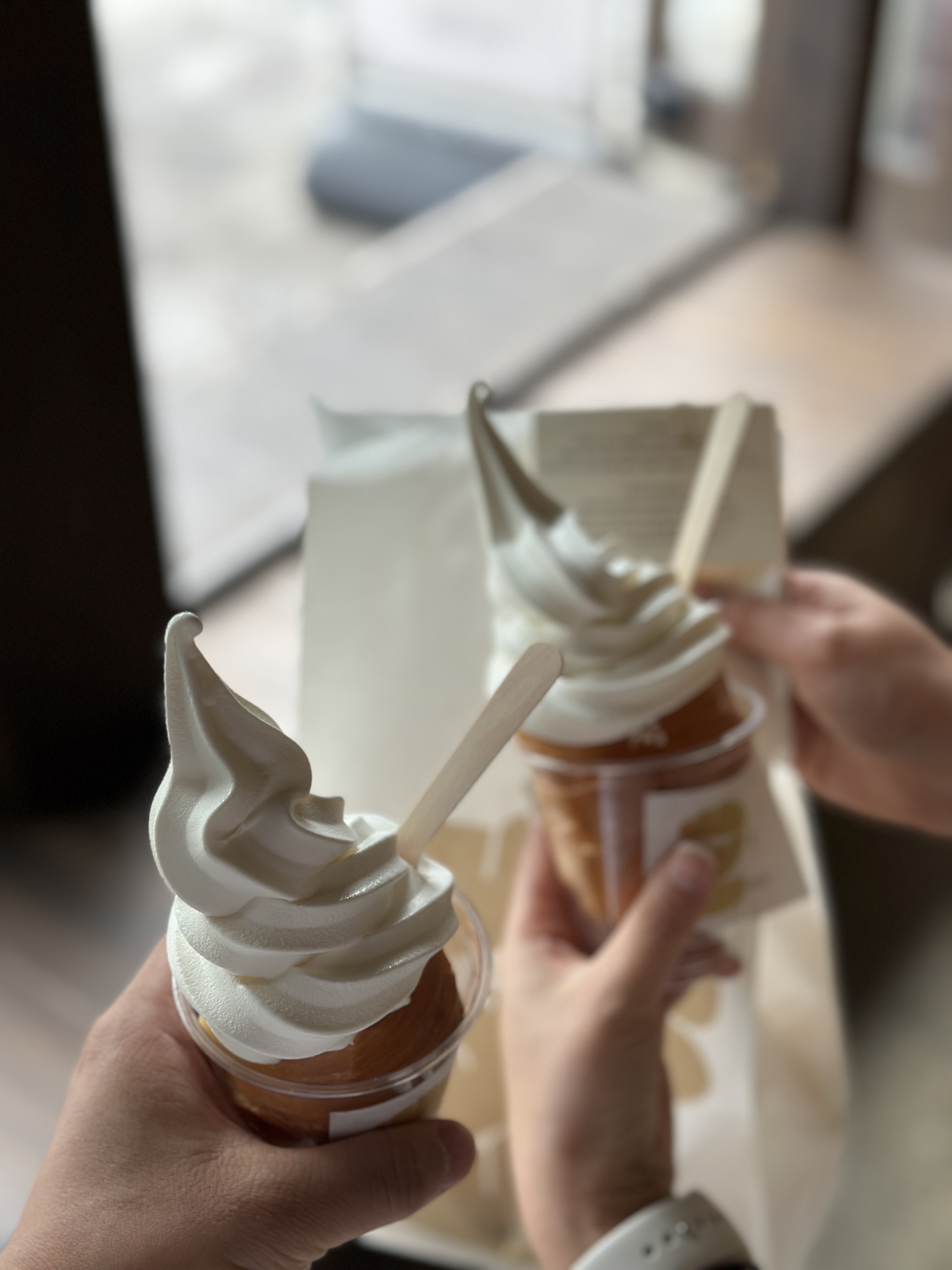 주문한 상하목장 아이스크림을 받아듭니다. 컵에 넣어주시는데, 사실 아이스크림 말고 아래 소금빵 먹기가 꽤 고역이었습니다. 아이스크림에 범벅이 되어서 먹기도 힘들고, 애매모호...ㅋㅋㅋ 추천까진 하고싶지 않네요 ㅋㅋ