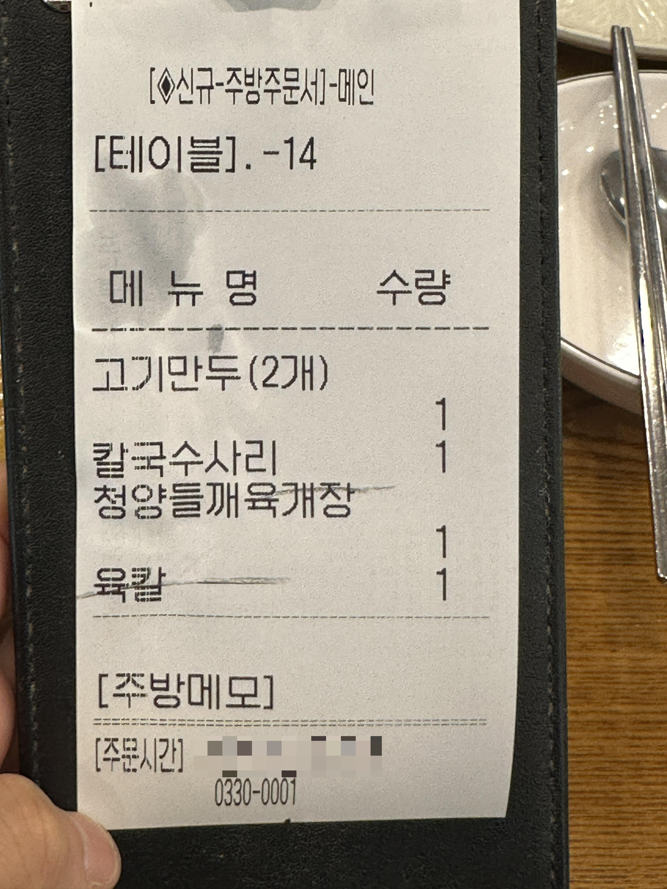 이번에는 고기만두 2개와 청양들깨육개장을 시켜봅니다. 신메뉴인데 관심이 생기더라구요. ㅋㅋㅋ 그리고 심지어 추가된 것이 들깨라면 반드시 먹어봐야겠죠? 전여친님은 육칼로 베이직하게 갑니다.